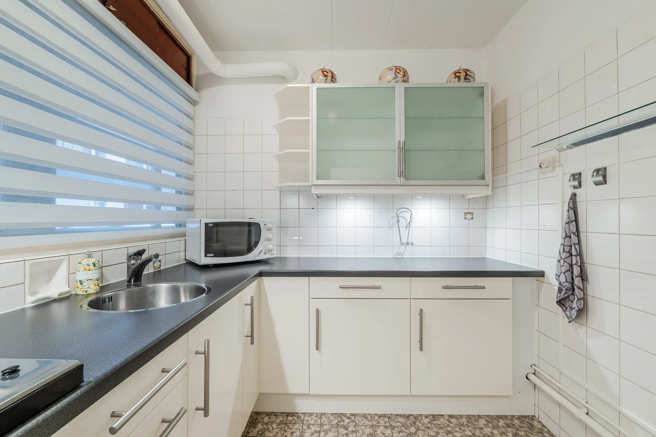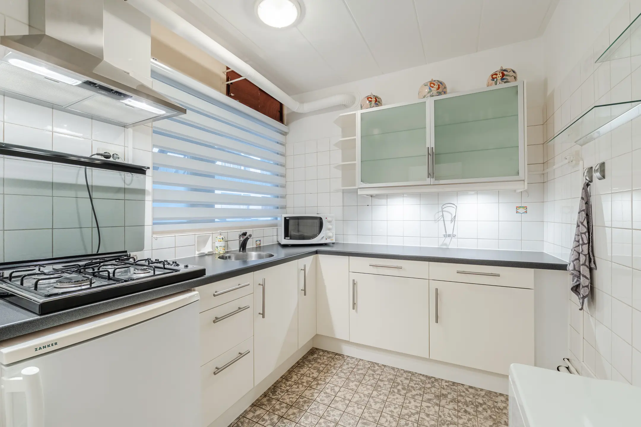- Gesloten keuken met inbouwapparatuur en voldoende bergruimte