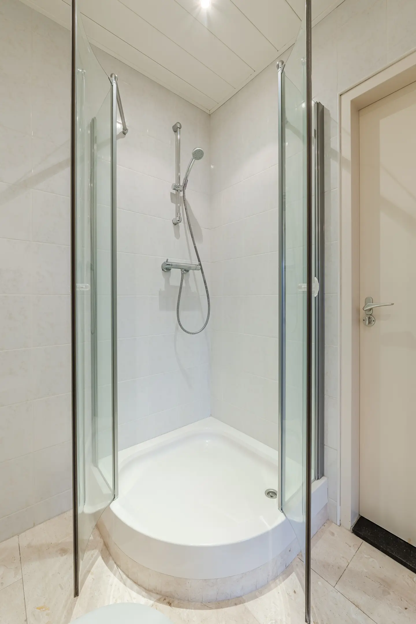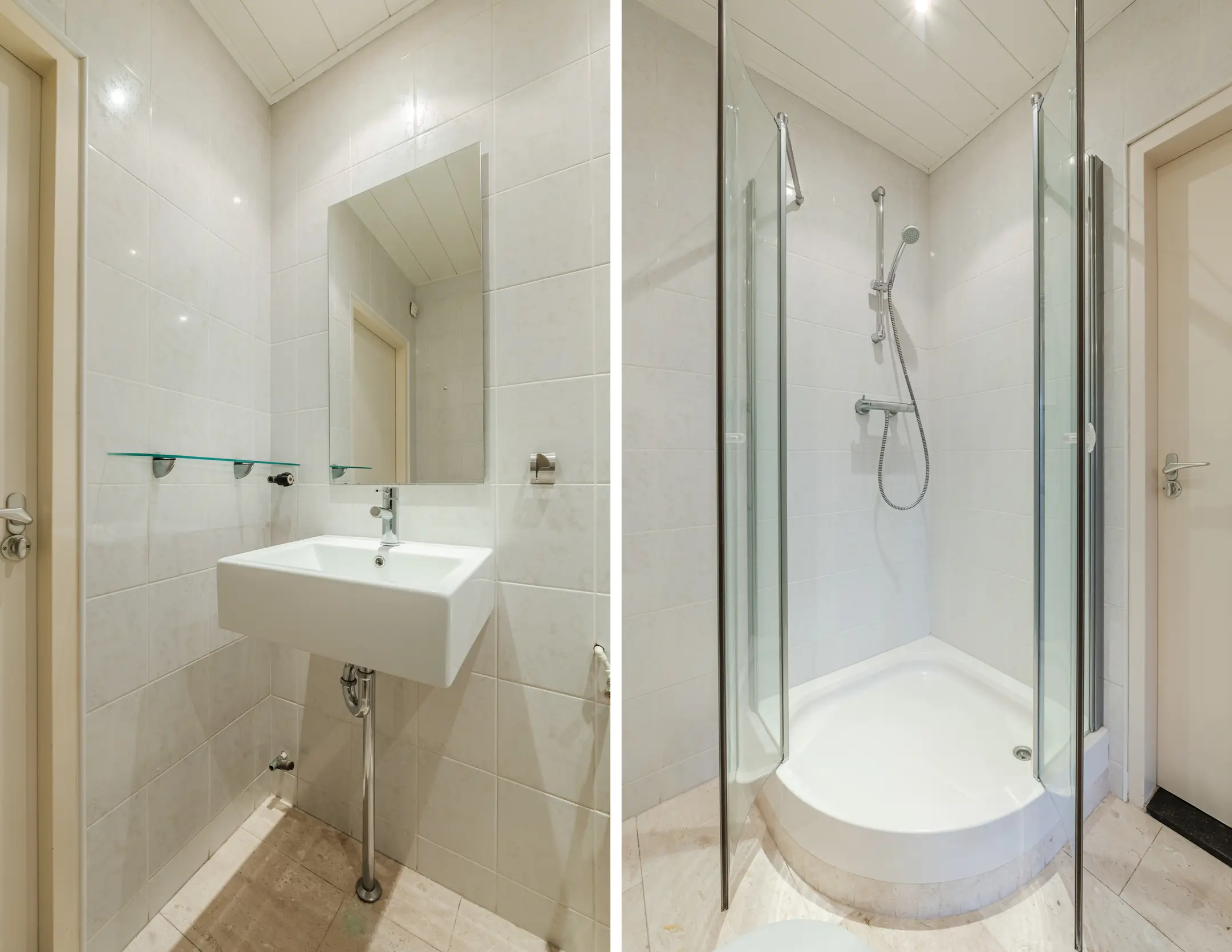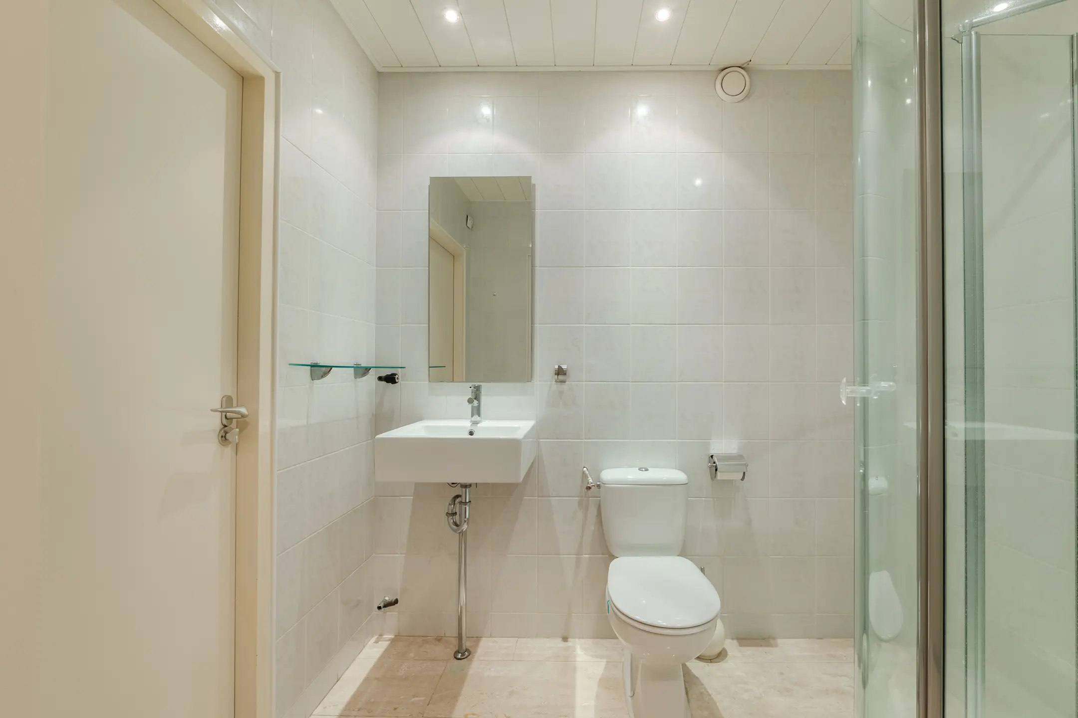 Badkamer met douchecabine, toilet en wastafel
