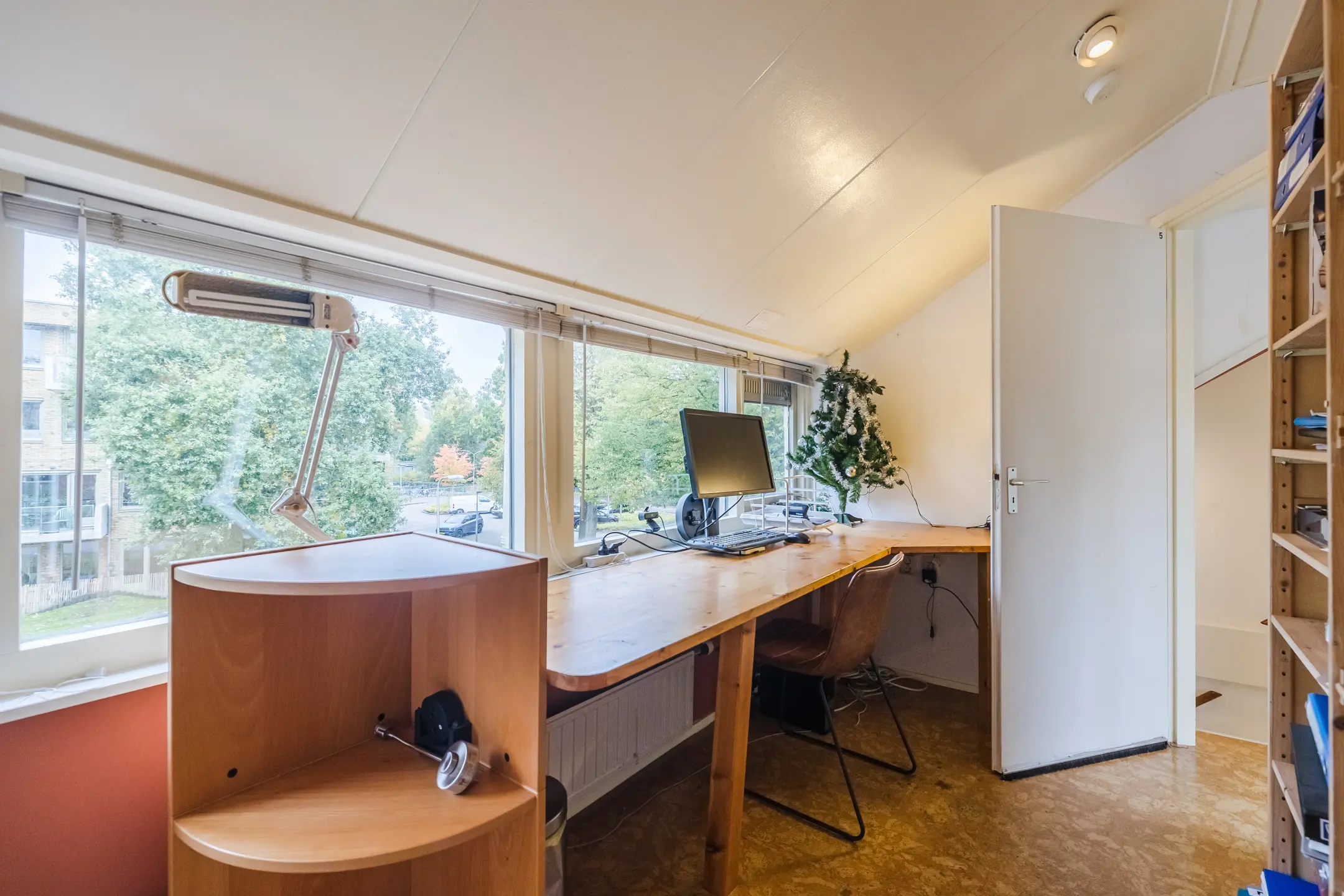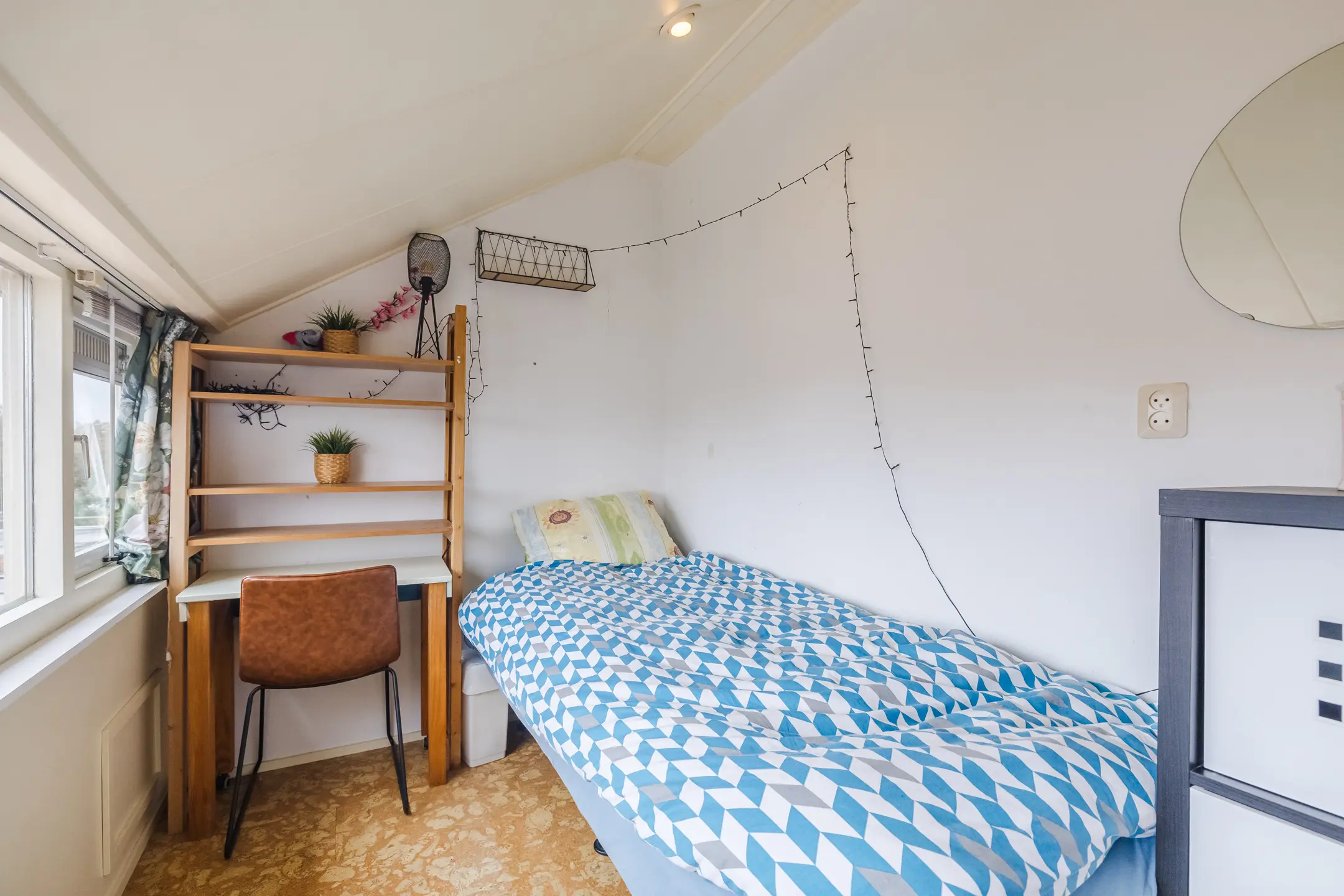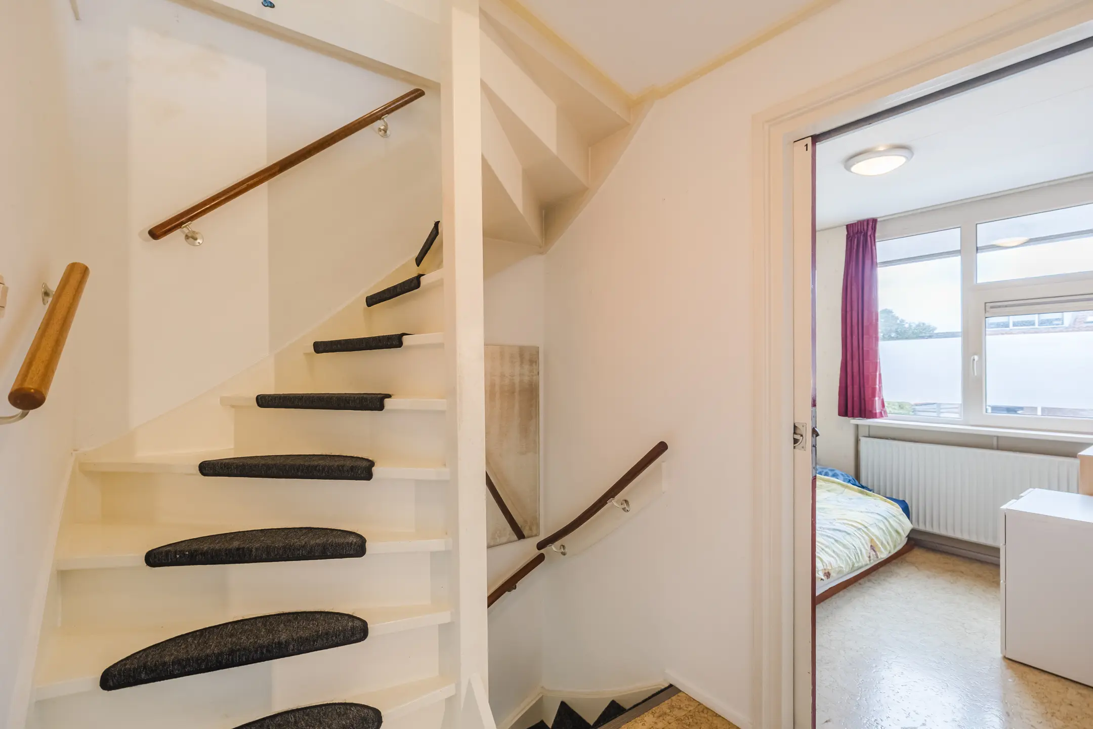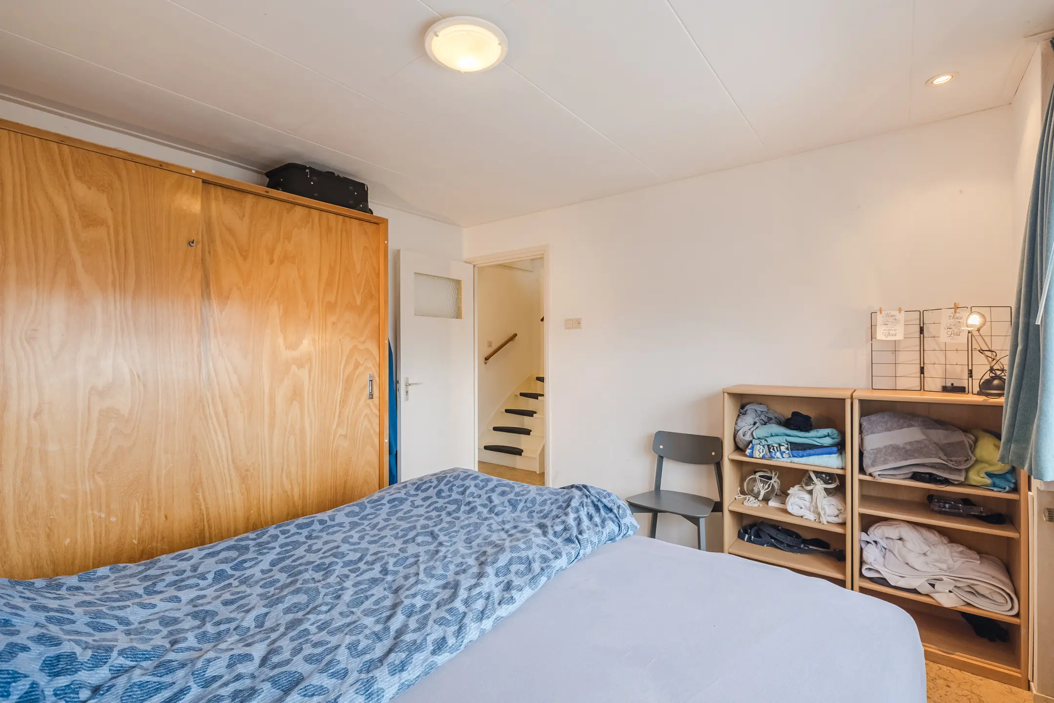 Via een vaste trap bereik je de overloop met cv-opstelling en extra bergruimte. Hier bevinden zich nog twee (slaap)kamers met dakopbouw.