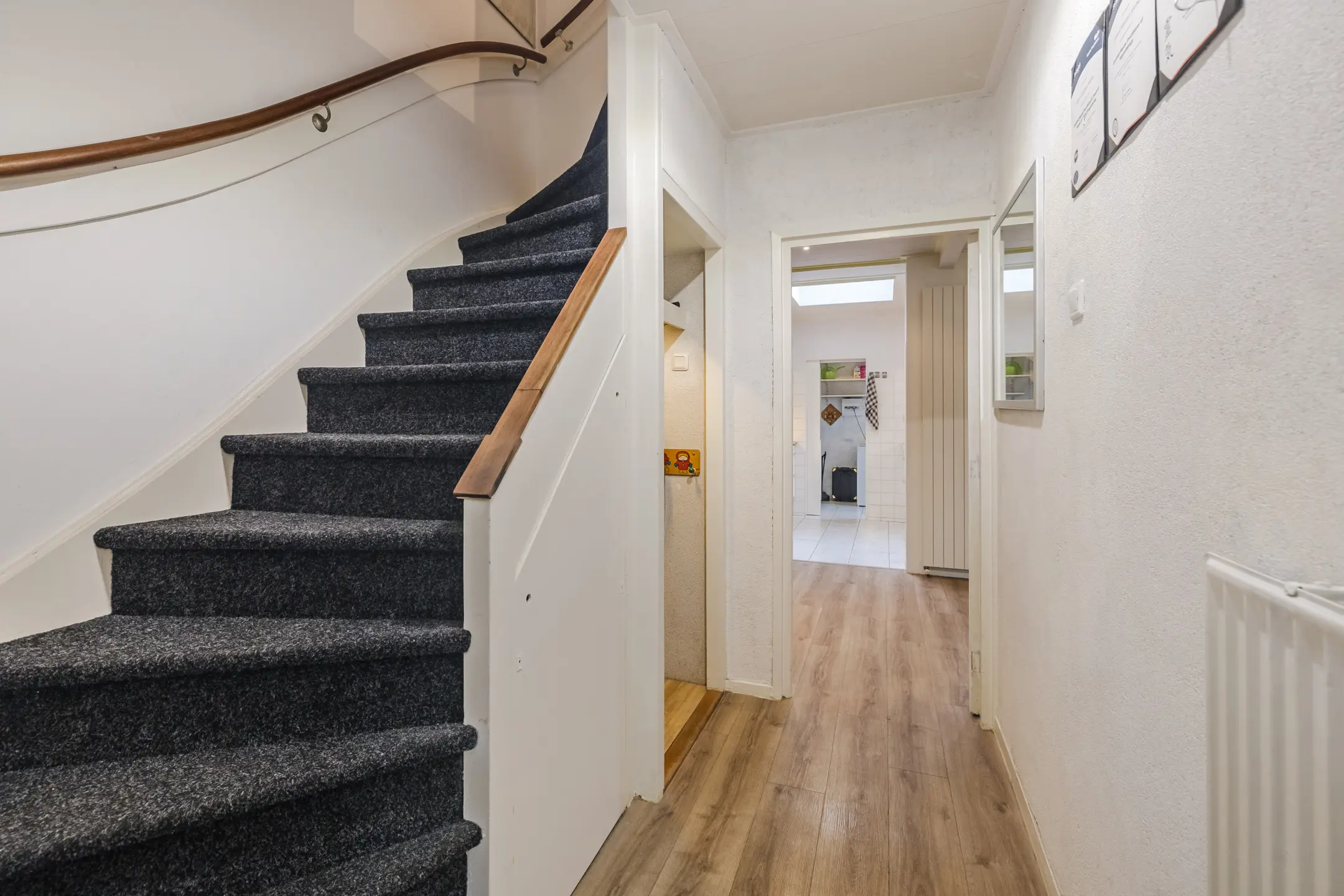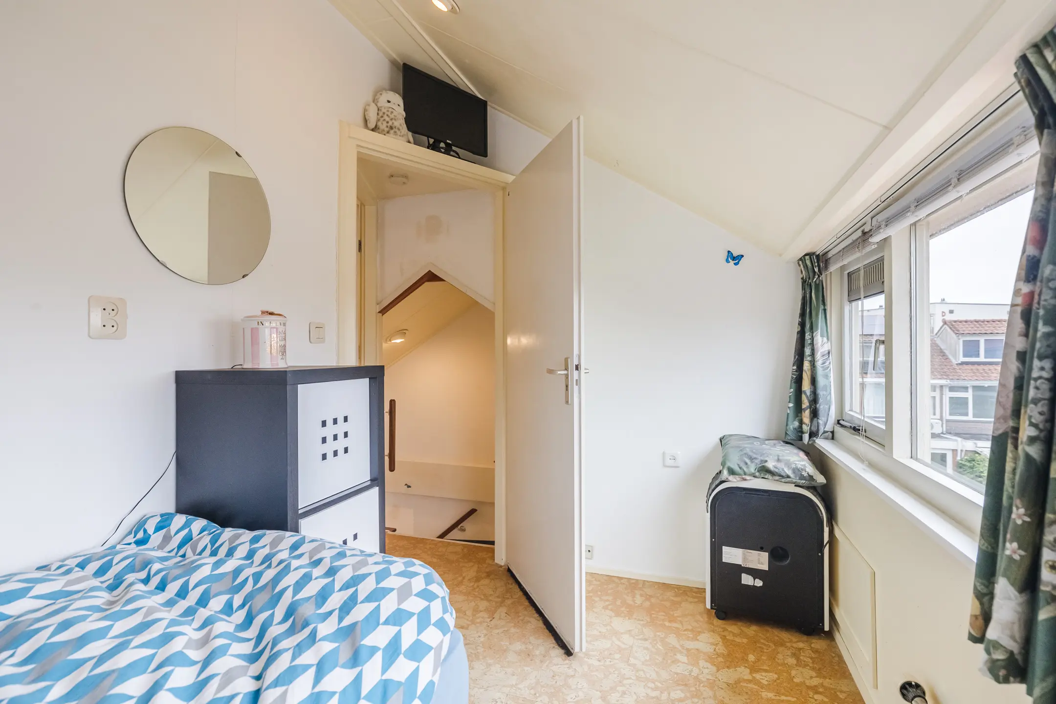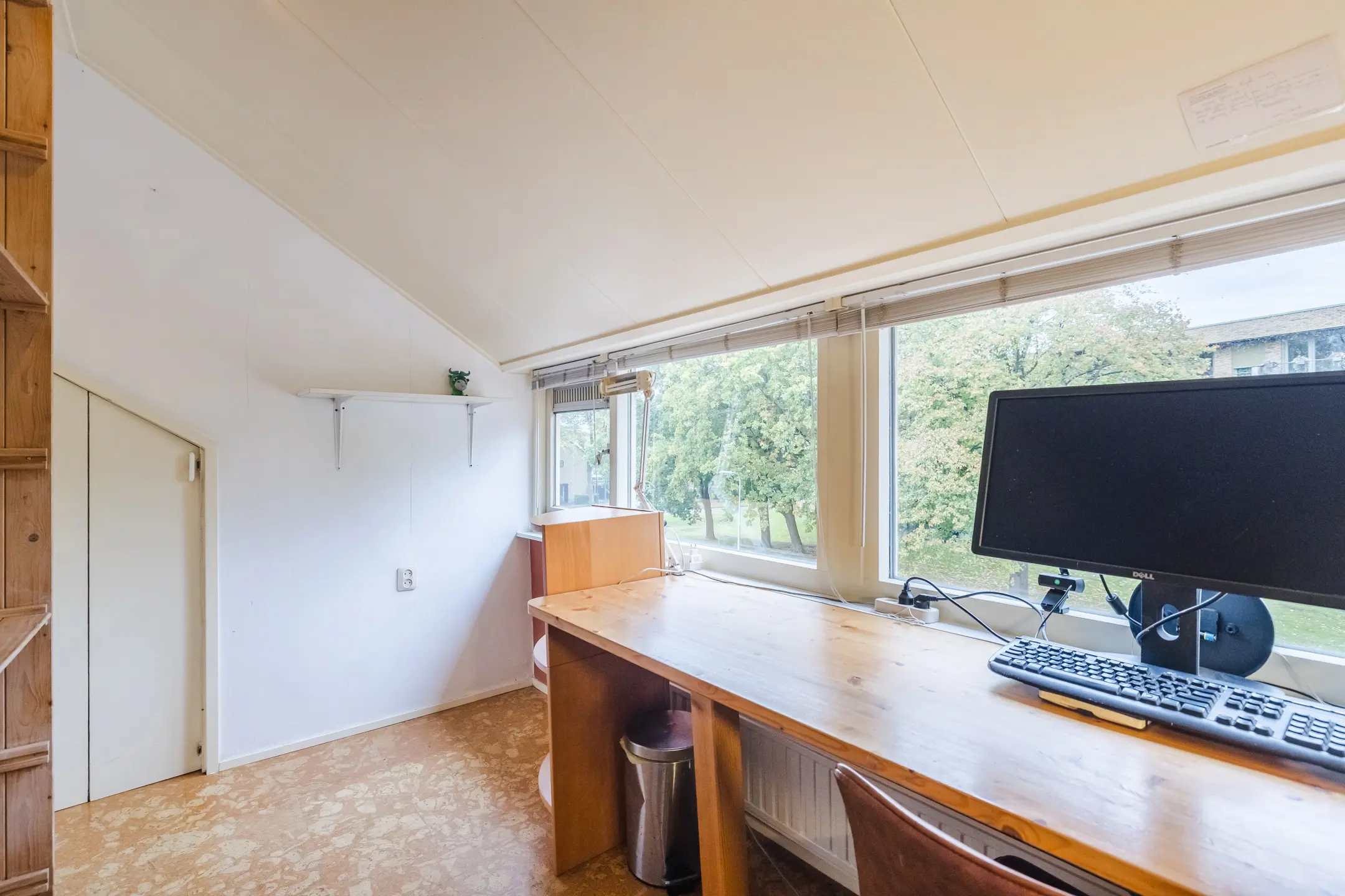 Via een vaste trap bereik je de overloop met cv-opstelling en extra bergruimte. Hier bevinden zich nog twee (slaap)kamers met dakopbouw.