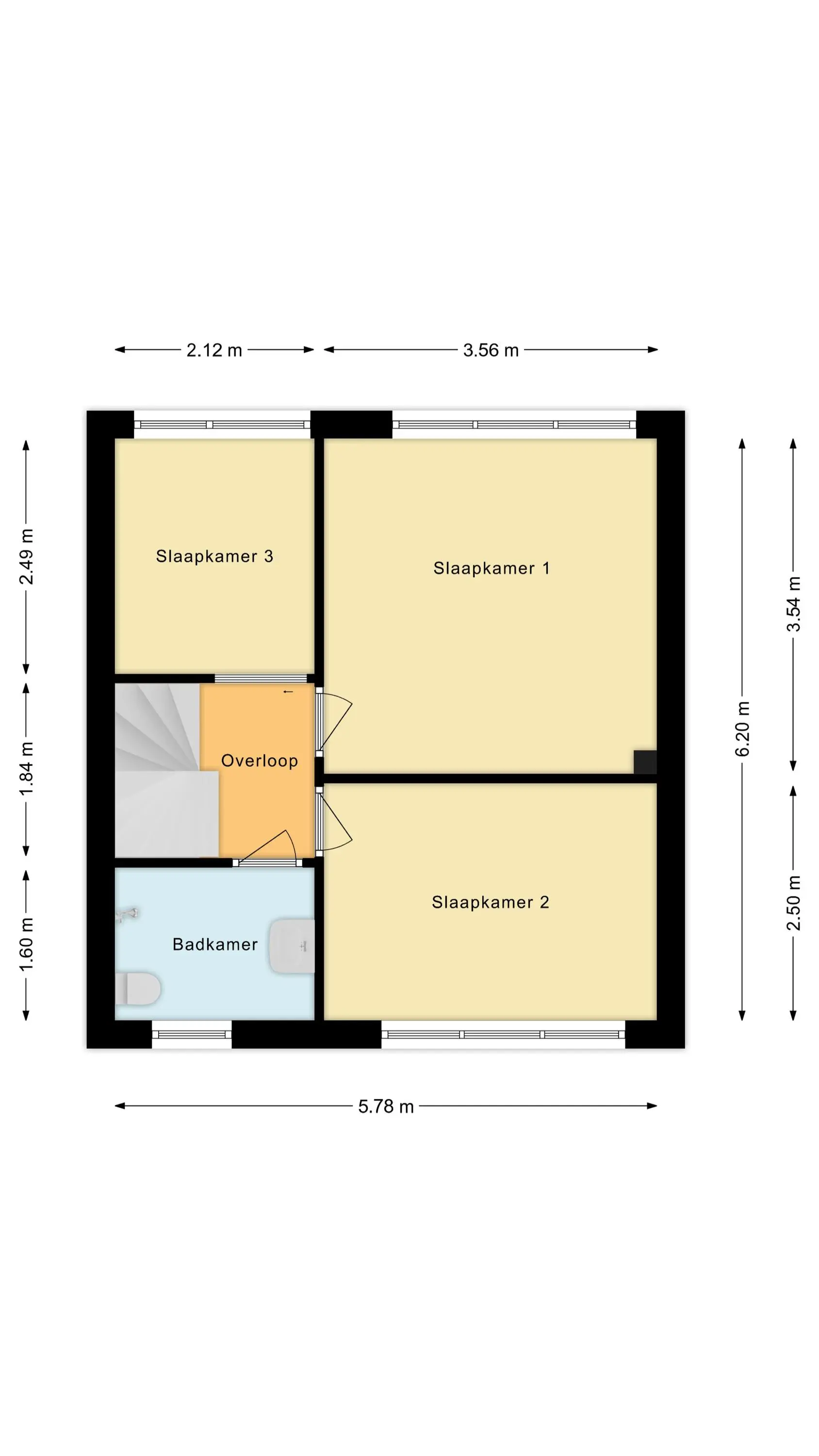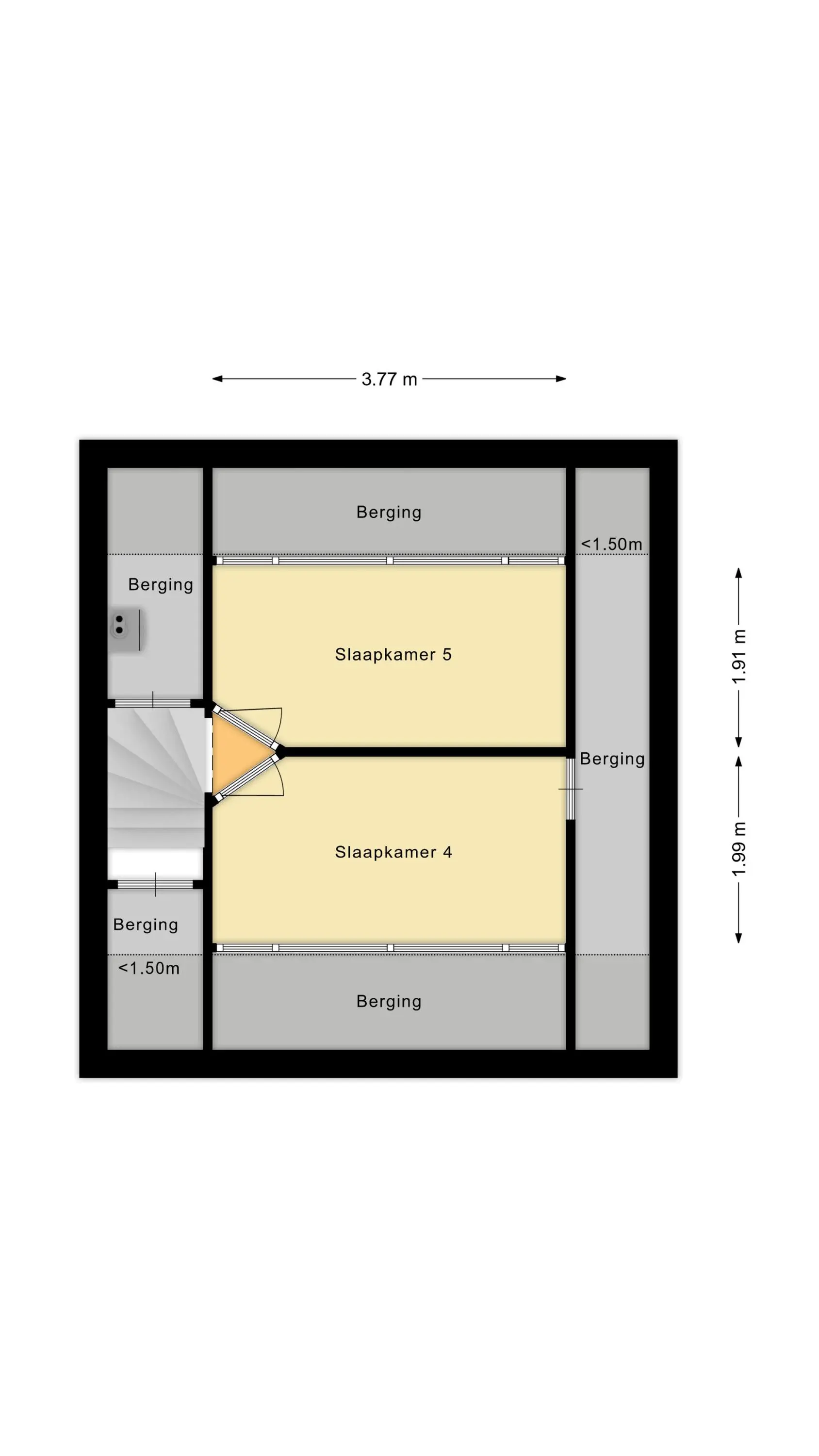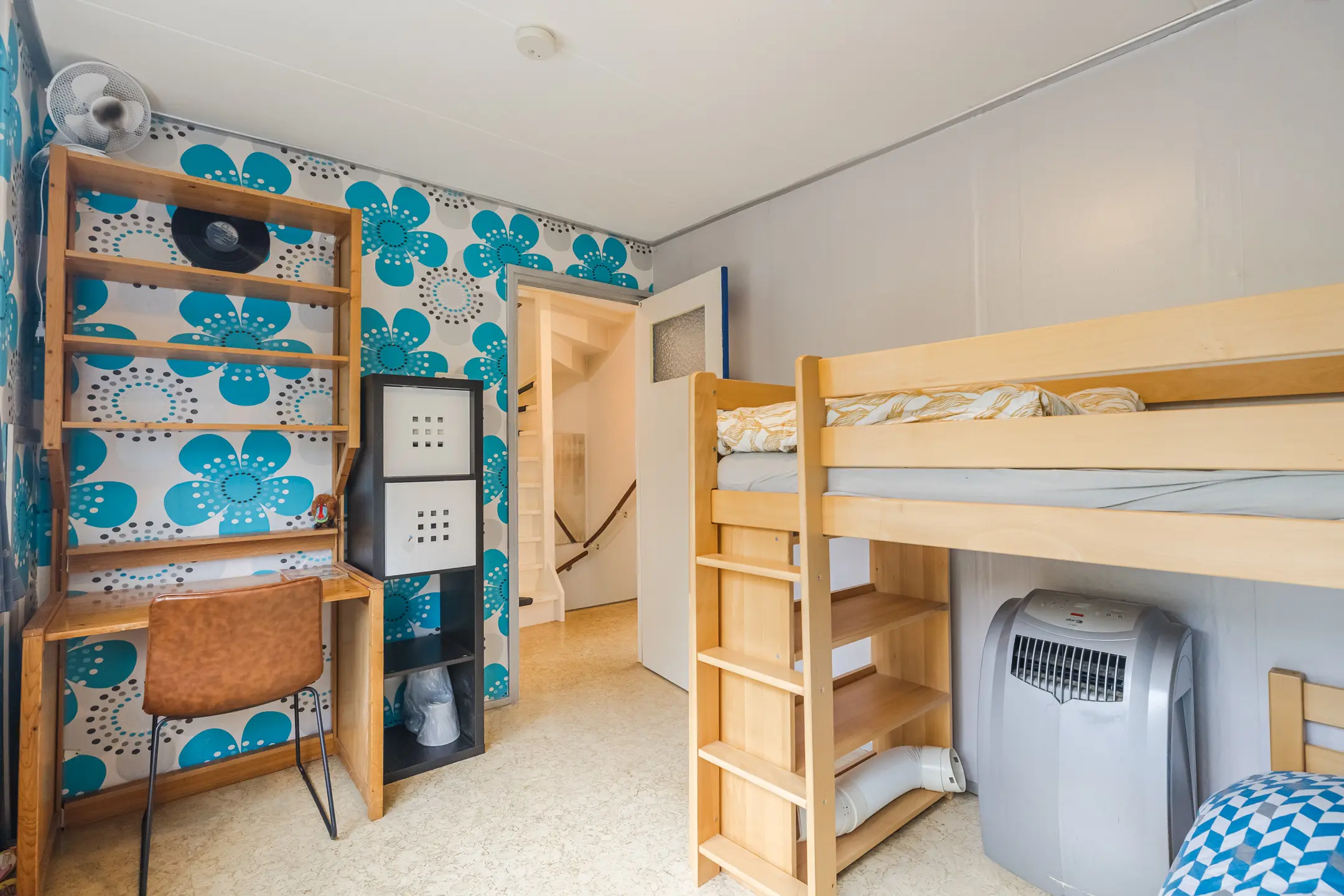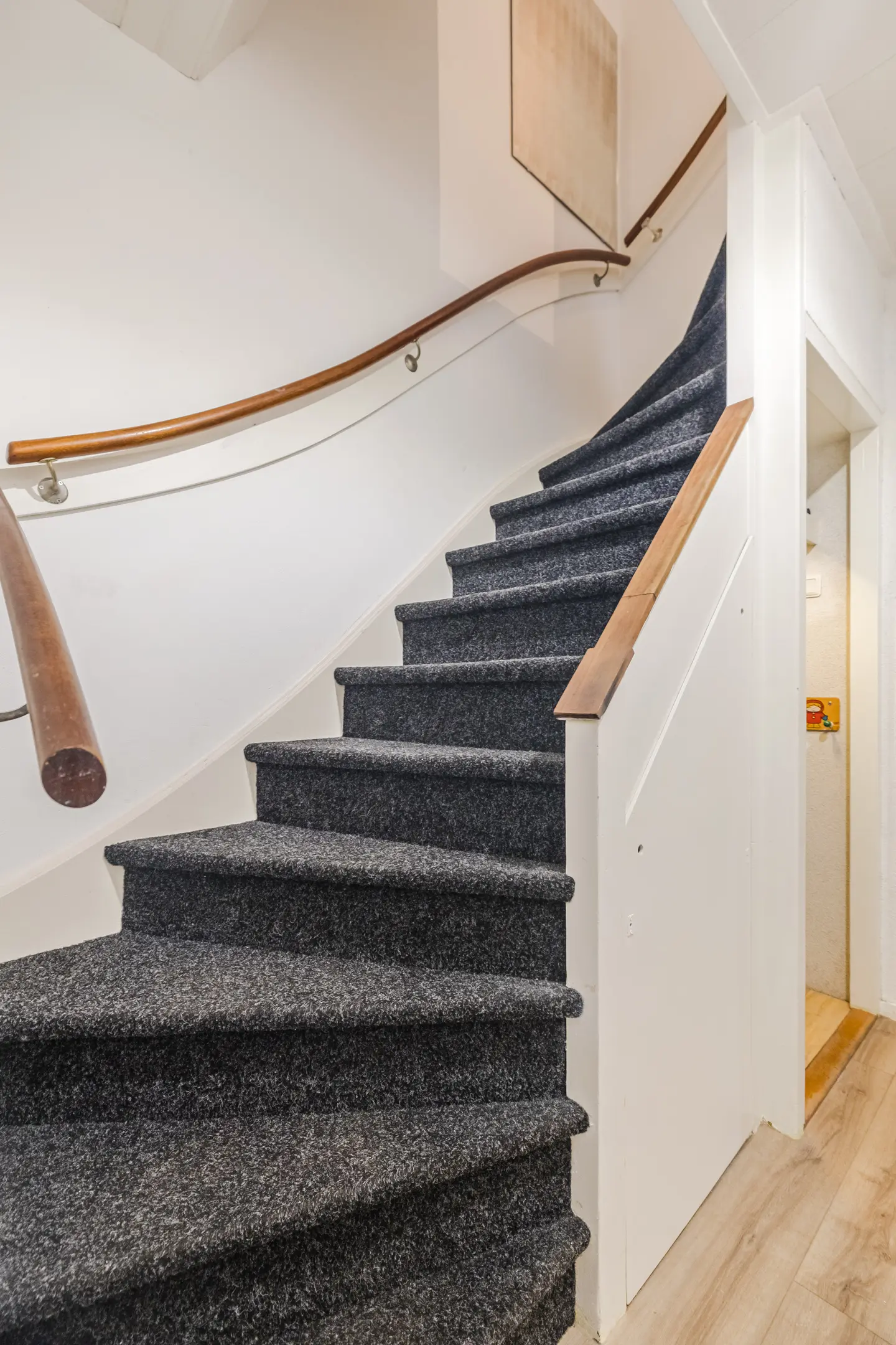 Via een vaste trap bereik je de overloop met cv-opstelling en extra bergruimte. Hier bevinden zich nog twee (slaap)kamers met dakopbouw.