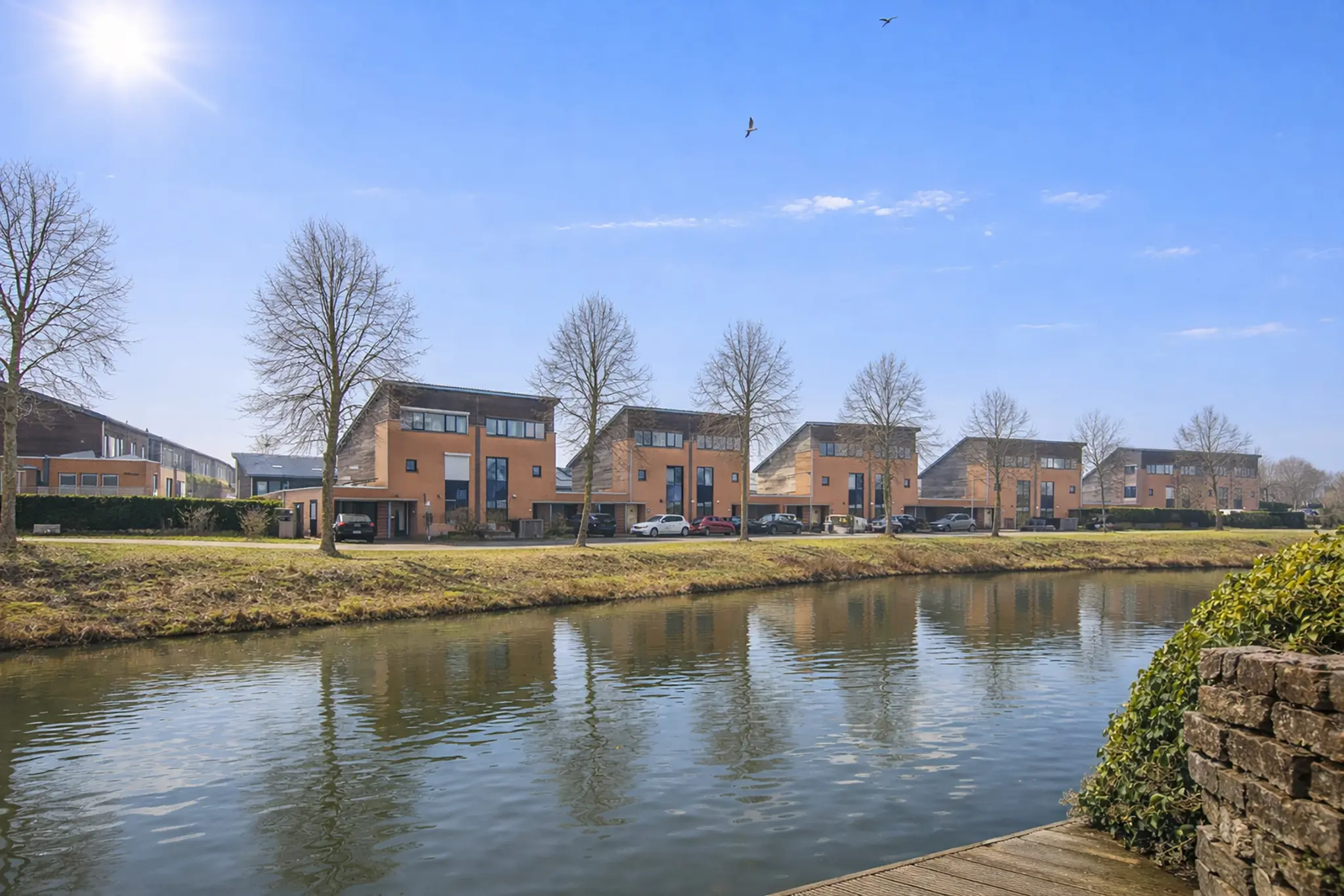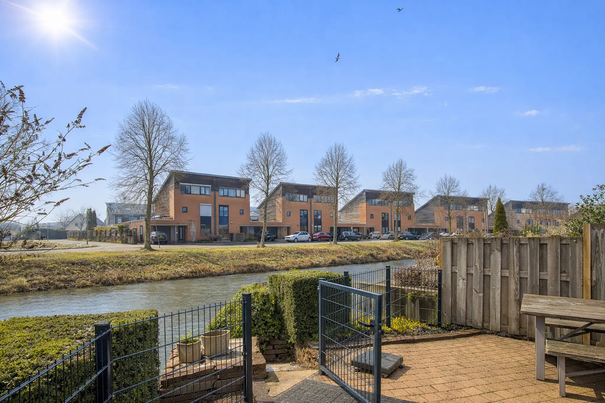De woning beschikt over een fraai aangelegde en zonnige tuin, direct gelegen aan het water, wat zorgt voor een vrij en rustgevend uitzicht. Een heerlijke plek om te ontspannen en te genieten van het buitenleven. Daarnaast is er een ruim dakterras, ideaal voor de avondzon. Parkeren kan comfortabel op eigen terrein, wat bijdraagt aan het wooncomfort.