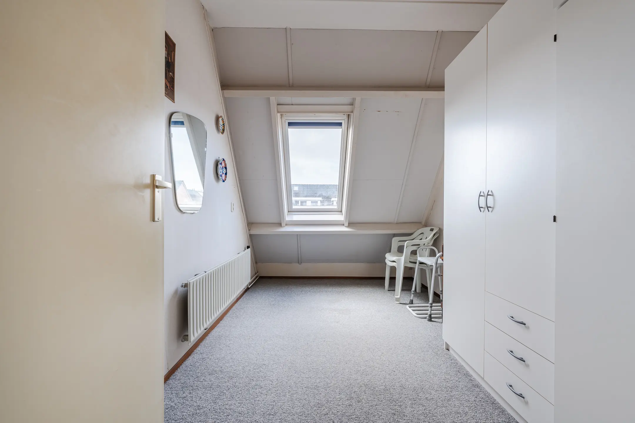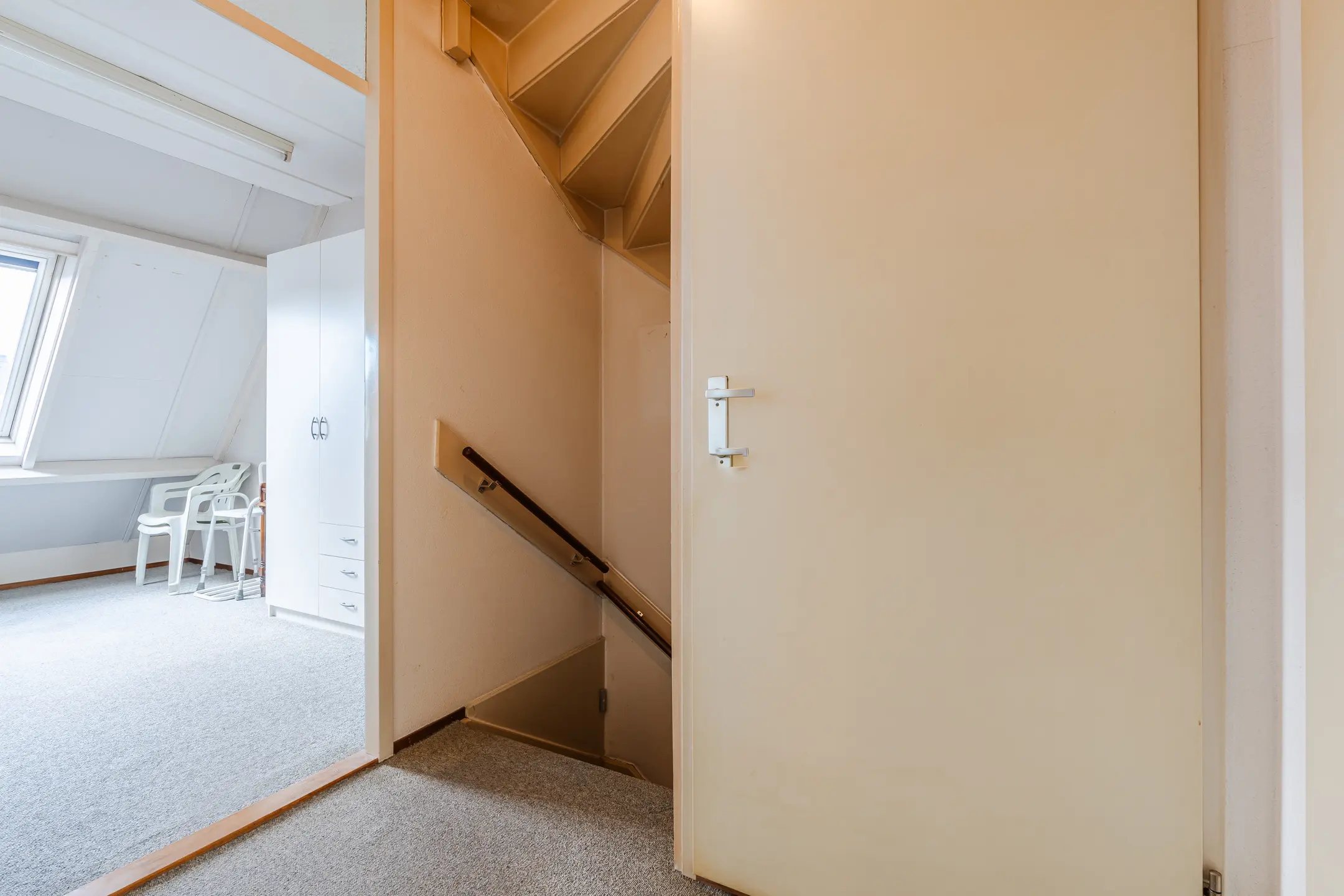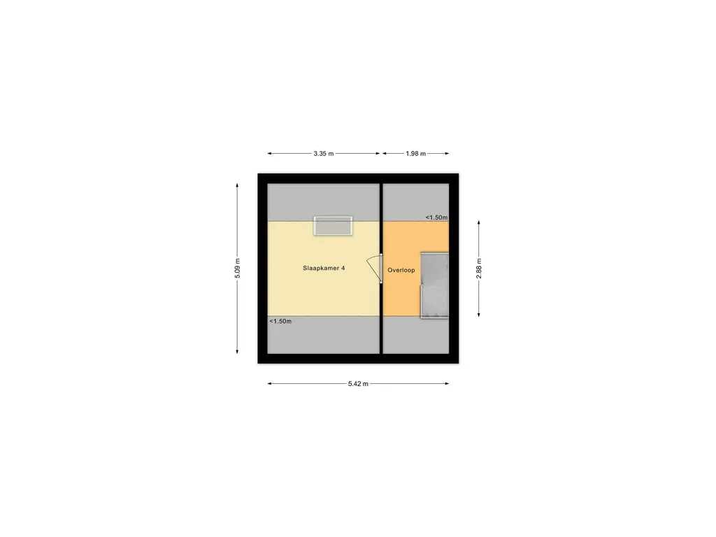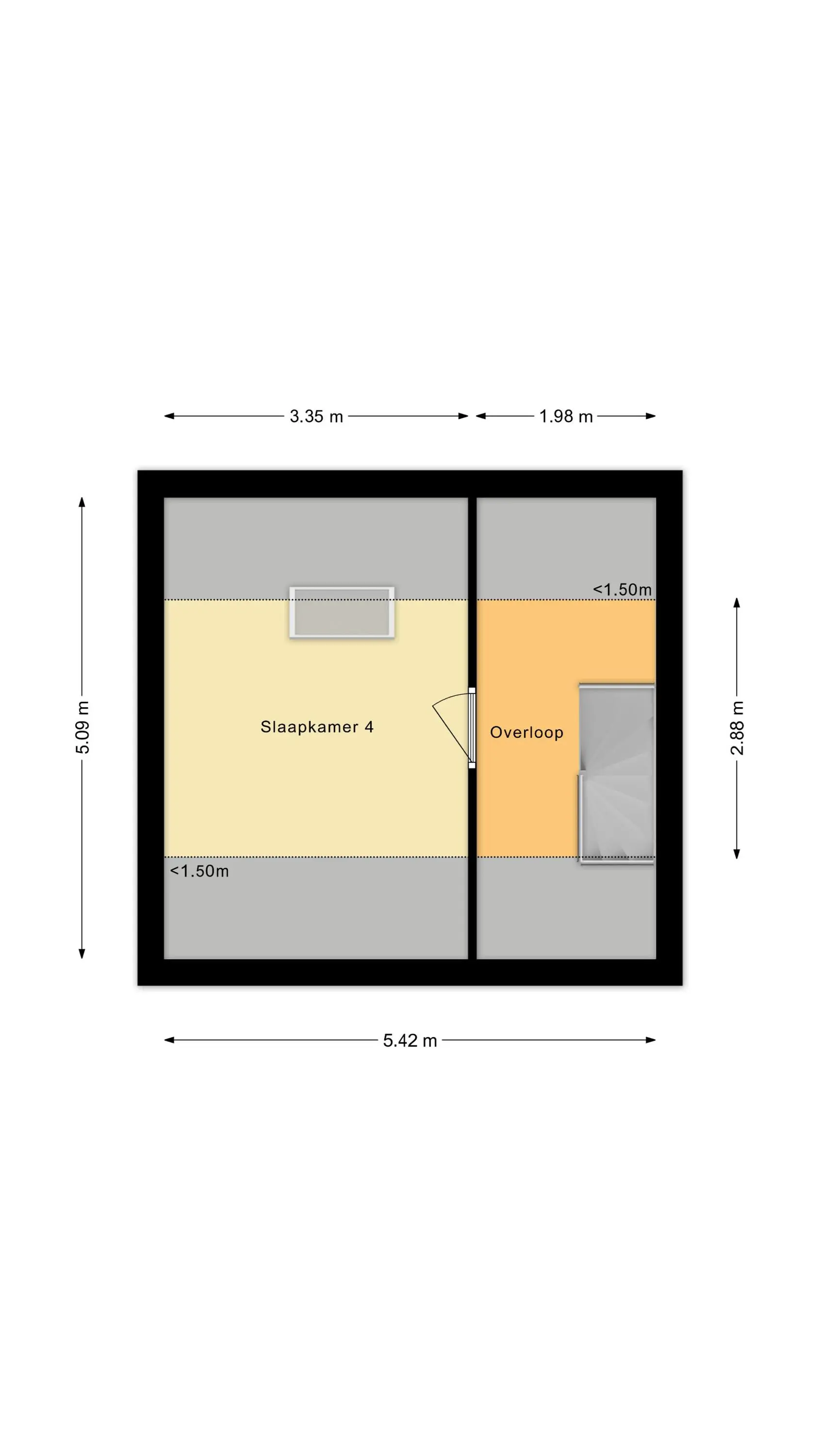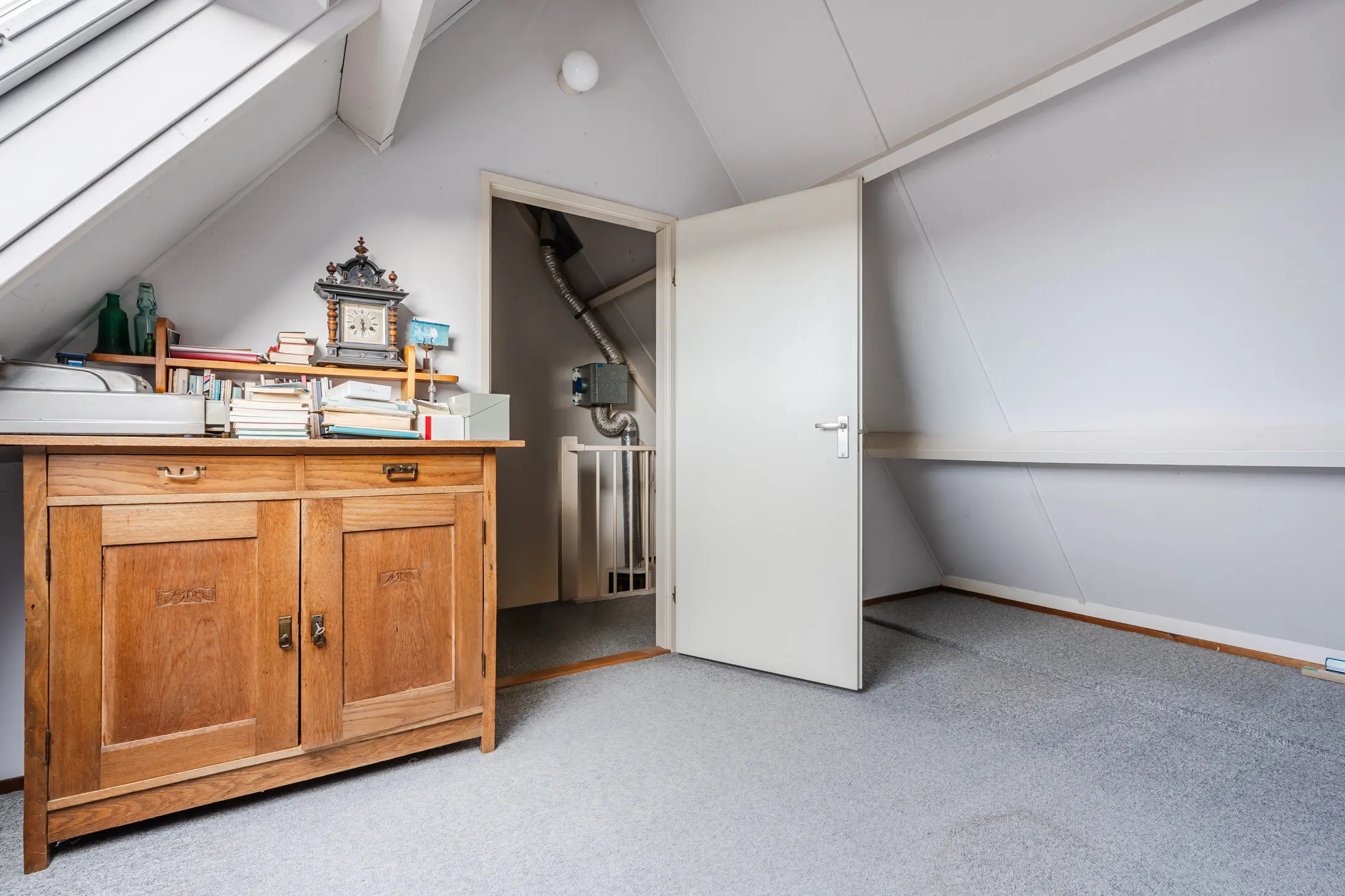 Via een vaste trap bereik je de tweede verdieping. Hier bevindt zich de vierde slaapkamer en een overloop met bergruimte. Deze verdieping is multifunctioneel te gebruiken.