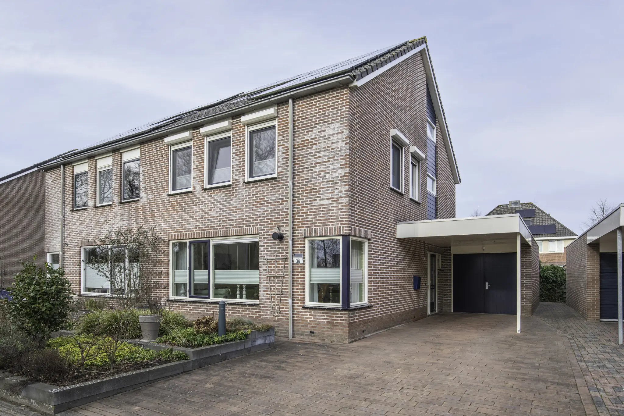 Royale en uitstekend onderhouden twee-onder-een-kapwoning met 5 slaapkamers, luxe afwerking, garage, carport en vrij uitzicht aan de voorzijde
