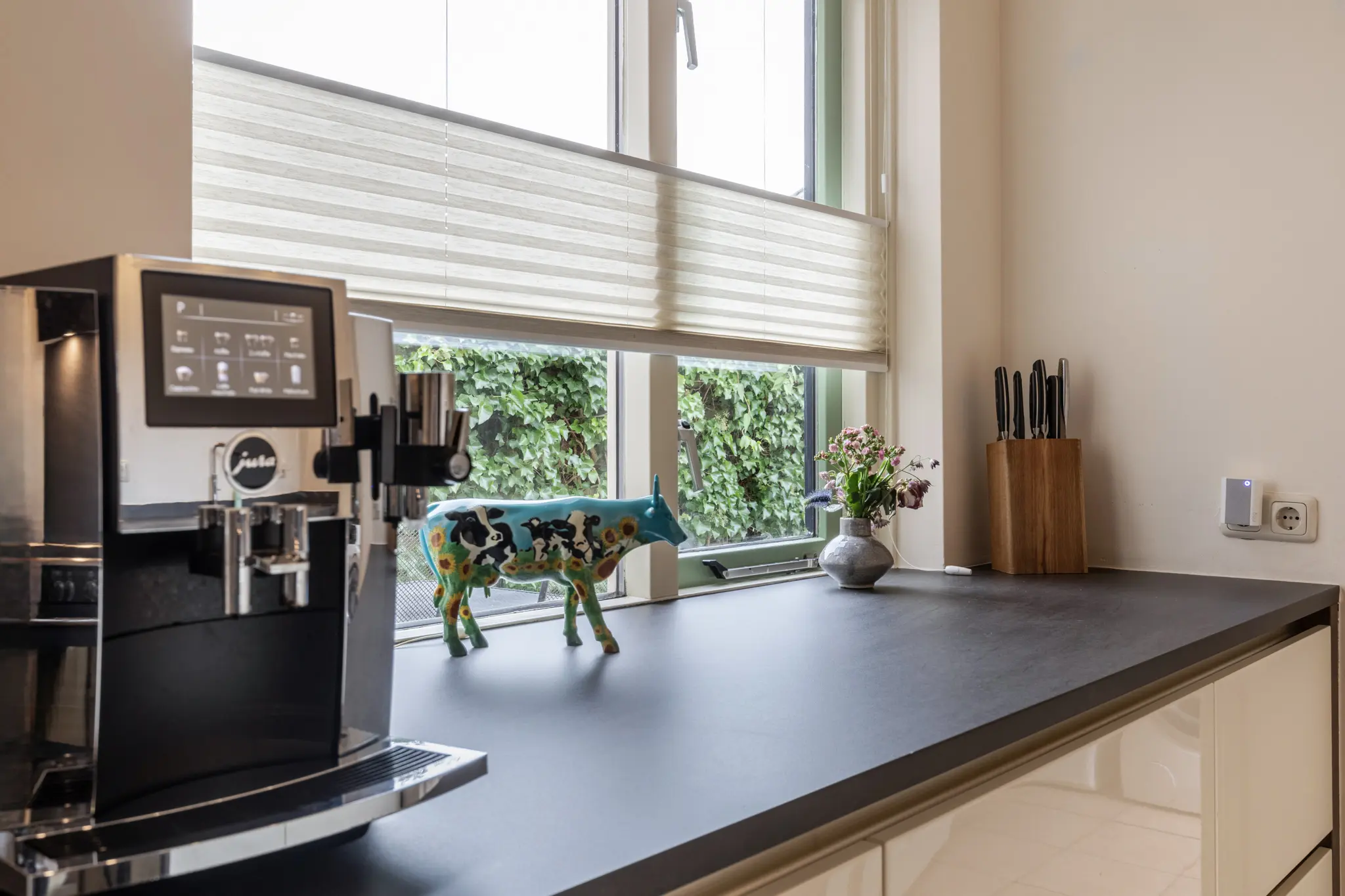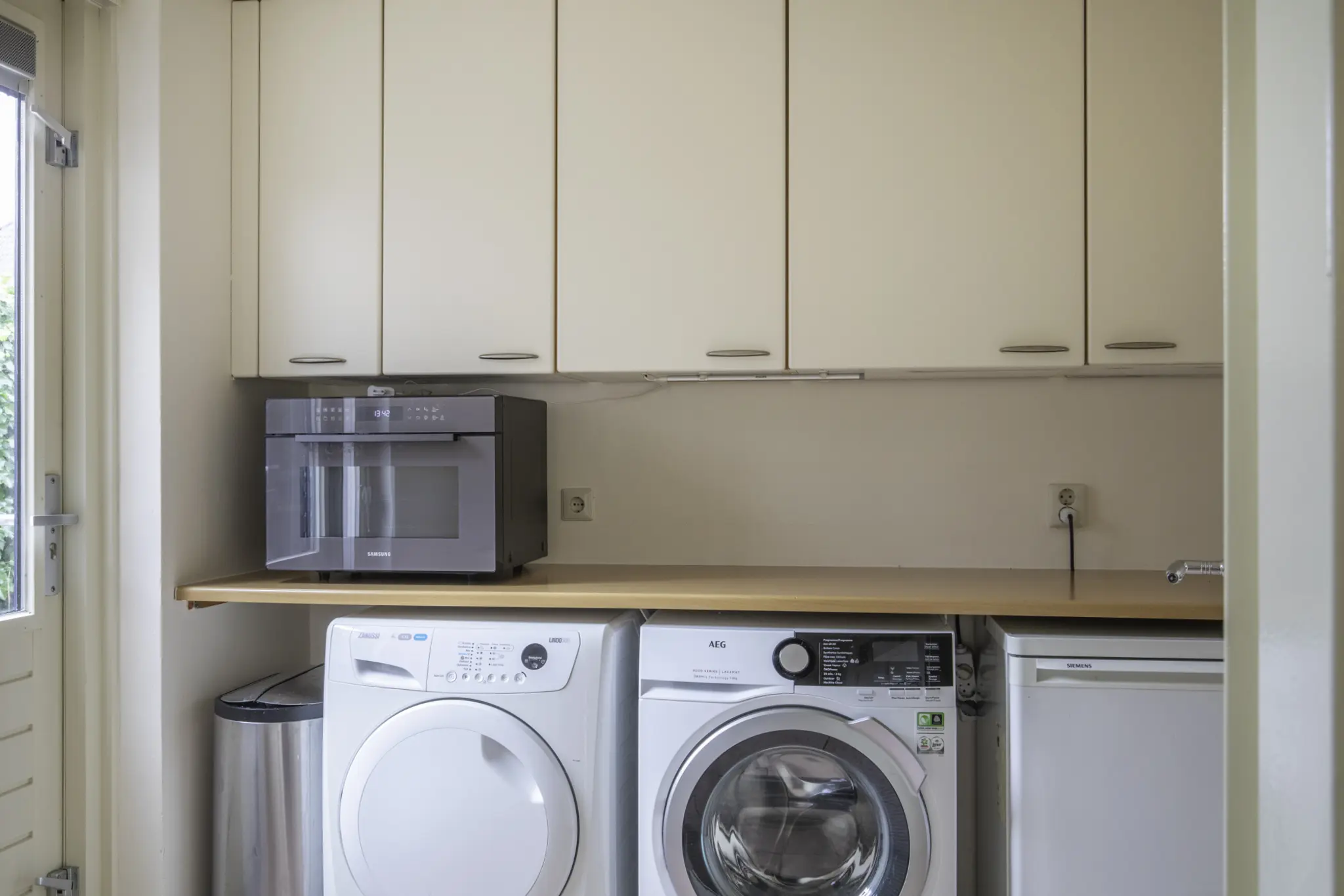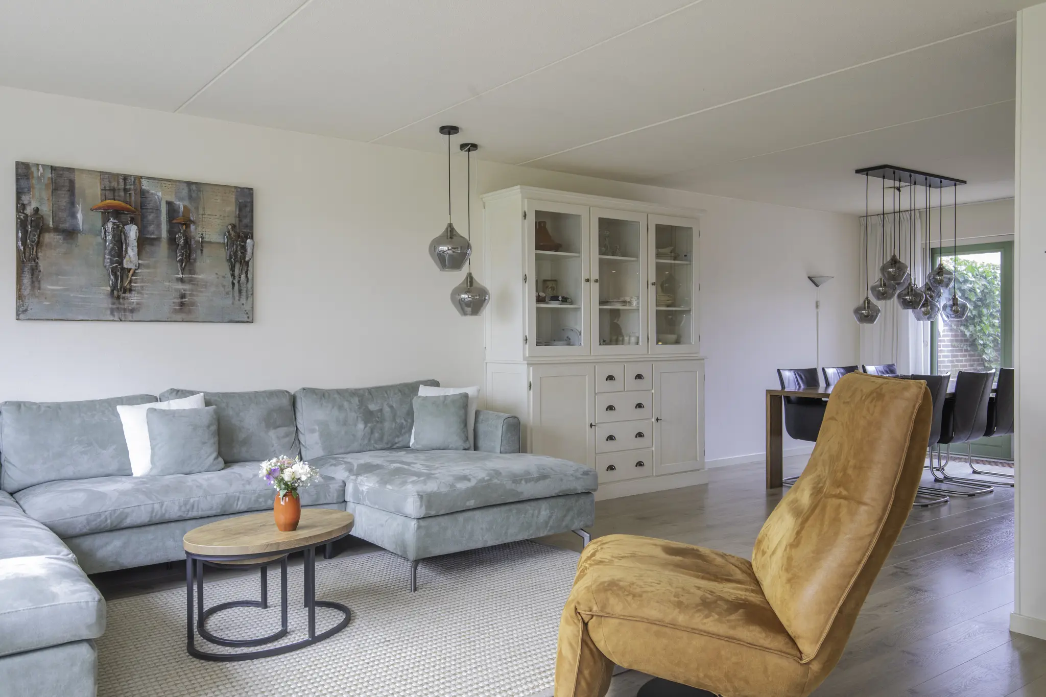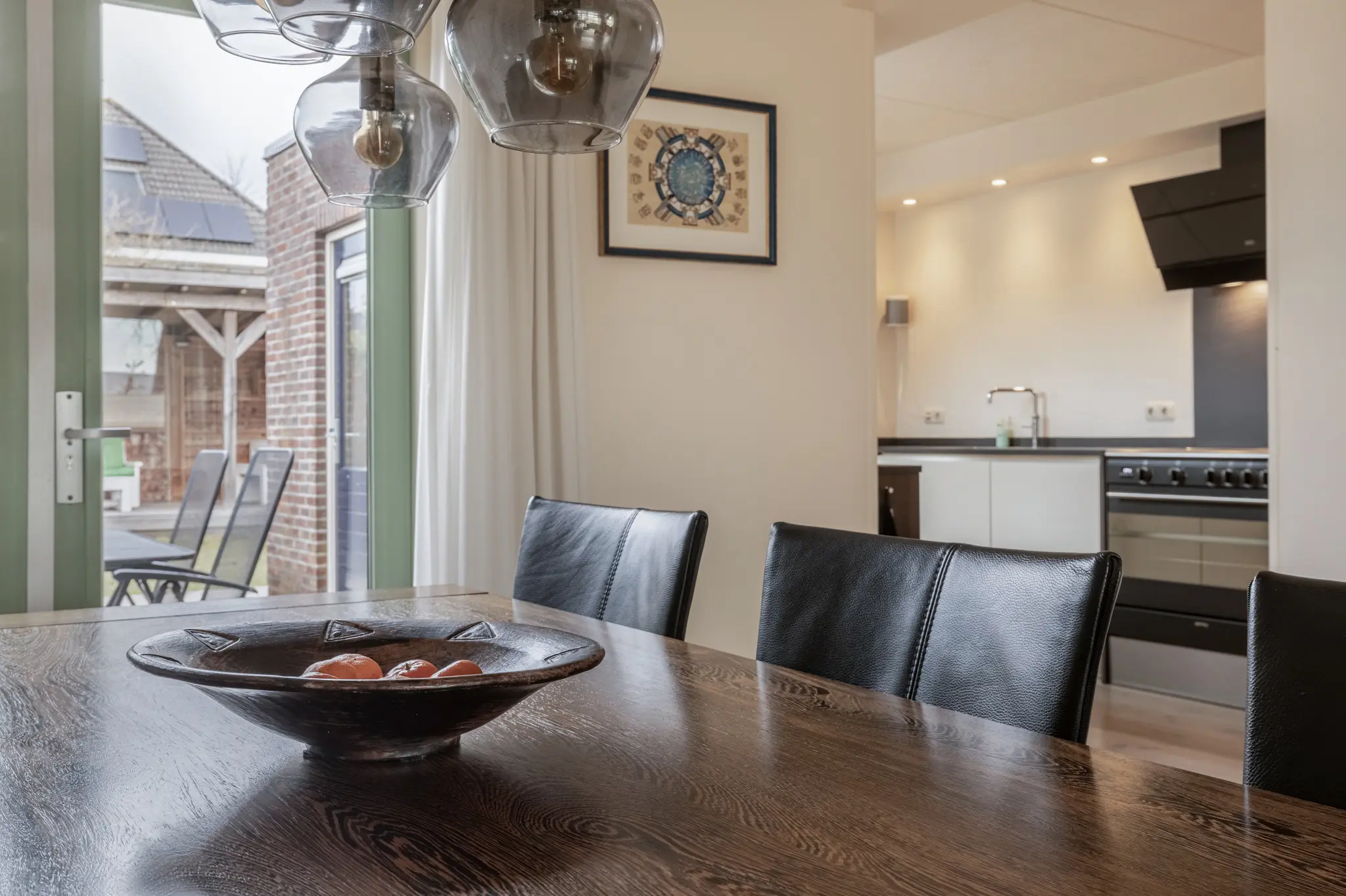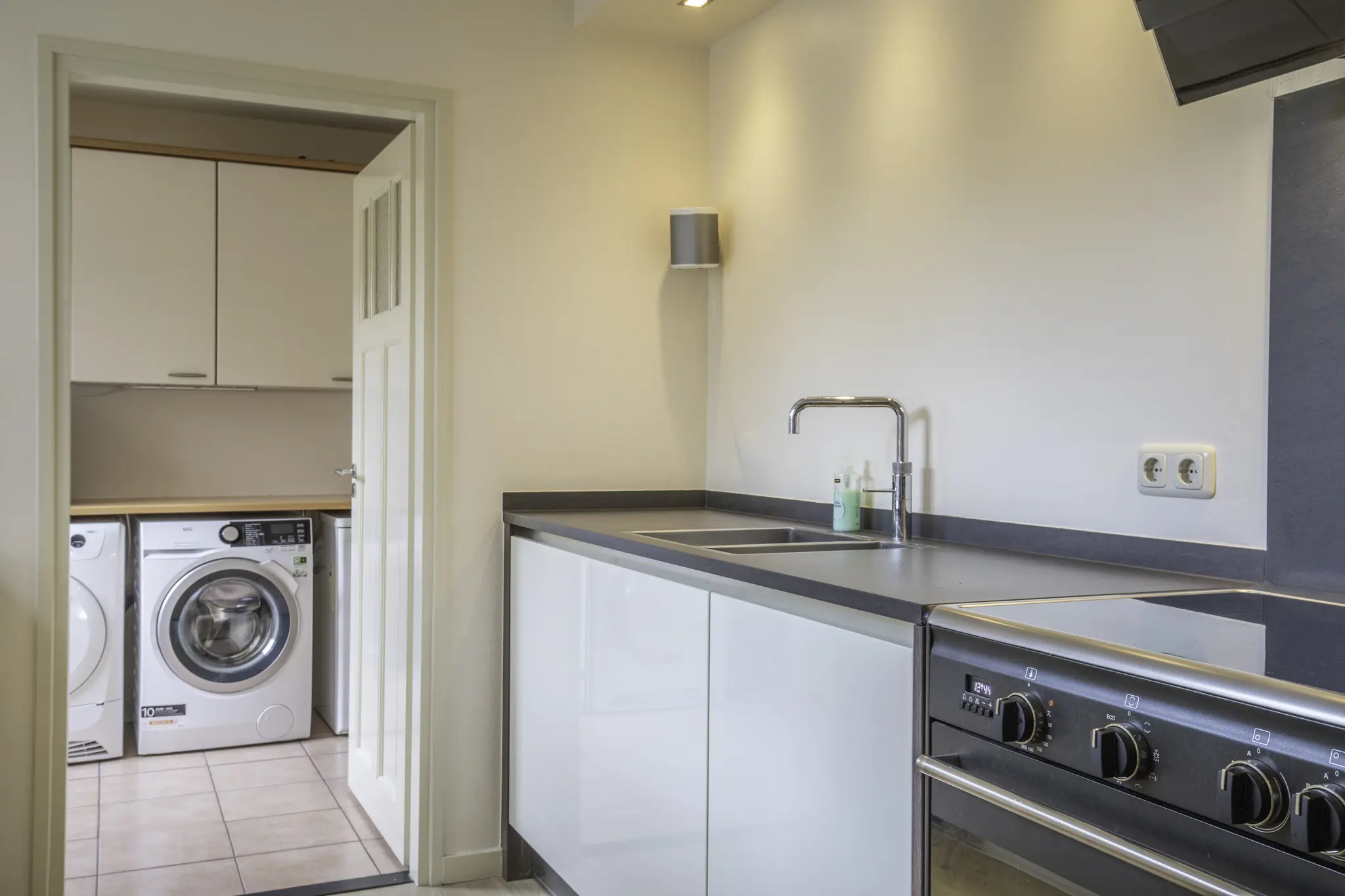 Entree in de hal met trapopgang en toegang tot de royale woonkamer. De woonkamer is heerlijk licht en ruim van opzet en voorzien van een sfeervolle pelletkachel, die niet alleen warmte maar ook extra wooncomfort biedt. Aan de achterzijde bevindt zich de luxe keuken (2015), uitgevoerd met hoogwaardige inbouwapparatuur, waaronder een Quooker, inductiekookplaat met grote oven, vaatwasser, koel-vriescombinatie en afzuigkap. Vanuit de keuken en woonkamer is er een prettige verbinding met de tuin. Aansluitend bevindt zich de ruime bijkeuken met volop bergruimte en witgoedaansluitingen. Vanuit de bijkeuken is er binnendoor toegang tot de garage, wat zorgt voor extra gemak.