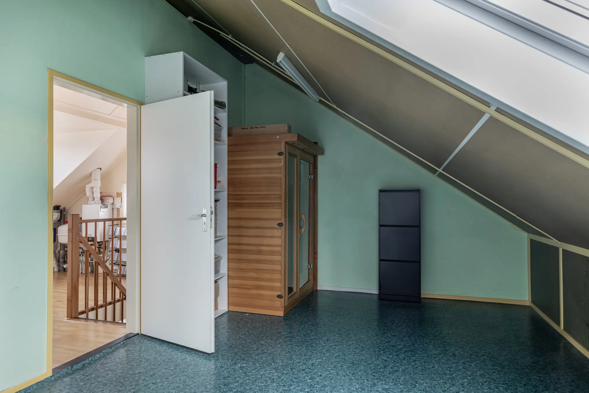 De tweede verdieping is in 2021 aanzienlijk vergroot door het plaatsen van een dakkapel. Hierdoor zijn hier twee volwaardige slaapkamers gerealiseerd, evenals een overloop met de opstelling van de cv-ketel, mechanische afzuiging en omvormer. Deze verdieping leent zich ook uitstekend als werk- of hobbyruimte. Daarnaast bevindt zich hier een infraroodsauna, een luxe extra voor ontspanning in eigen huis.