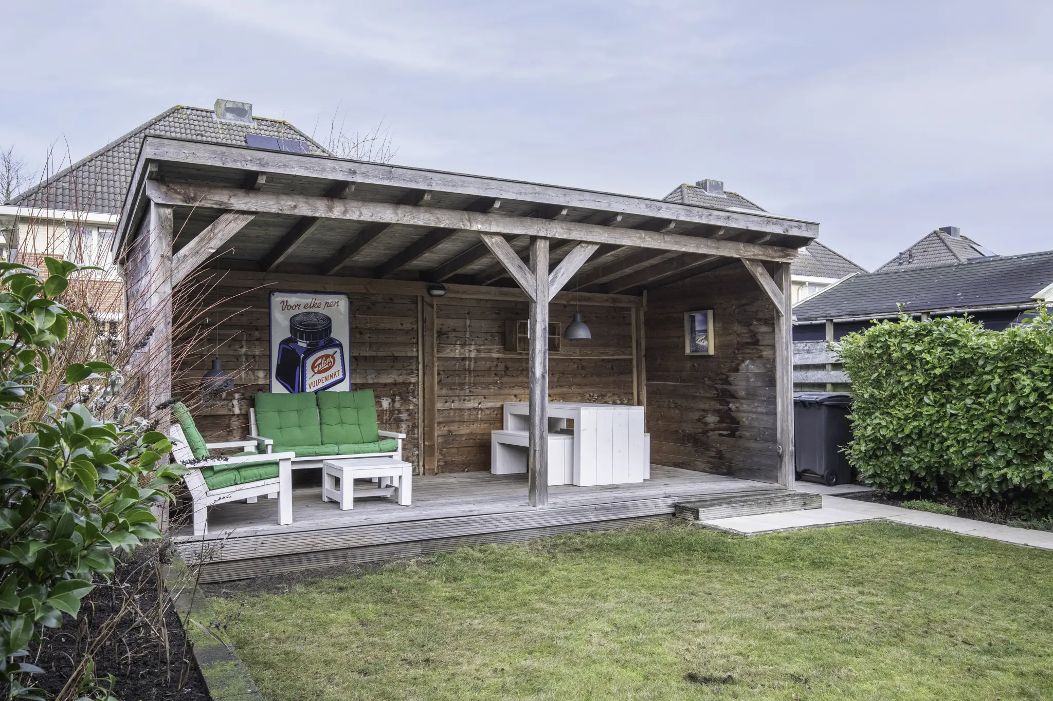 De fraai aangelegde achtertuin (2015) is verzorgd, biedt volop privacy en nodigt uit tot genieten. De veranda maakt het mogelijk om in alle seizoenen comfortabel buiten te verblijven. Aan de voorzijde beschikt de woning over parkeergelegenheid op eigen terrein, een carport van ca. 15 m² en een ruime garage van ca. 19 m².