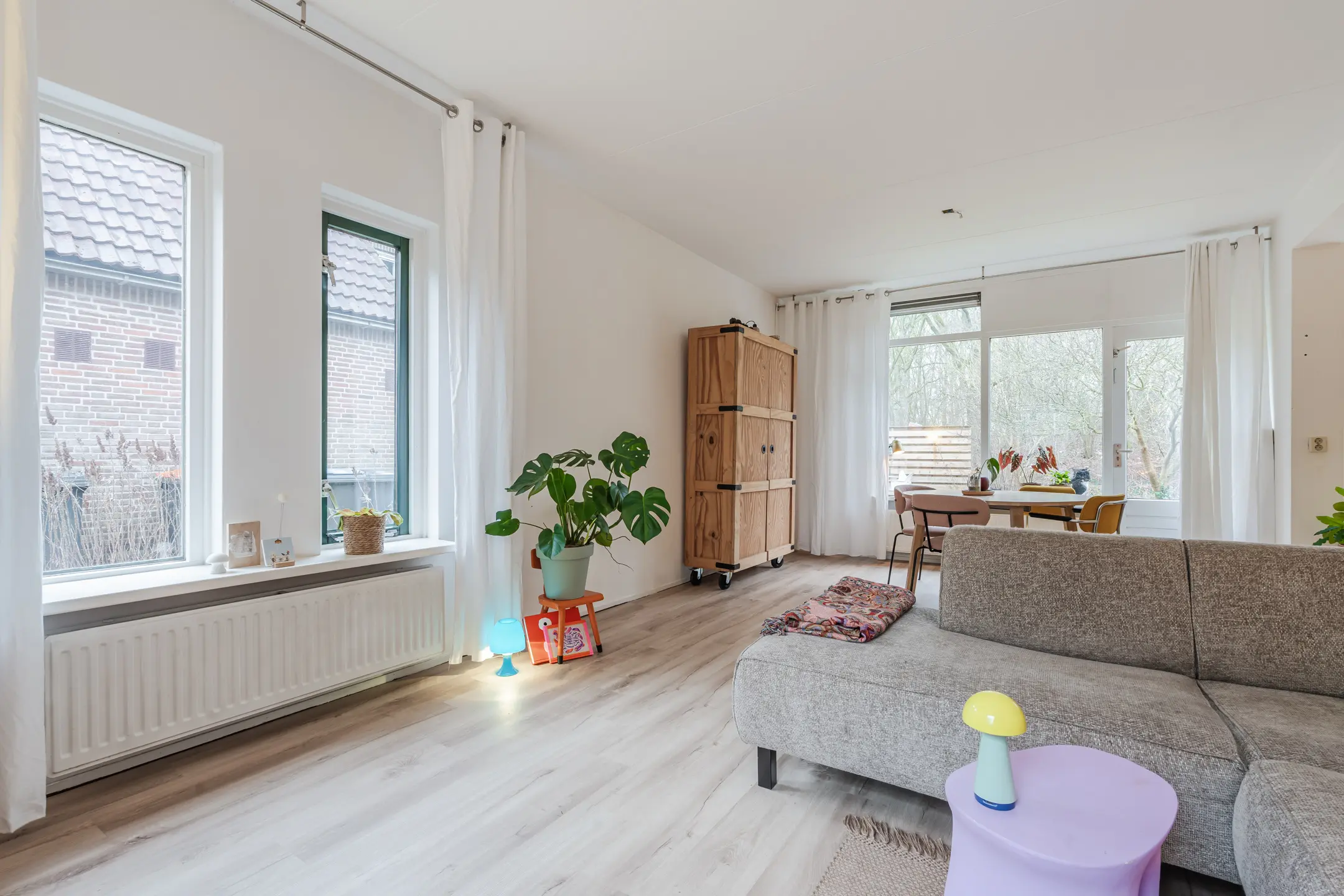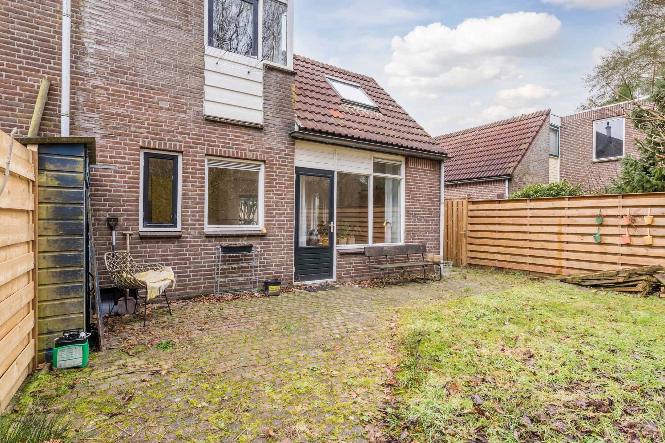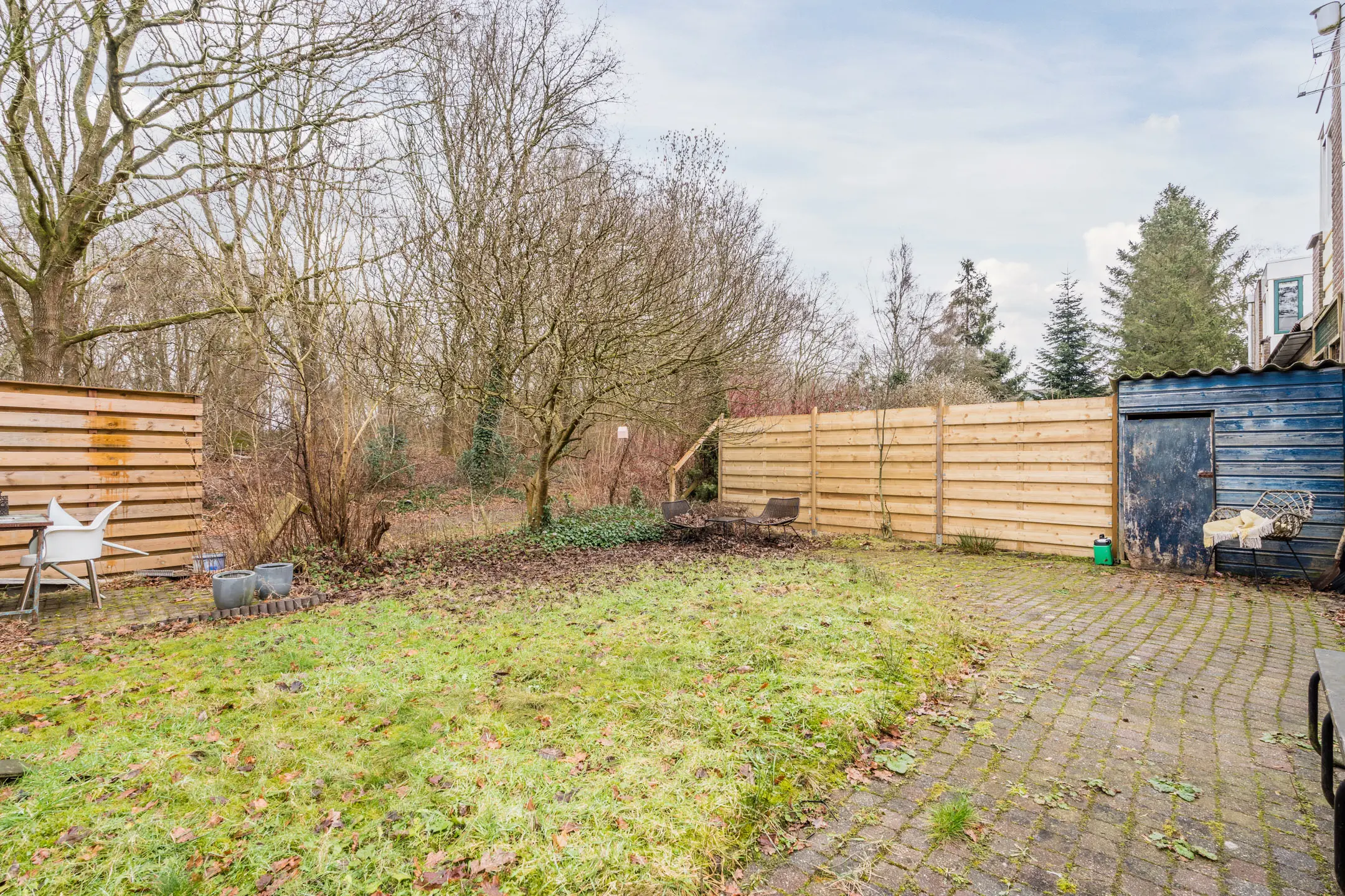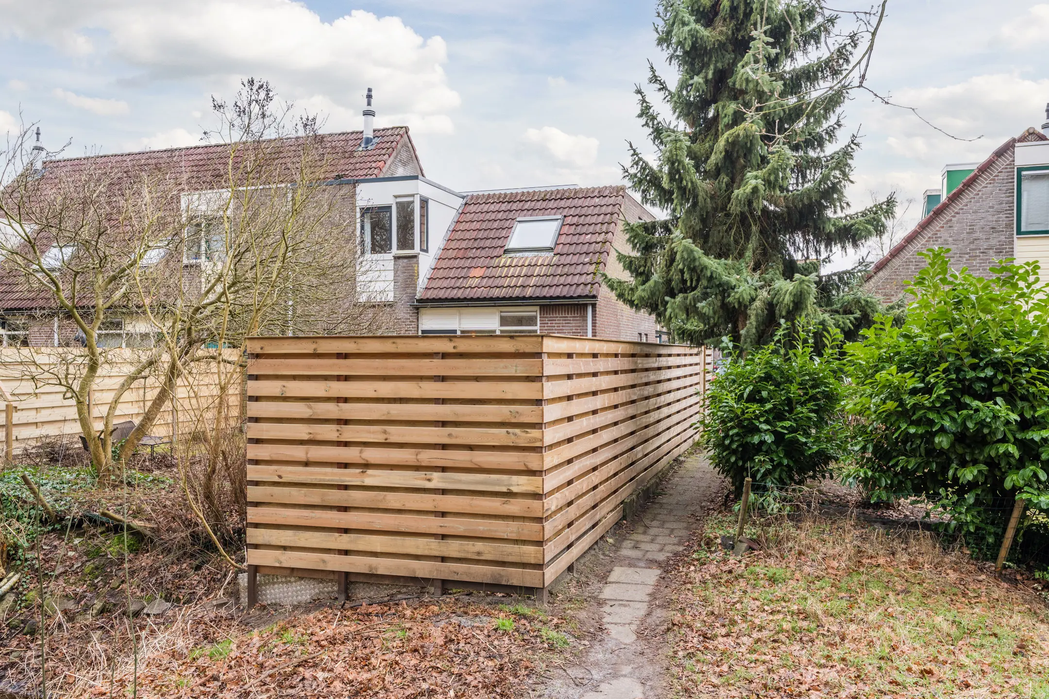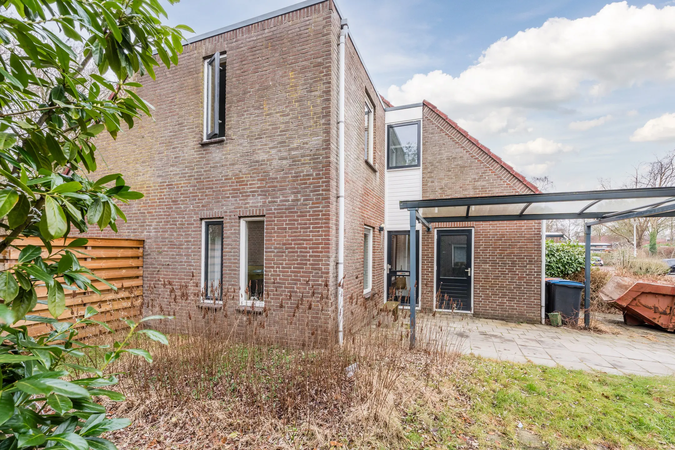 De privacyrijke achtertuin, gelegen op het noordwesten, grenst direct aan groen en biedt een rustige plek om te ontspannen. De tuin is bereikbaar via een achterom. Parkeren kan op eigen terrein, zowel op de oprit als onder de carport.