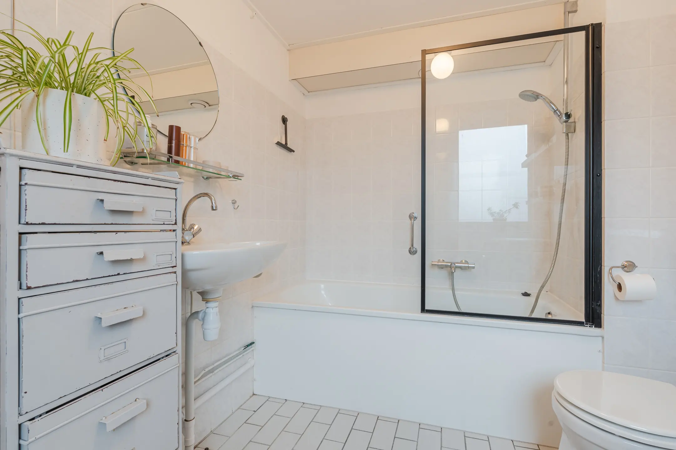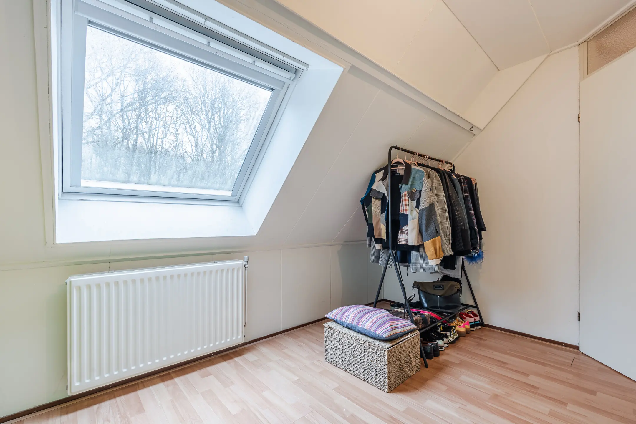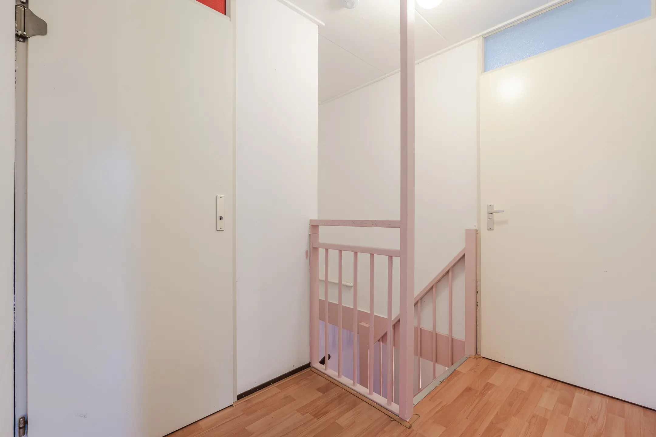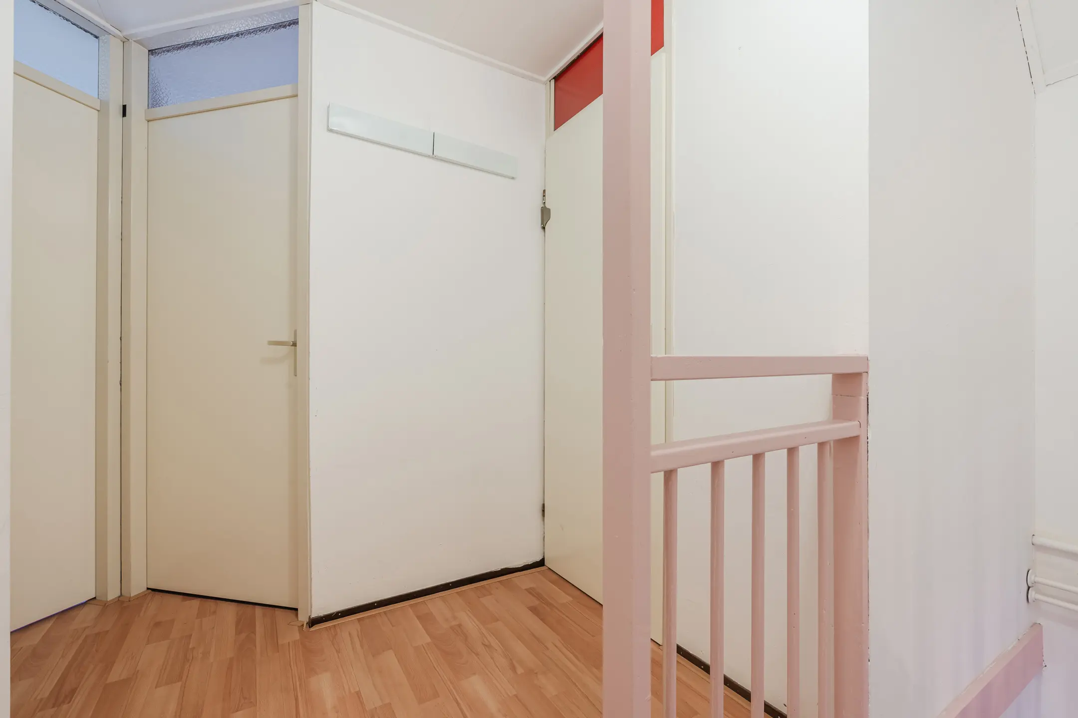 Overloop met toegang tot drie slaapkamers, waarvan één met Frans balkon. Verder een berging met cv-opstelling en een complete badkamer met ligbad, wastafel, toilet en witgoedaansluiting.