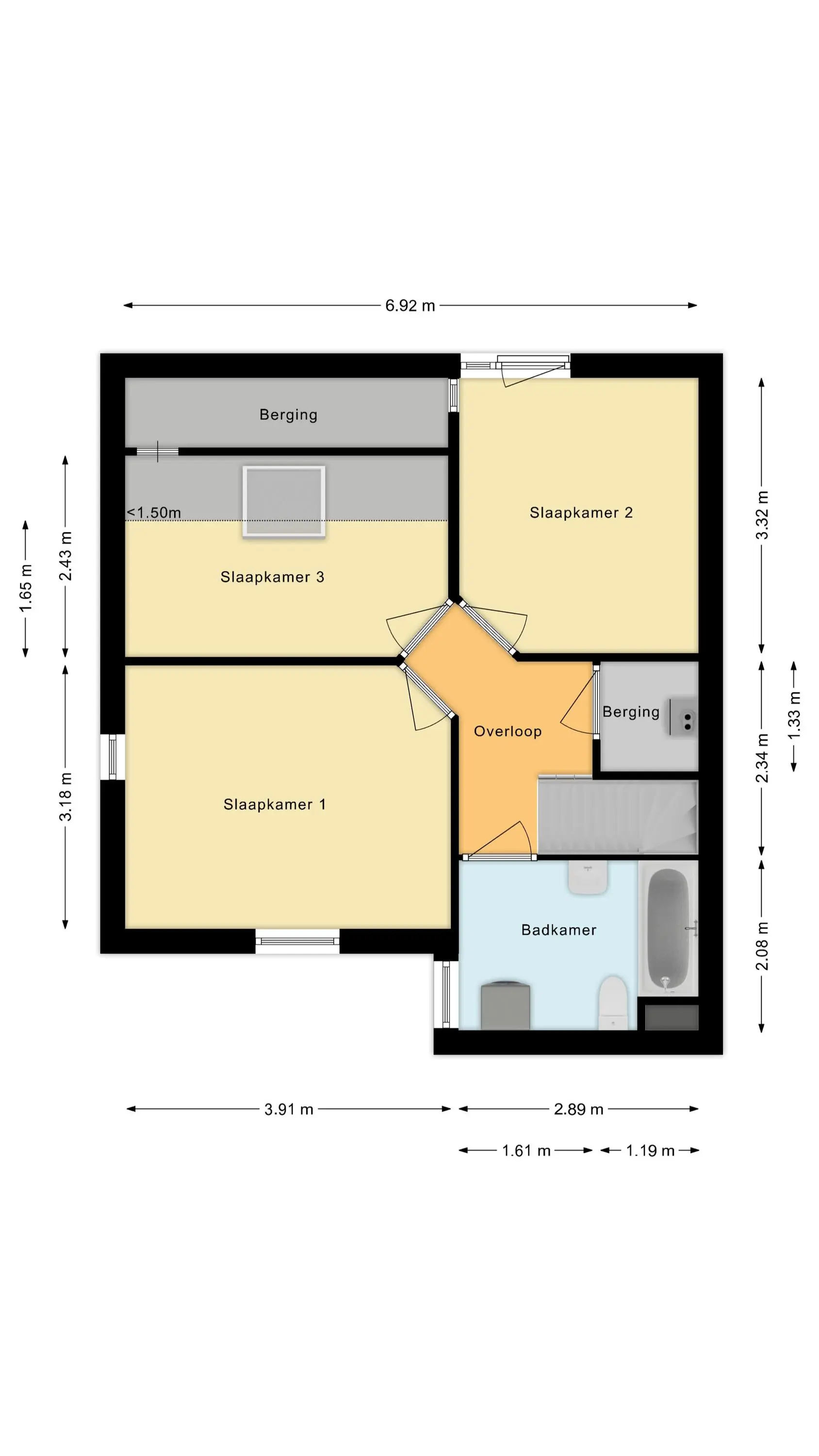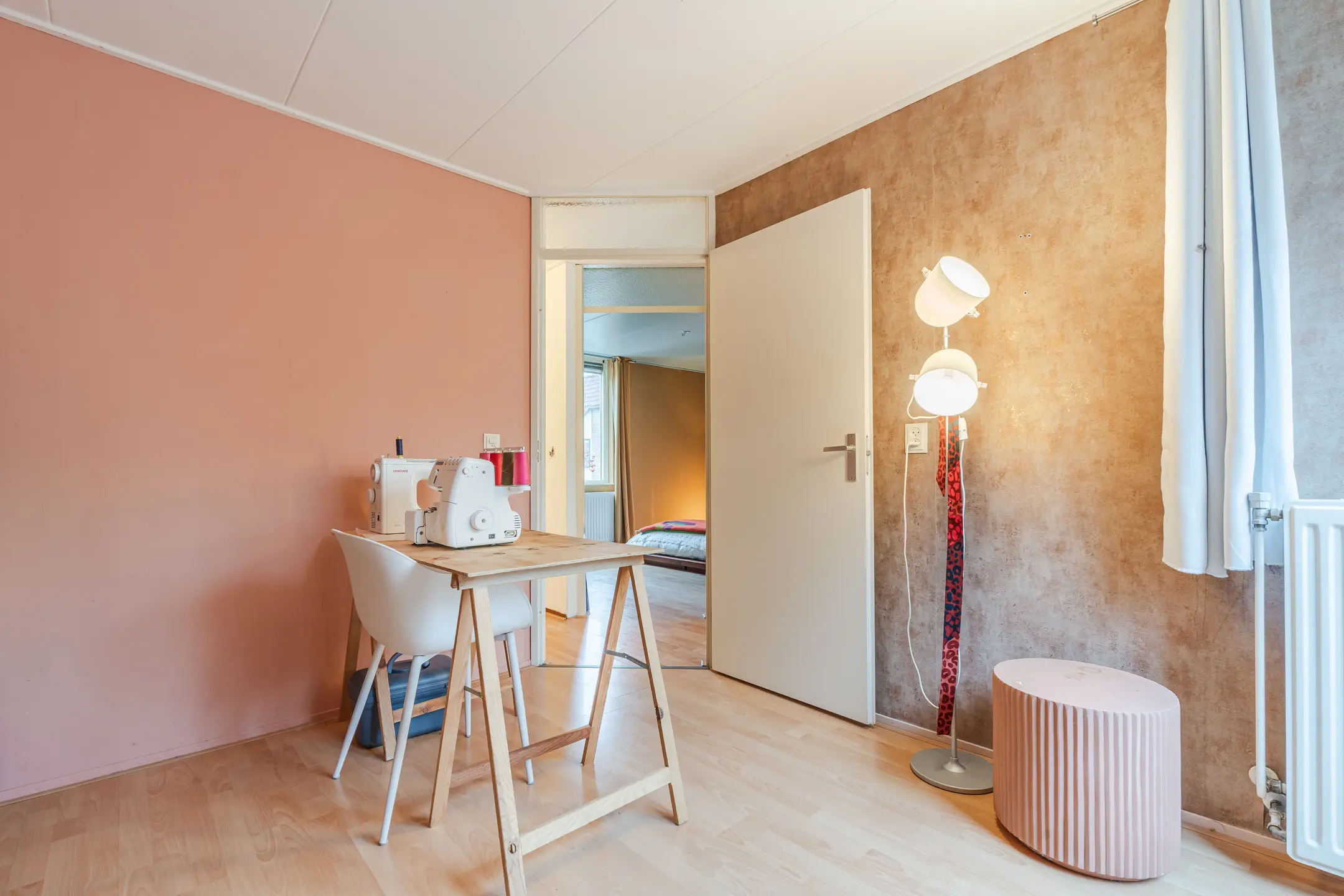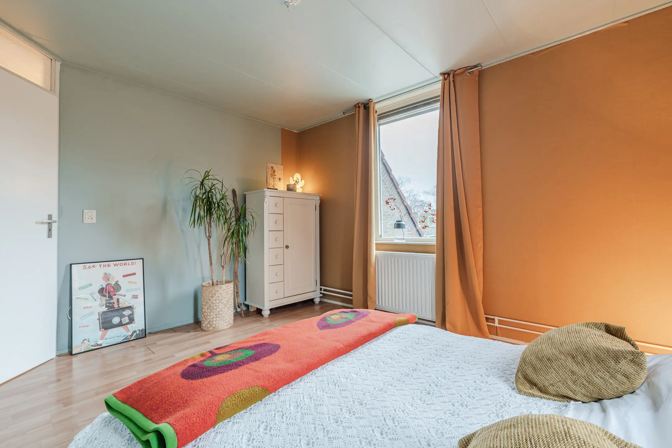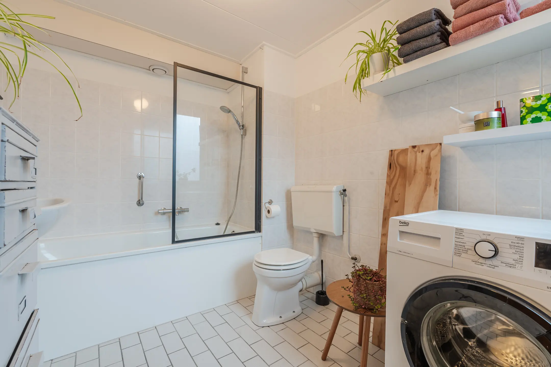 Overloop met toegang tot drie slaapkamers, waarvan één met Frans balkon. Verder een berging met cv-opstelling en een complete badkamer met ligbad, wastafel, toilet en witgoedaansluiting.