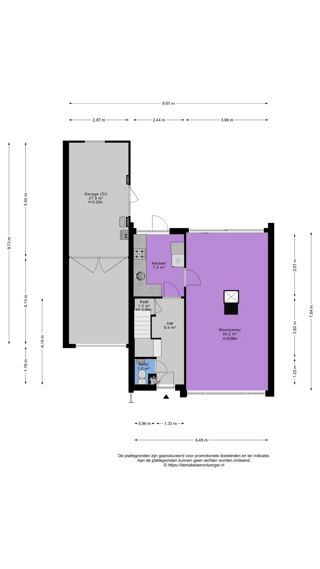 Een belangrijk pluspunt is de extra grote garage van circa 28 m², ideaal voor het stallen van een auto, als hobbyruimte of voor extra opslag. Parkeren op eigen terrein is mogelijk.