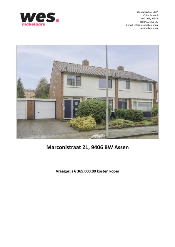 Ben je op zoek naar een fijne woning op een gewilde locatie in Assen? Dan is deze geschakelde twee-onder-een-kapwoning aan de Marconistraat 21 absoluut het bekijken waard. Je woont hier heerlijk rustig in de populaire woonwijk De Lariks, met zowel het Lariksbos als het gezellige stadscentrum van Assen op korte afstand. Een ideale combinatie van groen, rust en alle dagelijkse voorzieningen binnen handbereik.