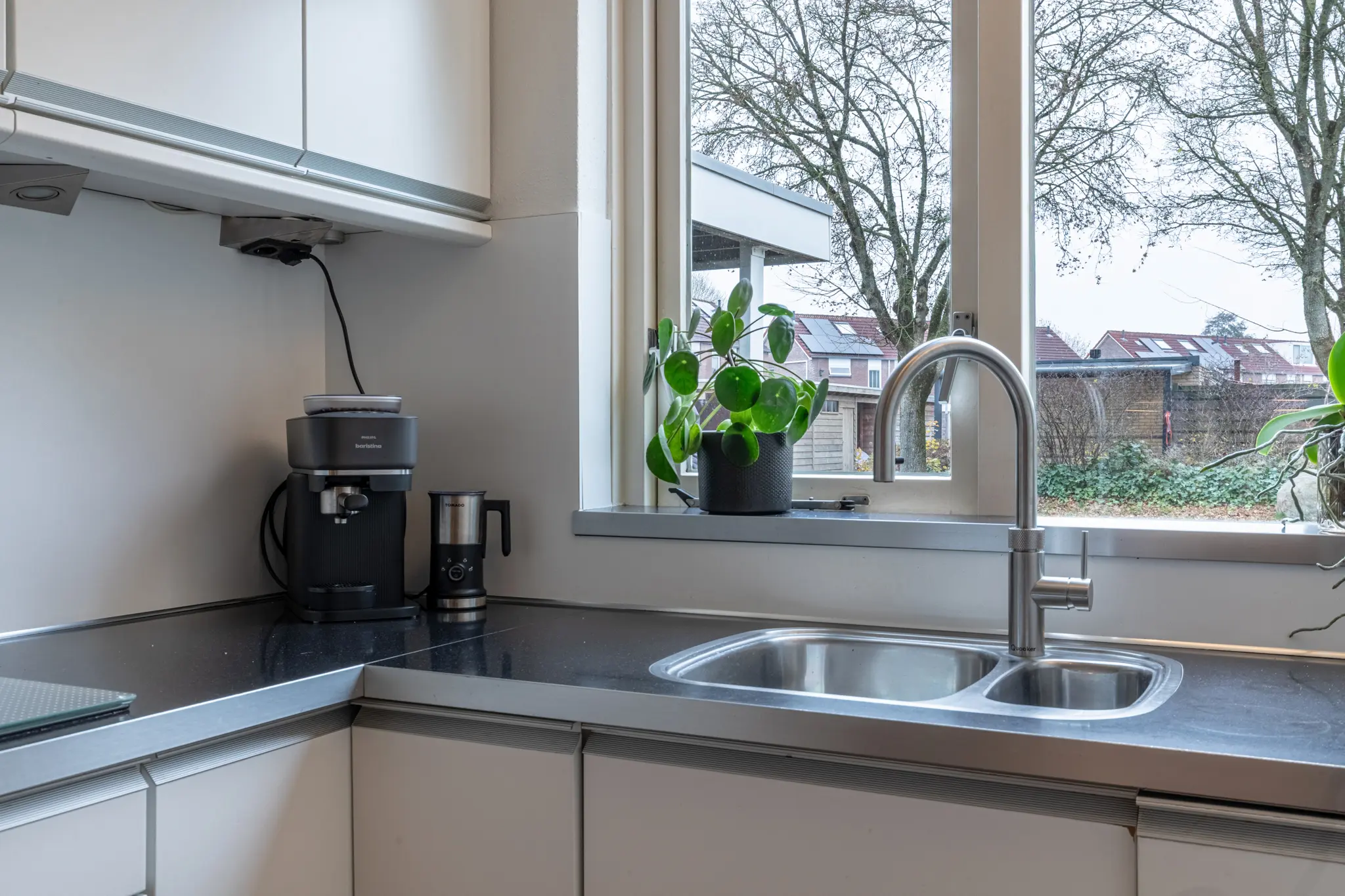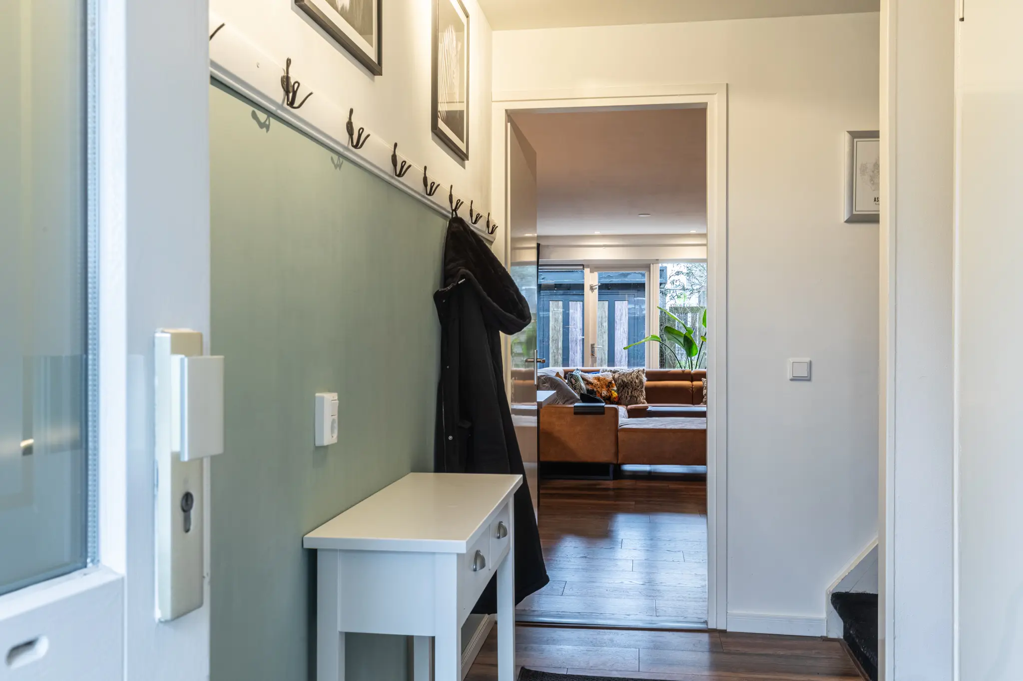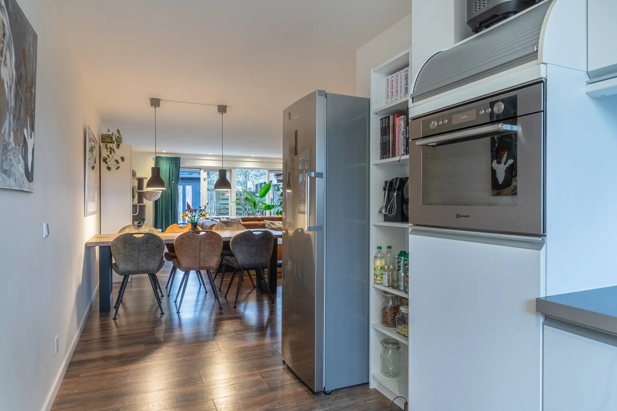Via de entree kom je in de hal met toegang tot de woonkamer en bijkeuken. De uitgebouwde, tuingerichte woonkamer is heerlijk licht en biedt volop ruimte voor een comfortabele zithoek en eethoek. Dankzij de vloerverwarming op de begane grond is het hier het hele jaar door aangenaam wonen. De moderne keuken is voorzien van diverse inbouwapparatuur en sluit goed aan bij de uitstraling van de woning. Aangrenzend bevindt zich de bijkeuken met binnendoor toegang tot de berging, wat zorgt voor extra gemak en praktische bergruimte.