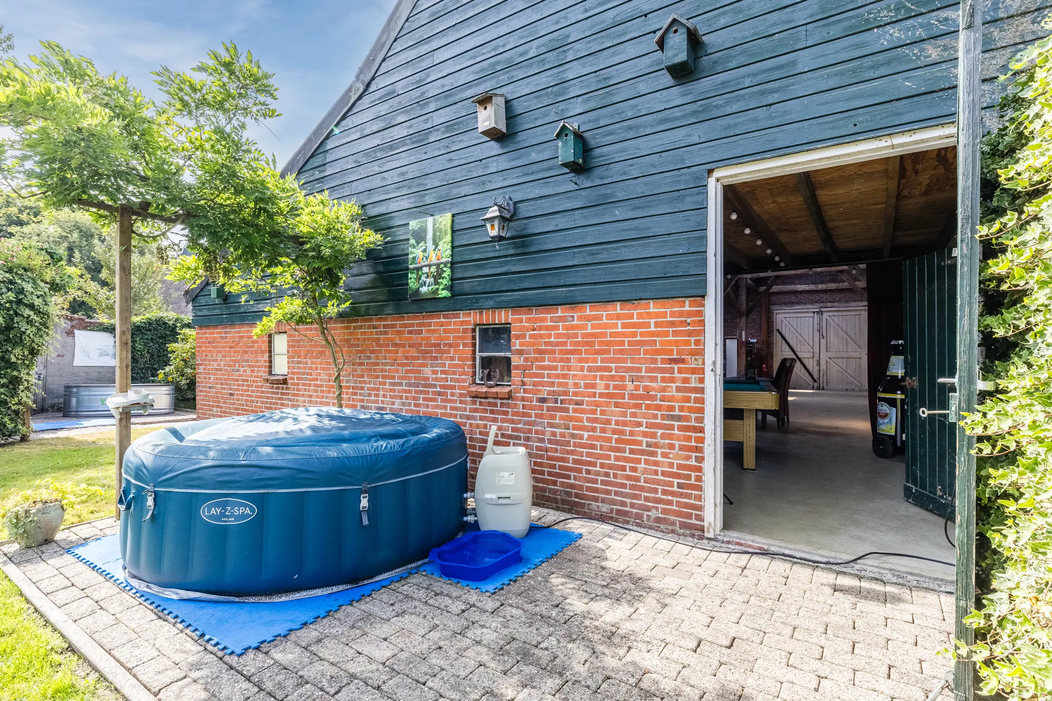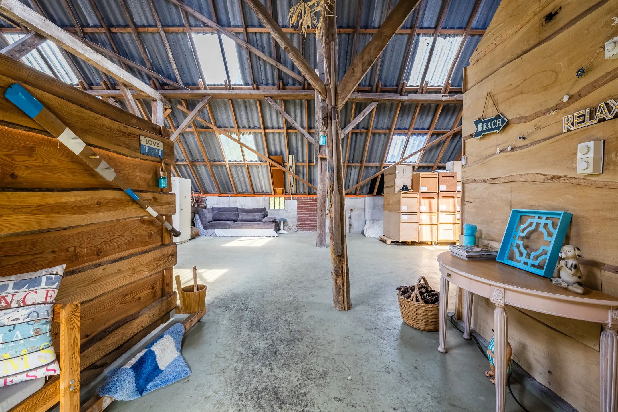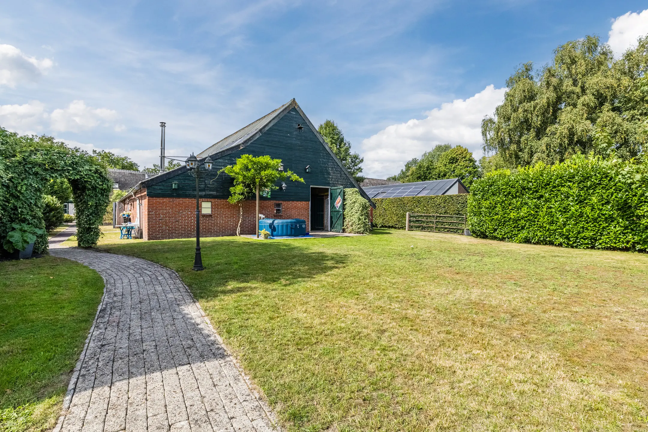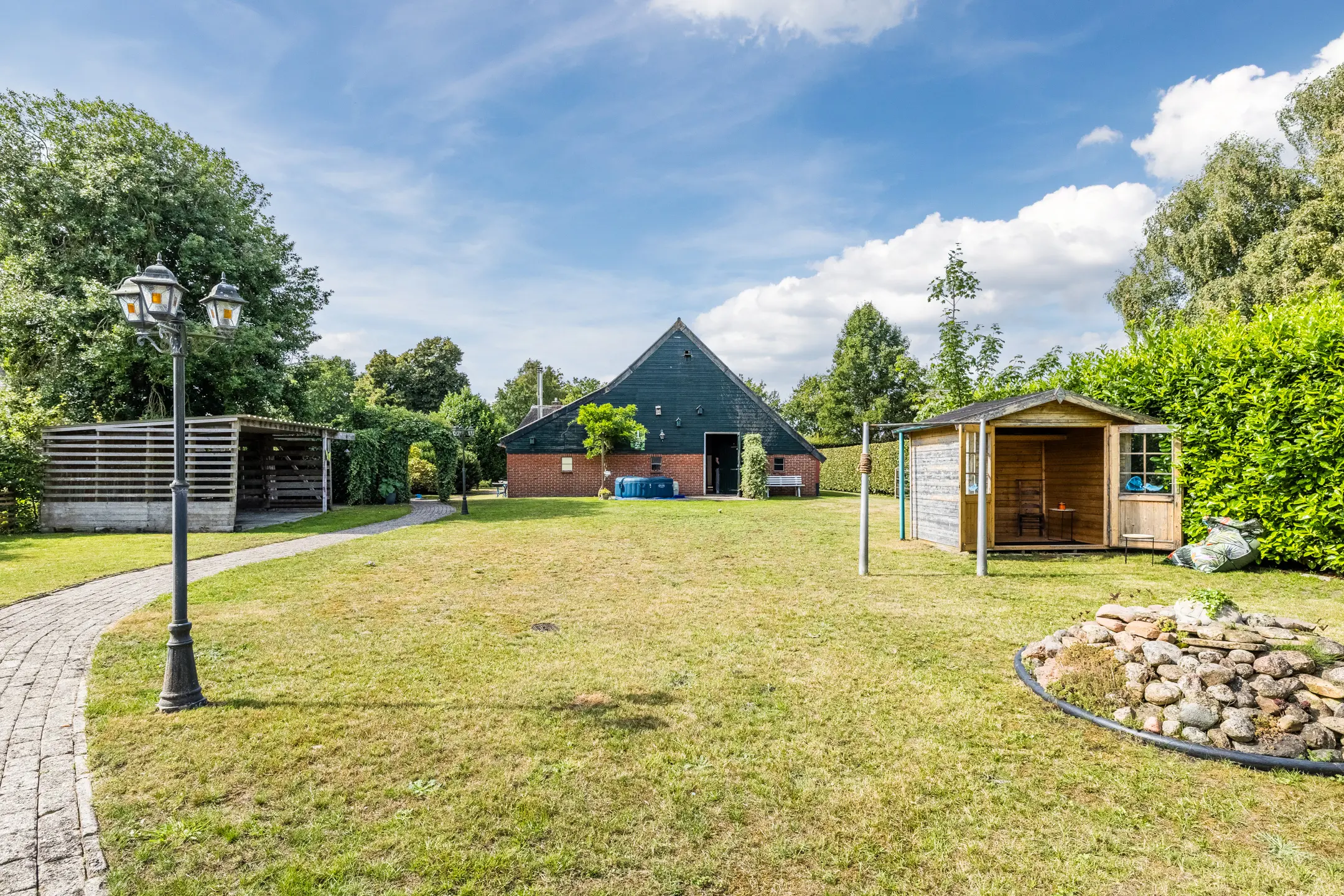 Op het erf staat een vrijstaande schuur van circa 190 m², praktisch begaanbaar door de grote baander deuren, wat enorm veel mogelijkheden biedt, denk aan opslag (grote aanwezige zolder), stalling, garage, extra studio (inwonende kinderen) etc. De schuur is in 2023 voorzien van een volledig vernieuwde elektrische installatie en herbergt tevens een wellnessruimte met o.a. douche, toilet, sauna, dompelbad en een doorgang naar buiten voor extra afkoeling onder de nevel douche. Een volledige privacy plek die uitnodigt om geheel tot ontspanning te komen!