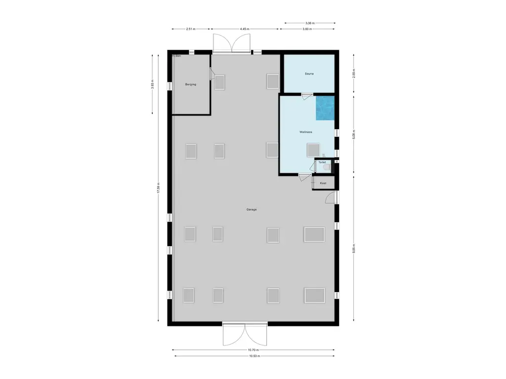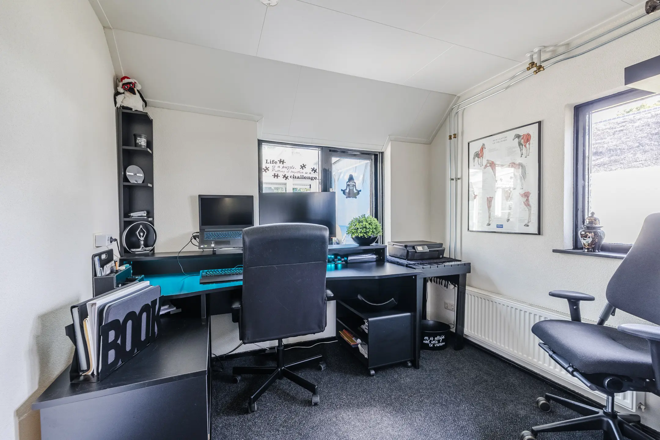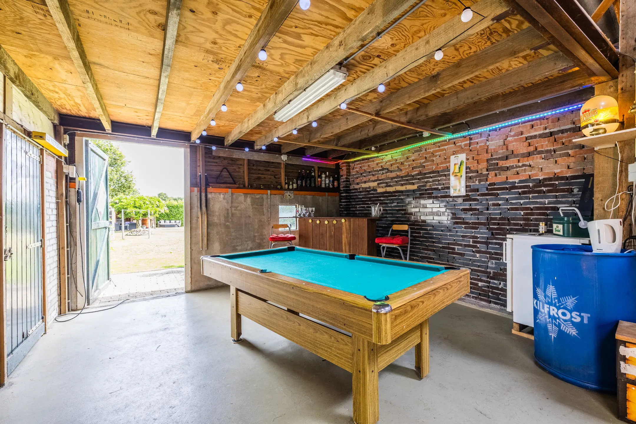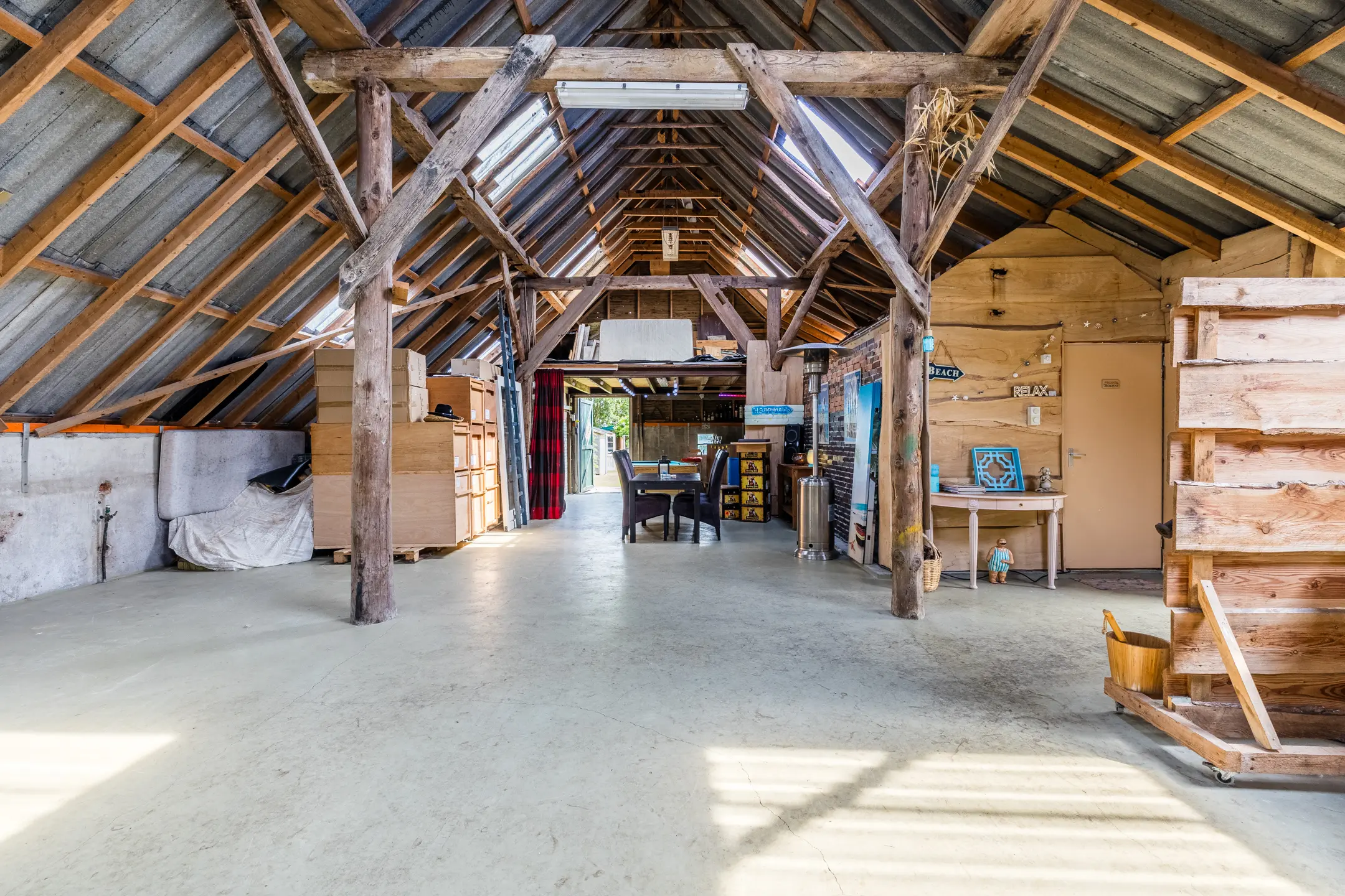 Op het erf staat een vrijstaande schuur van circa 190 m², praktisch begaanbaar door de grote baander deuren, wat enorm veel mogelijkheden biedt, denk aan opslag (grote aanwezige zolder), stalling, garage, extra studio (inwonende kinderen) etc. De schuur is in 2023 voorzien van een volledig vernieuwde elektrische installatie en herbergt tevens een wellnessruimte met o.a. douche, toilet, sauna, dompelbad en een doorgang naar buiten voor extra afkoeling onder de nevel douche. Een volledige privacy plek die uitnodigt om geheel tot ontspanning te komen!
