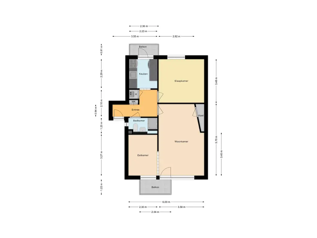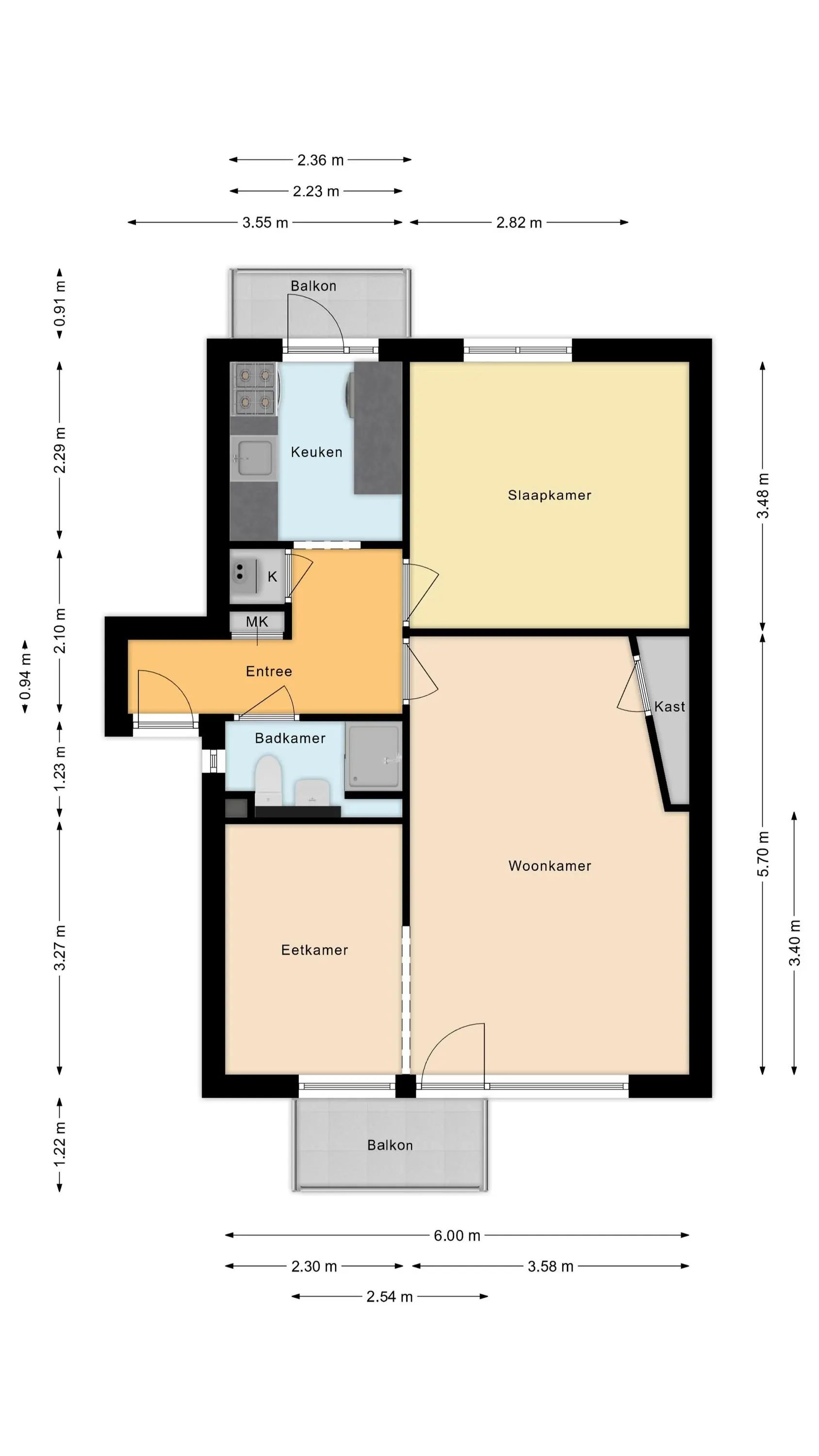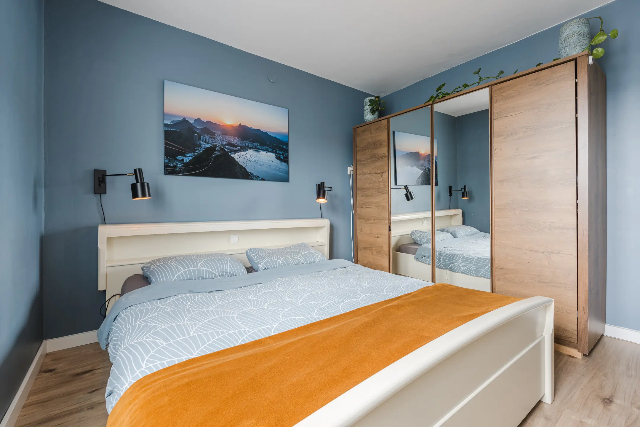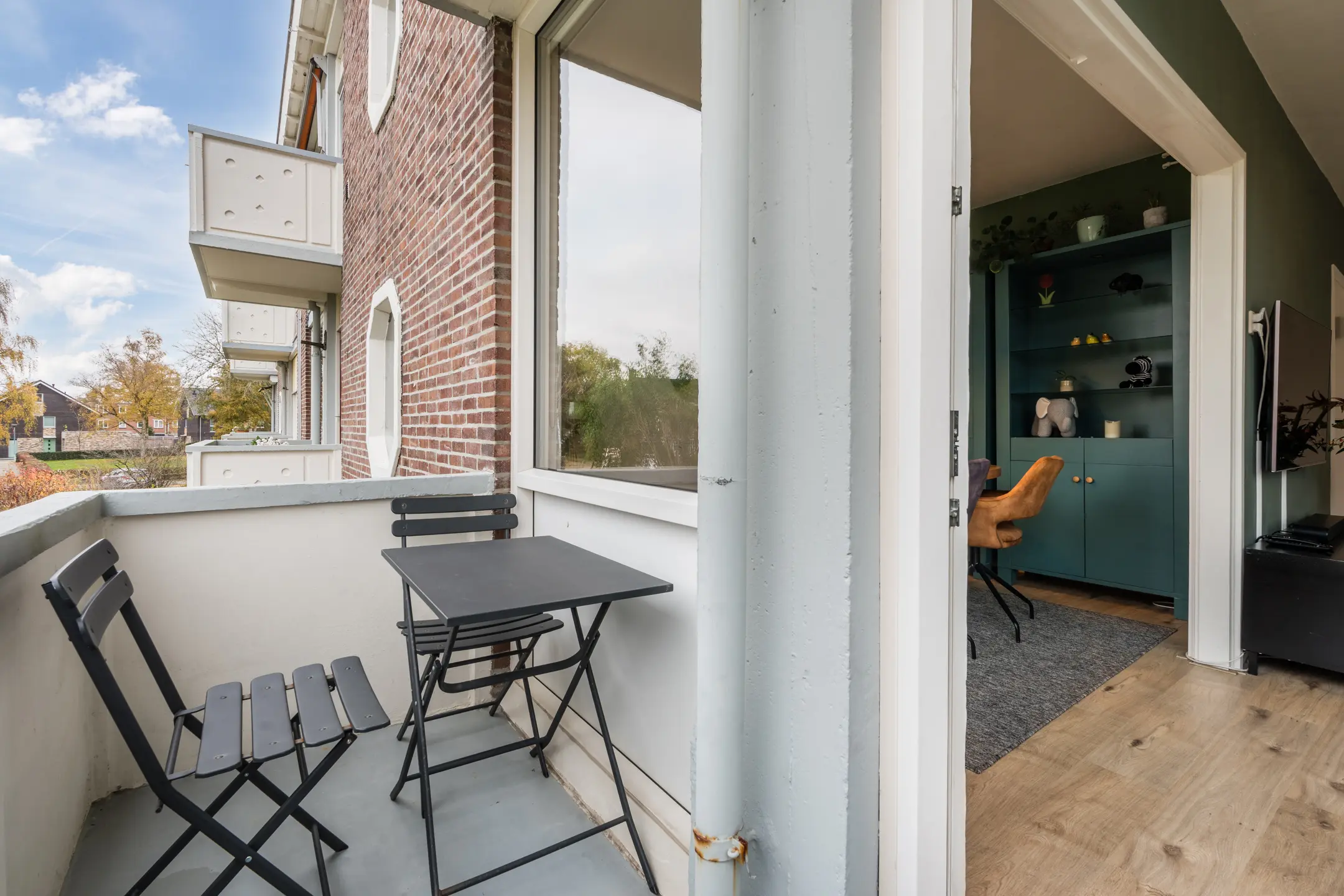 Entree, gang, badkamer met douche, toilet en wastafel, parkgerichte lichte woonkamer met balkon, grote master bedroom en dichte keuken met toegang tot het tweede balkon. Oorspronkelijk had de woning twee slaapkamers; één slaapkamer is bij de woonkamer gevoegd waardoor een zeer ruime leefruimte is ontstaan met plaats voor zowel een eethoek als een zithoek. Indien gewenst kan de tweede slaapkamer eenvoudig worden teruggebracht. Aan de achterzijde bevindt zich een balkon op het noordoosten, ideaal om rustig te starten in de ochtend. Aan de voorzijde ligt het zonnige balkon op het zuidwesten, waar je vrijwel de hele dag van de zon kunt genieten. Aan de achterzijde van het complex bevindt zich een stenen fietsenberging.