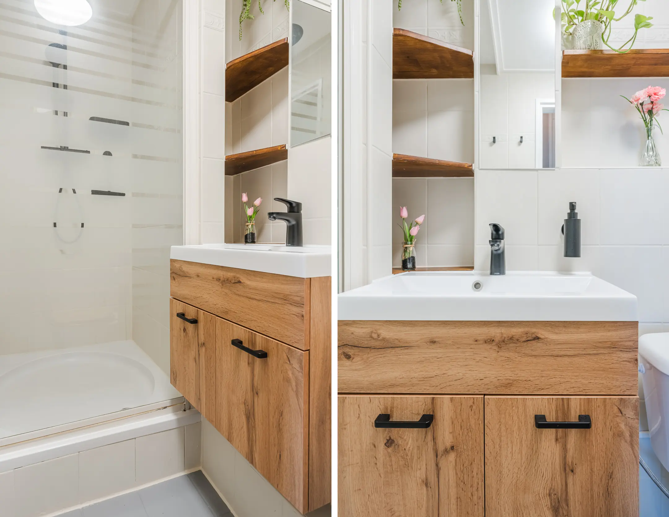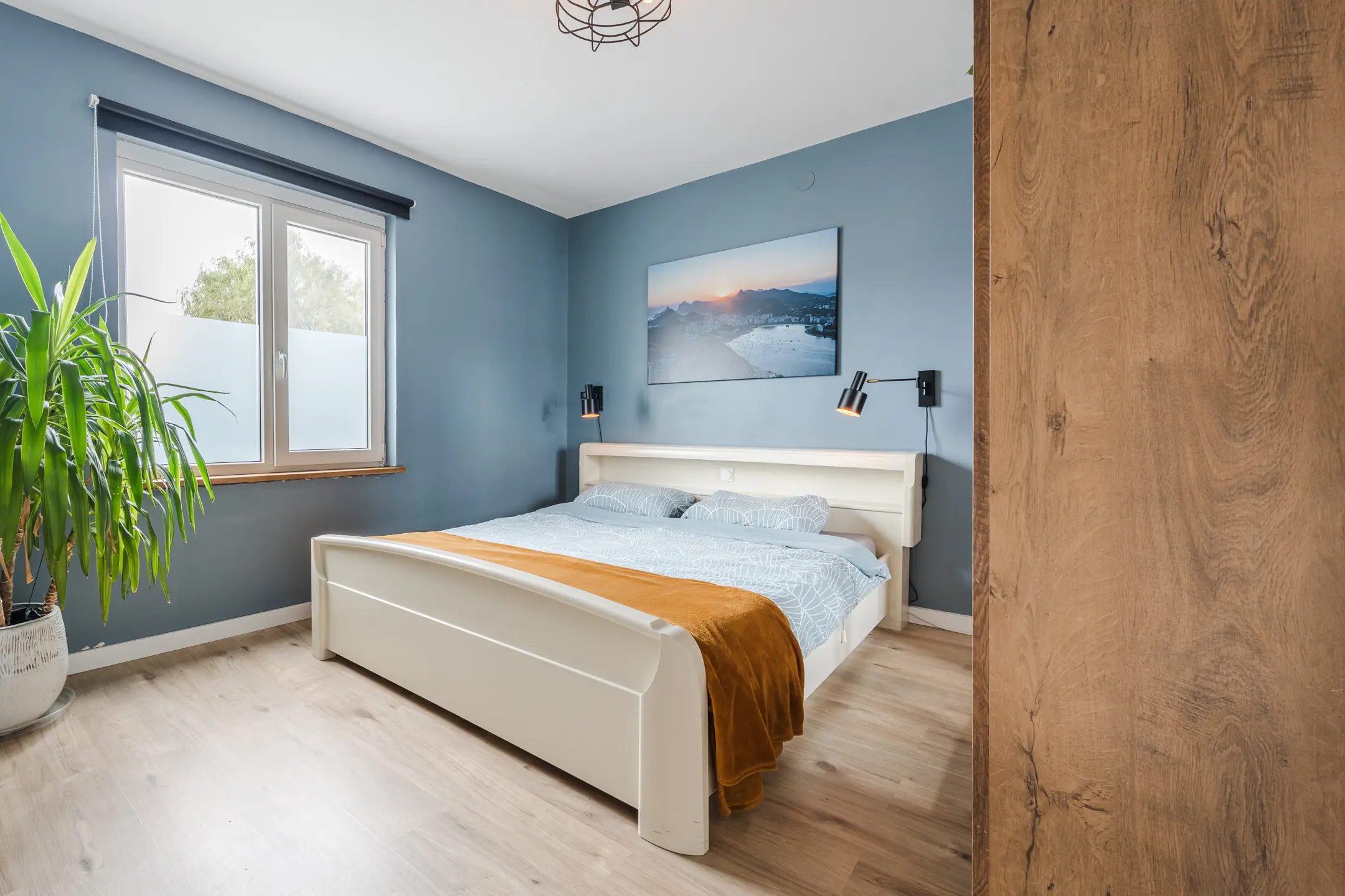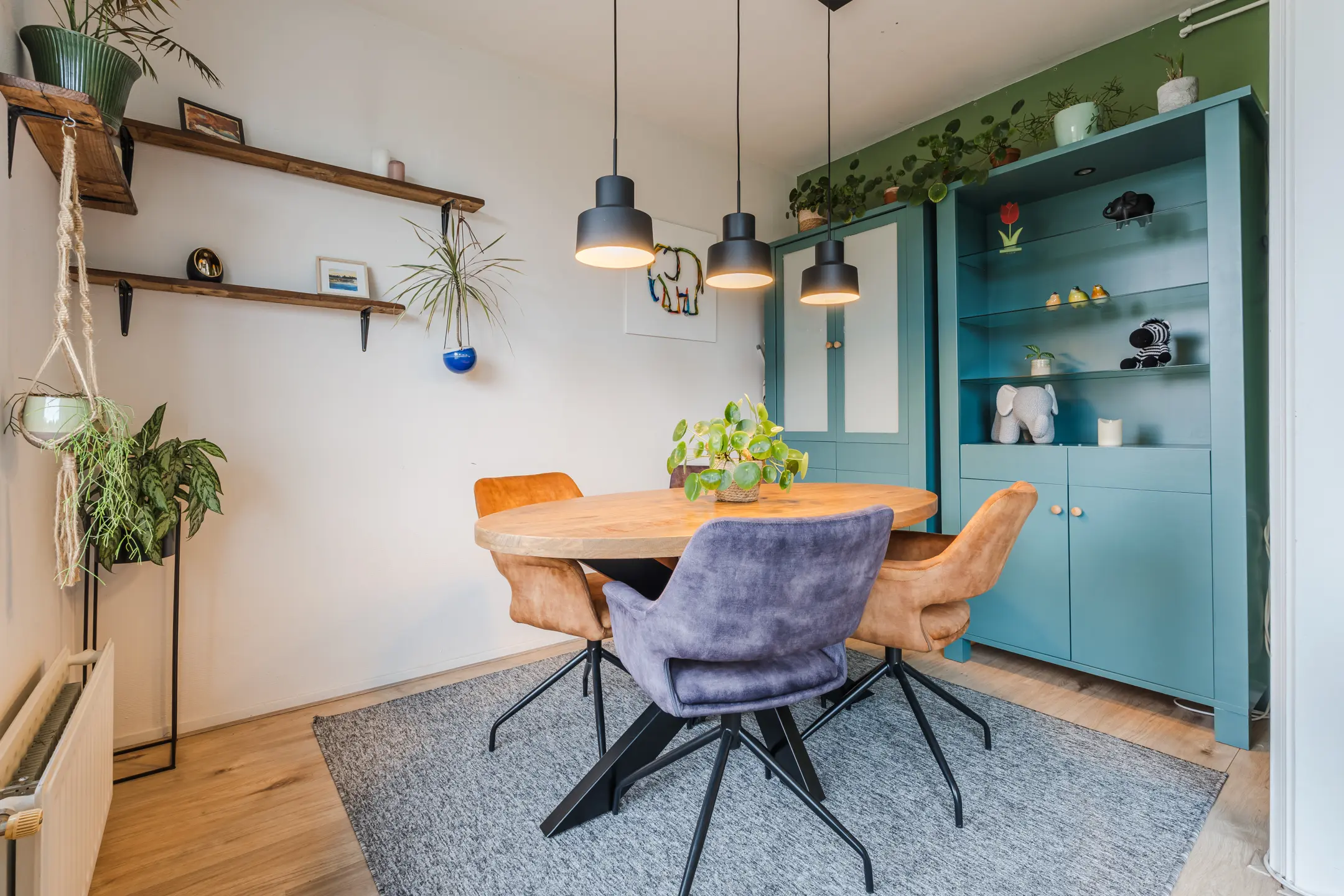 - Woonkamer voorzien van lichte laminaatvloer en vaste kast