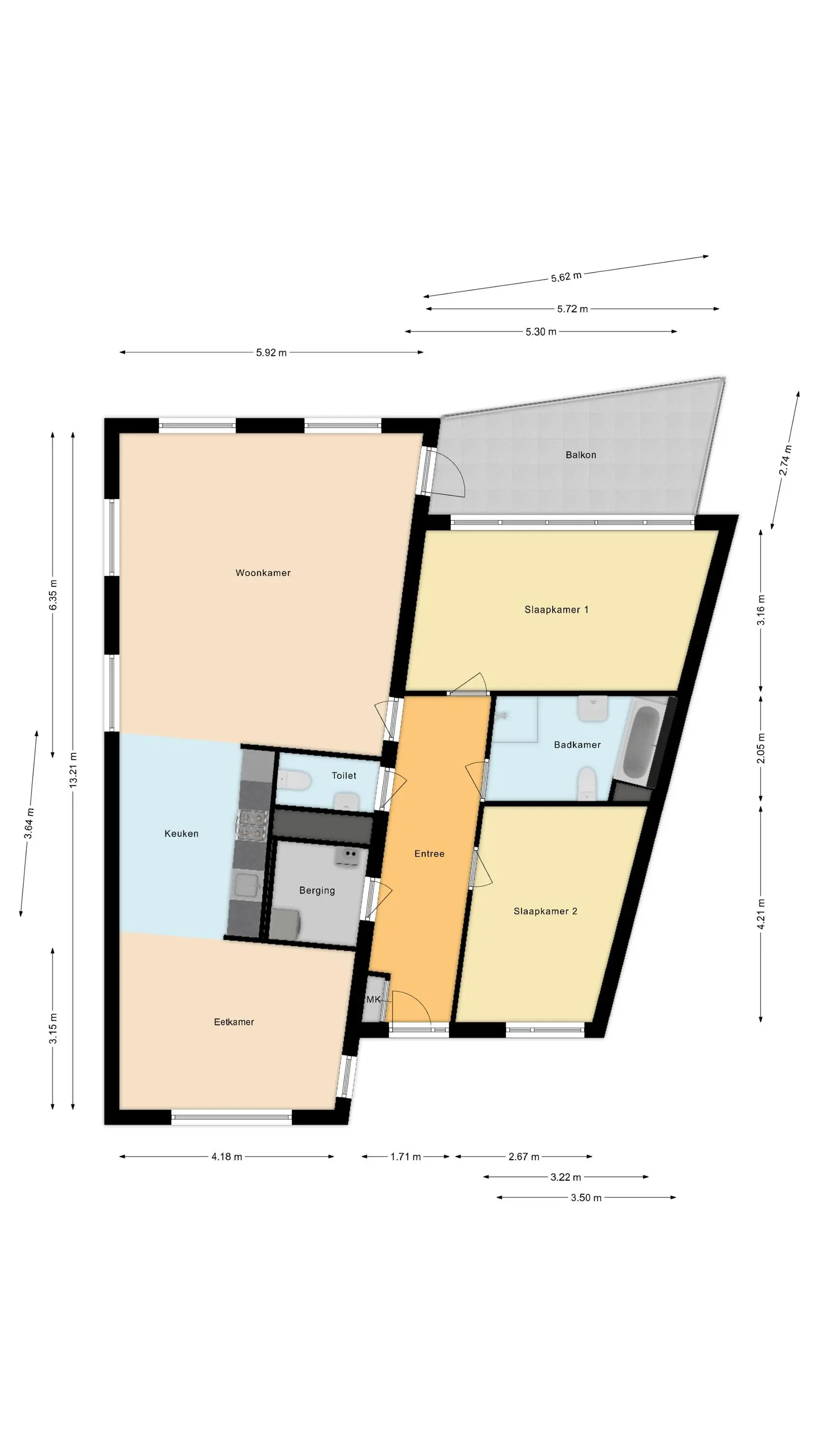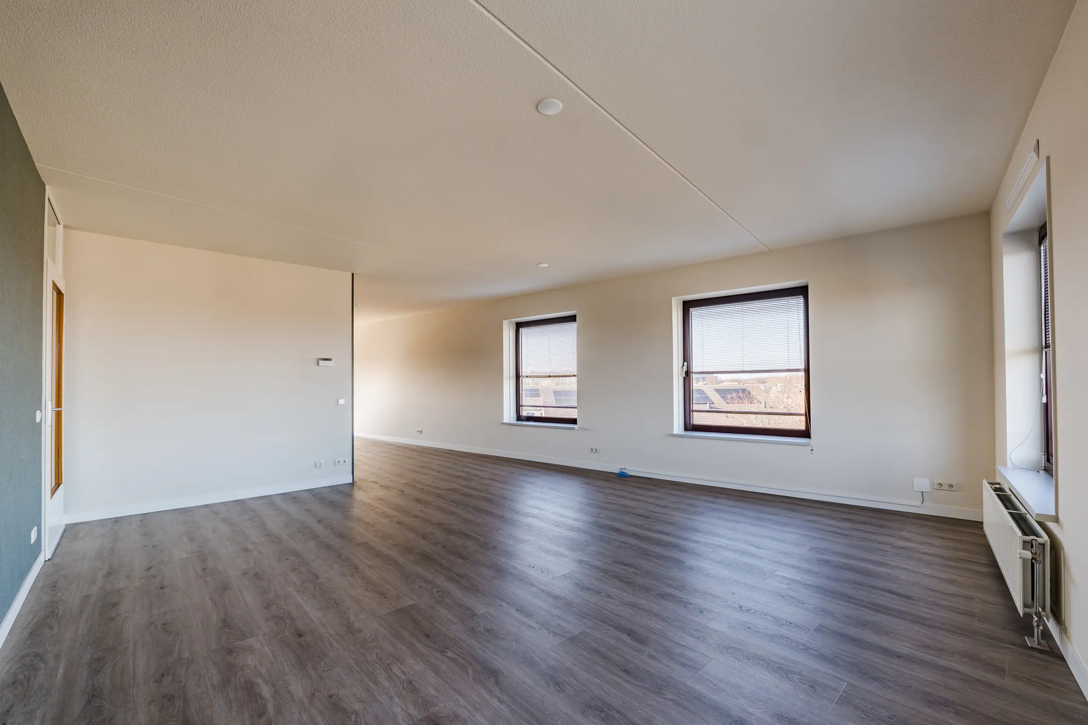 Via de entree komt u in de hal met meterkast, modern toilet met fontein en een ruime bijkeuken/berging met witgoedaansluitingen en de eigen cv-ketel. De royale woonkamer van circa 33 m² valt direct op door de vele raampartijen die zorgen voor een prettige lichtinval en fraaie zichtlijnen. Vanuit de woonkamer is het ruime balkon van circa 13 m² bereikbaar, waar u heerlijk buiten kunt zitten. De open keuken, centraal in het appartement geplaatst, is voorzien van diverse inbouwapparatuur waaronder een gaskookplaat met afzuigkap, vaatwasser, oven en koel-/vriescombinatie. Daarnaast beschikt het appartement over een aparte eetkamer van circa 13 m², die ook uitstekend gebruikt kan worden als werk-, hobby- of studeerkamer. Via de hal zijn tevens de twee slaapkamers van circa 17 m² en 11 m² bereikbaar. De complete badkamer is uitgerust met een douche, ligbad, wastafel met meubel en een tweede toilet.