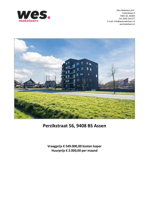 - Huurprijs: € 2.000,- per maand inclusief parkeerplaats