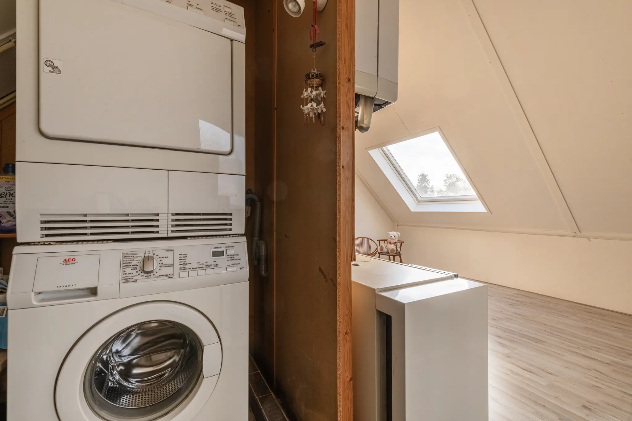 - Zolderverdieping met witgoedaansluitingen en installaties