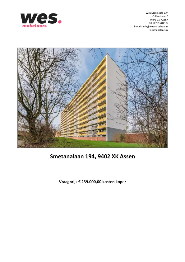 Aan de Smetanalaan 194 wordt dit lichte en verrassend ruime 4-kamer appartement aangeboden. De woning beschikt over circa 98 m² woonoppervlakte, een royale woonkamer, drie slaapkamers en een fijn balkon. Een comfortabel appartement op een praktische locatie, ideaal voor wie ruim wil wonen met alle voorzieningen binnen handbereik.