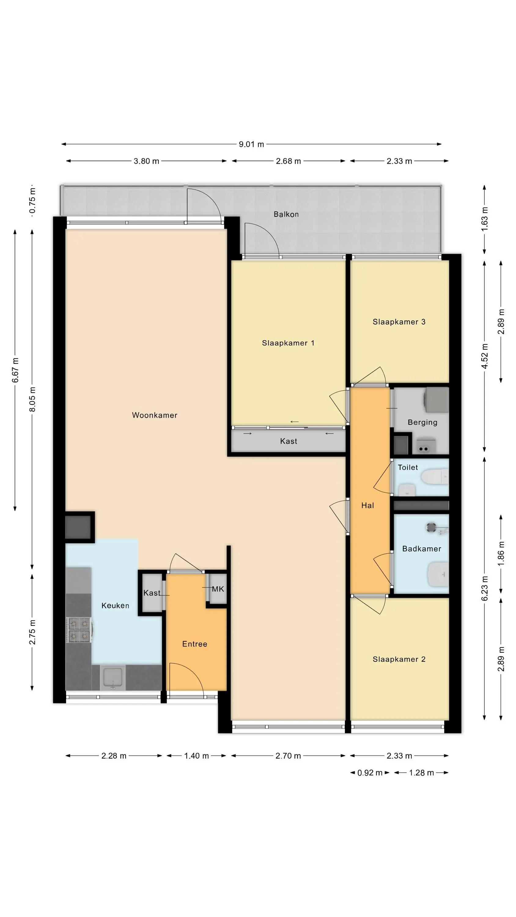 - Drie slaapkamers