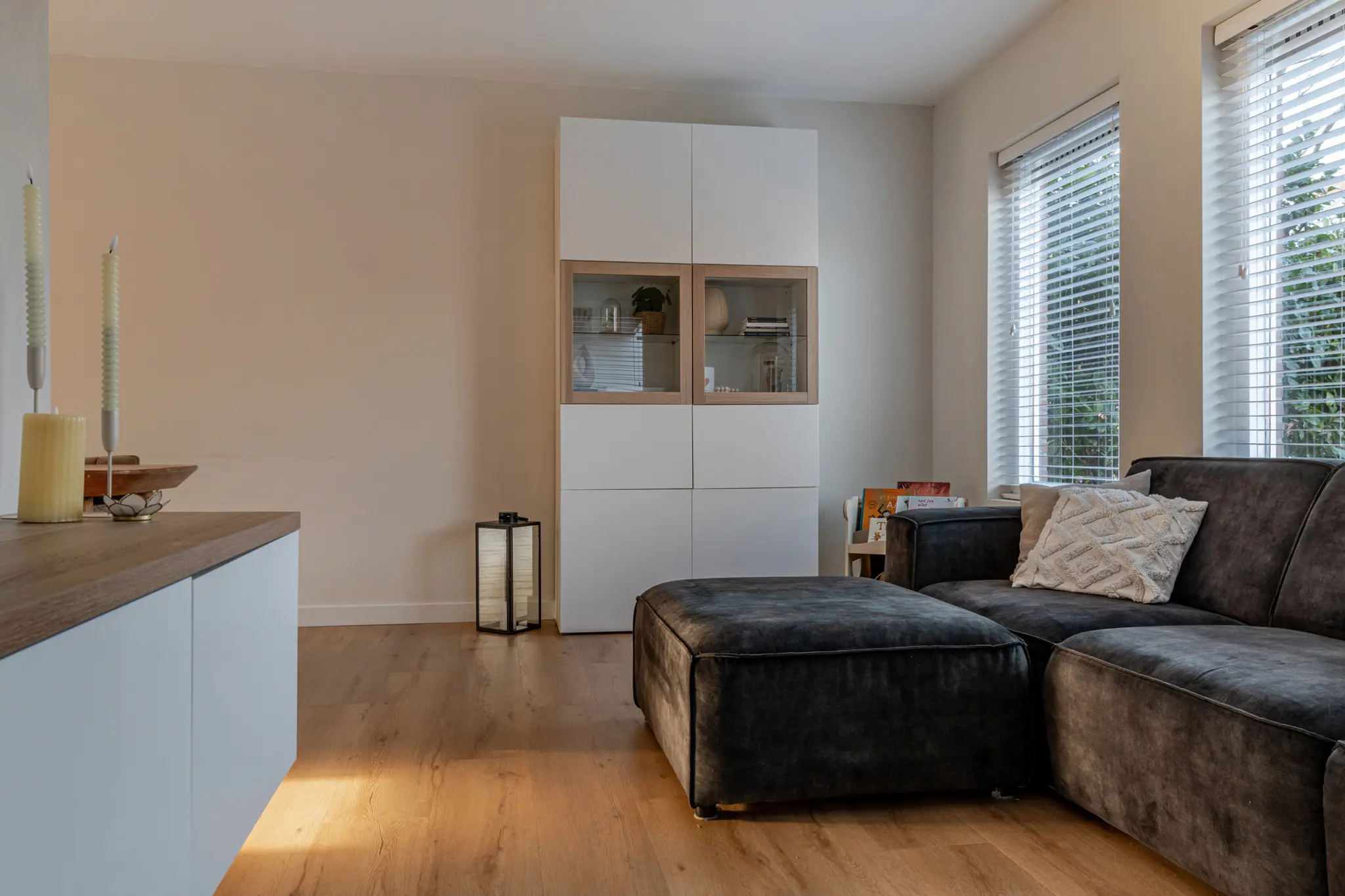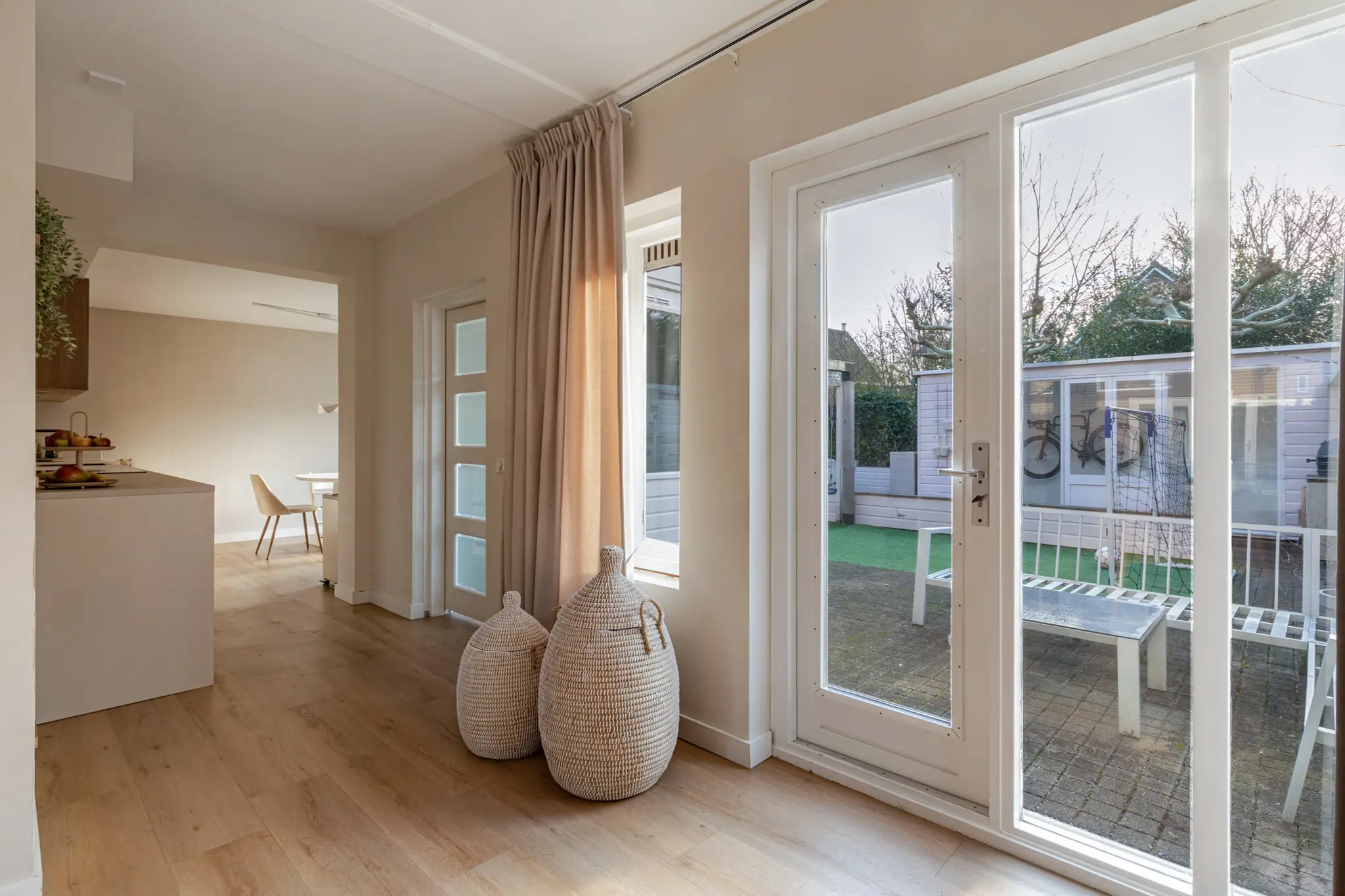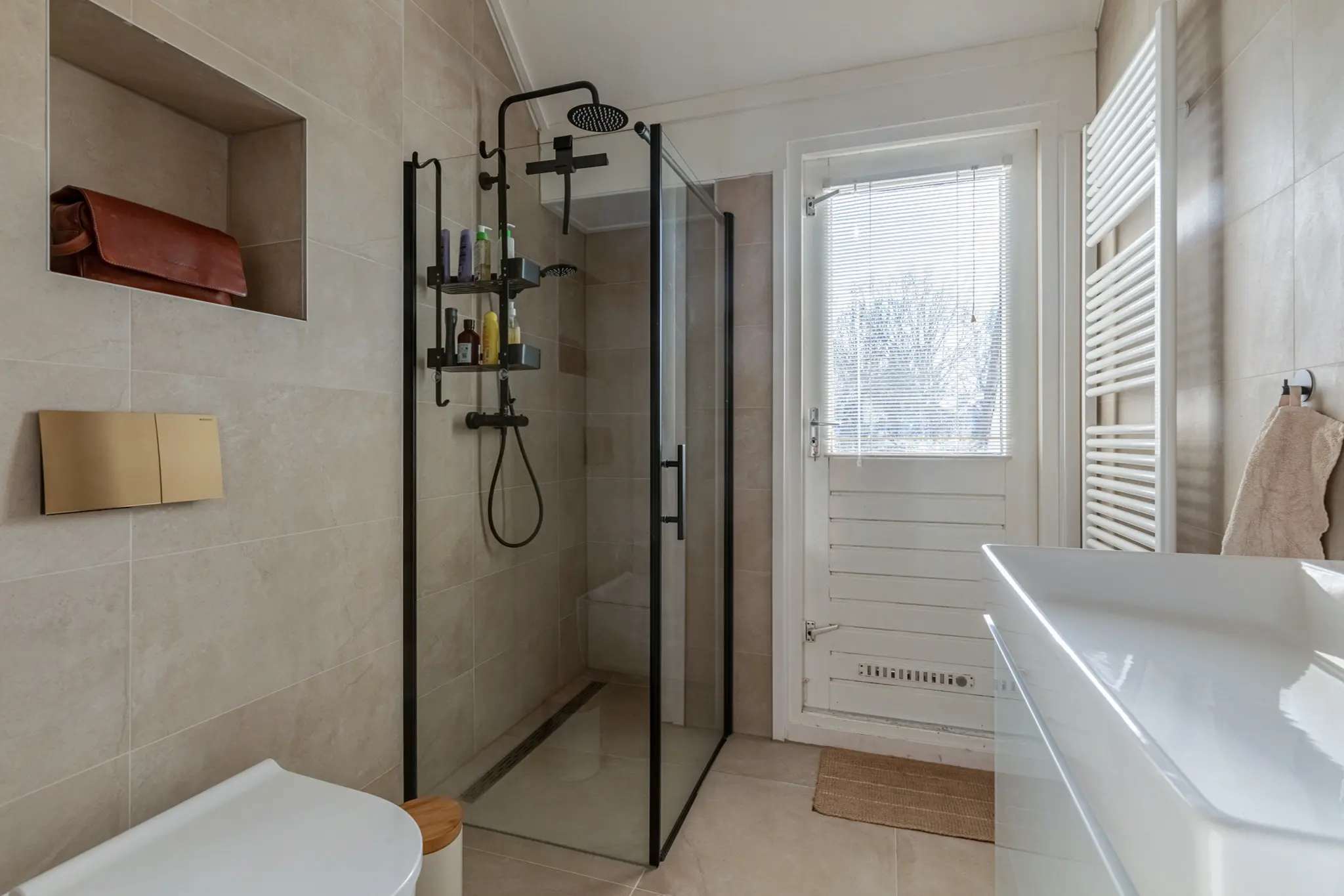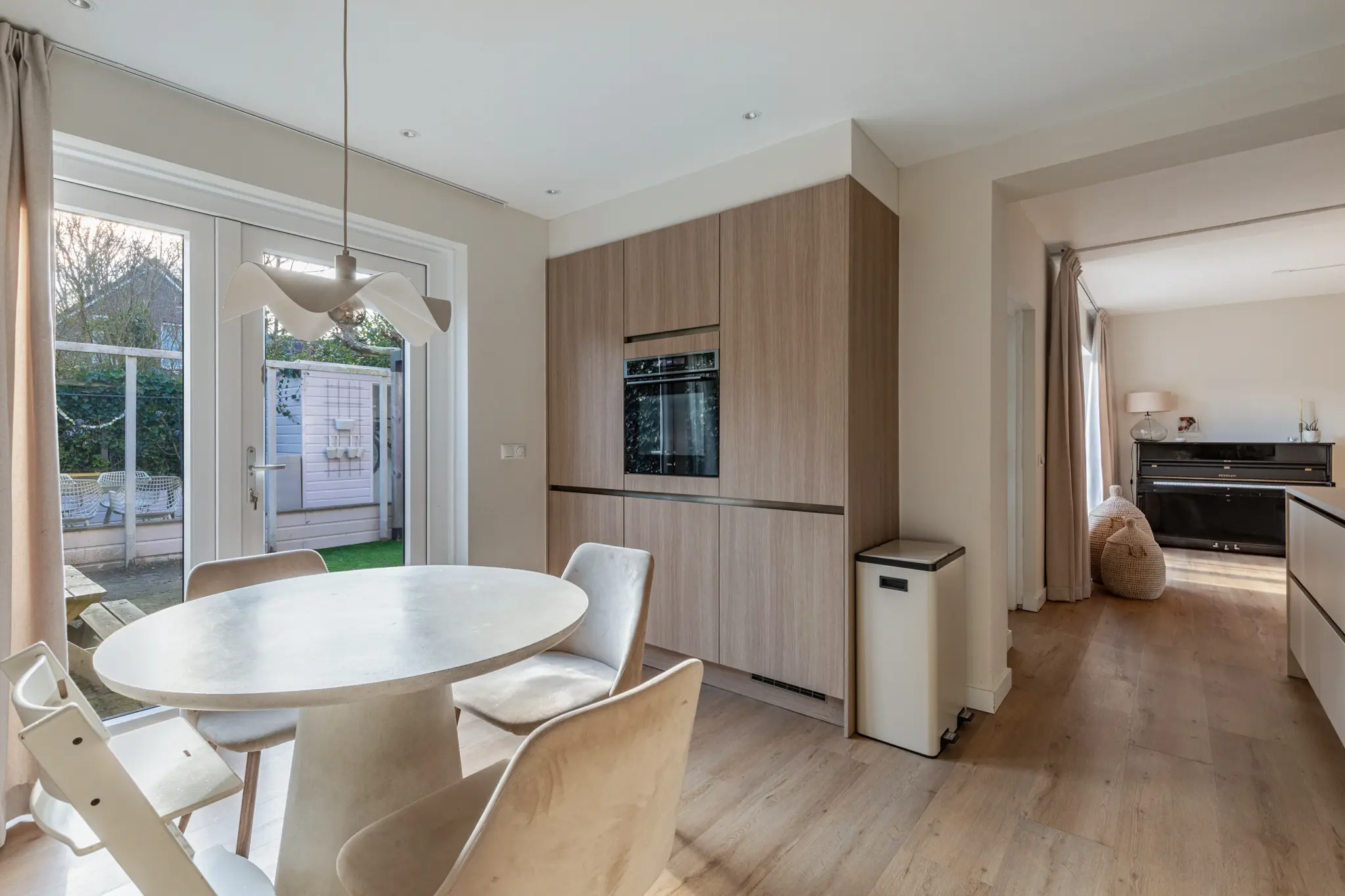 Daarnaast is de keuken voorzien van nieuwe openslaande deuren, die zorgen voor veel lichtinval en een directe verbinding met de tuin. Grenzend aan de keuken bevindt zich de bijkeuken met witgoedaansluitingen en een deur naar de tuin; een praktische en fijne extra ruimte. De gehele begane grond is verder uitgerust met vloerverwarming, wat in combinatie met de Tonzon luchtzakken (vloerisolatie, 2024) zorgt voor een aangenaam en energiezuinig wooncomfort.