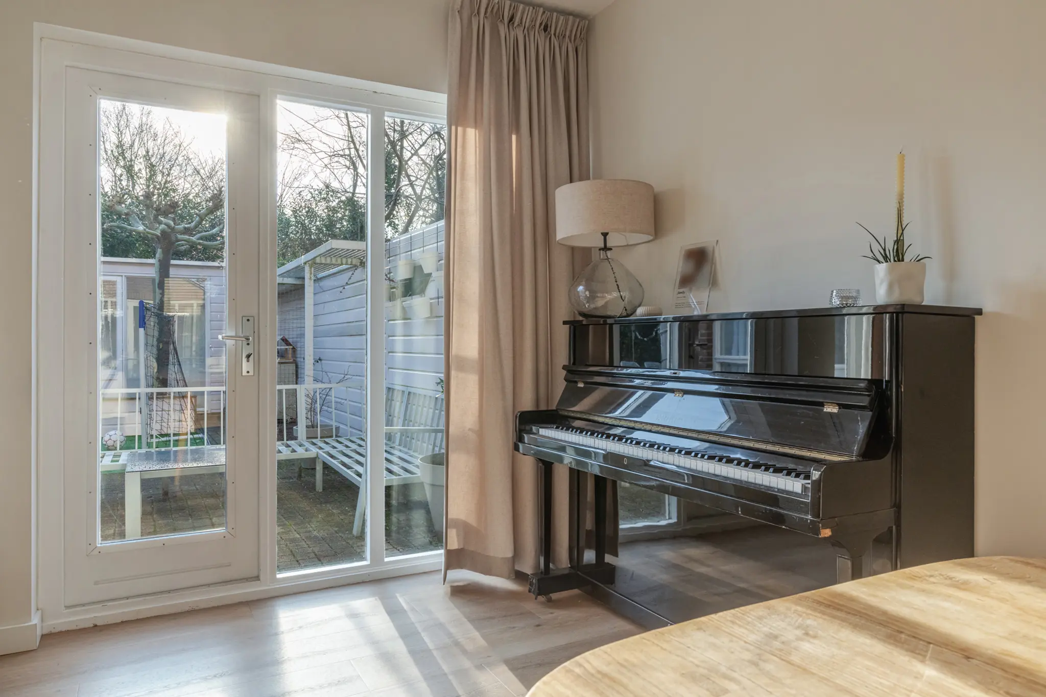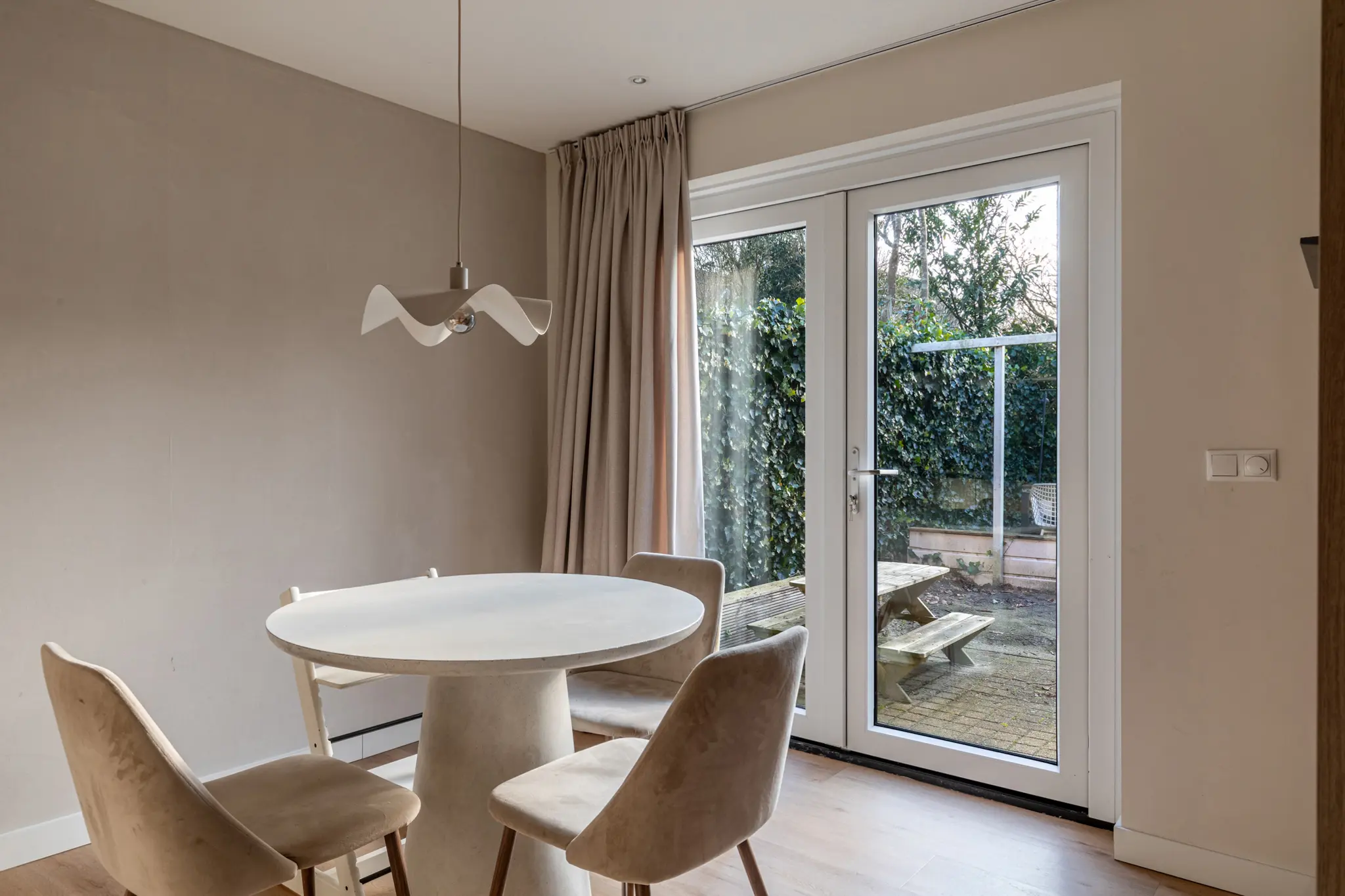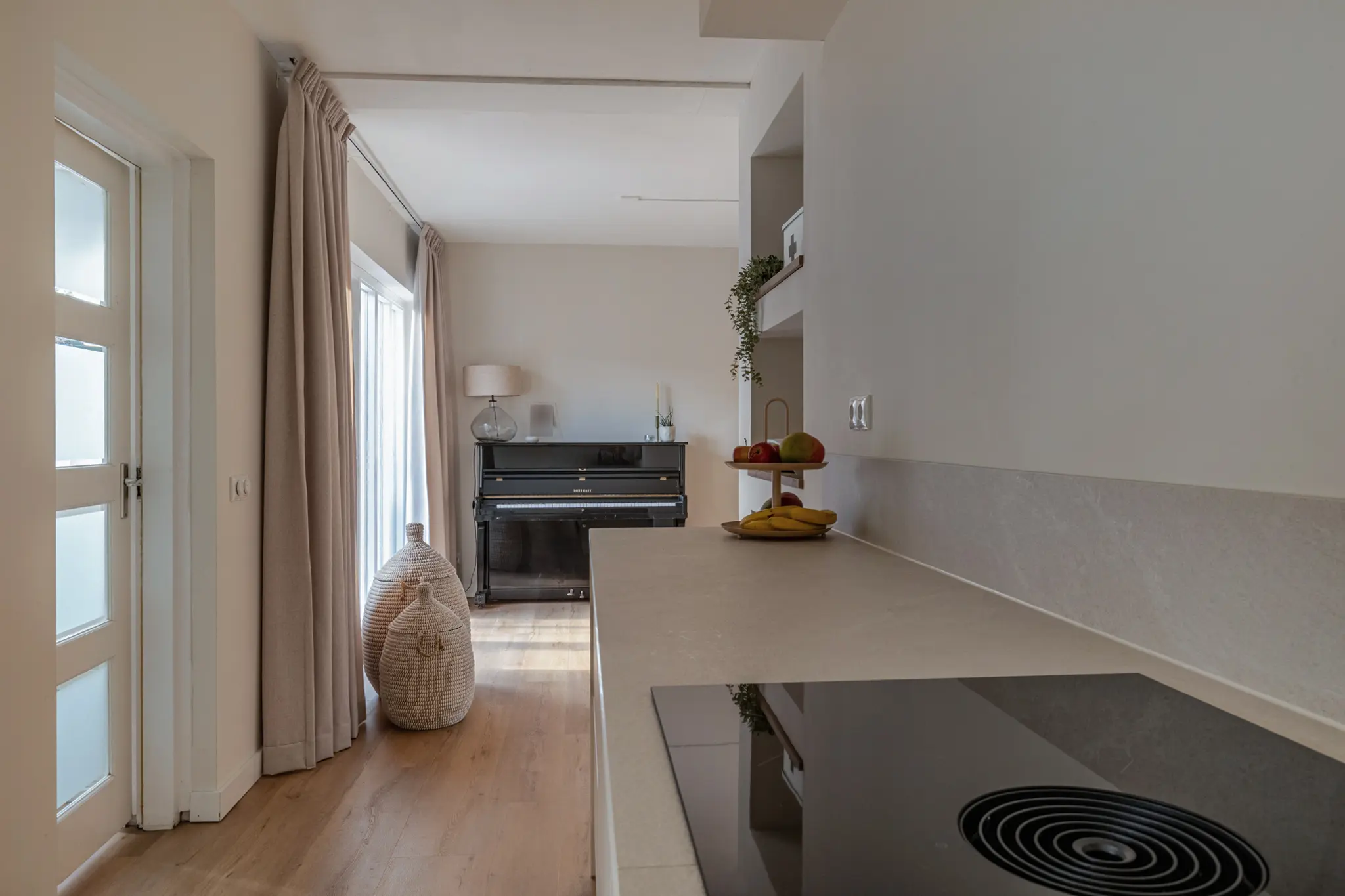 Daarnaast is de keuken voorzien van nieuwe openslaande deuren, die zorgen voor veel lichtinval en een directe verbinding met de tuin. Grenzend aan de keuken bevindt zich de bijkeuken met witgoedaansluitingen en een deur naar de tuin; een praktische en fijne extra ruimte. De gehele begane grond is verder uitgerust met vloerverwarming, wat in combinatie met de Tonzon luchtzakken (vloerisolatie, 2024) zorgt voor een aangenaam en energiezuinig wooncomfort.