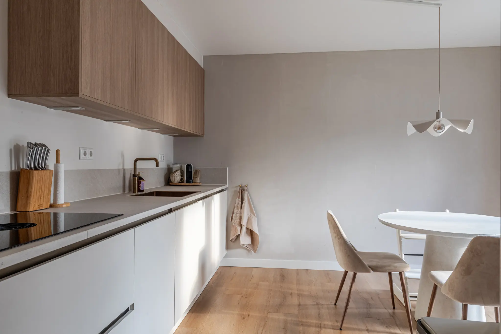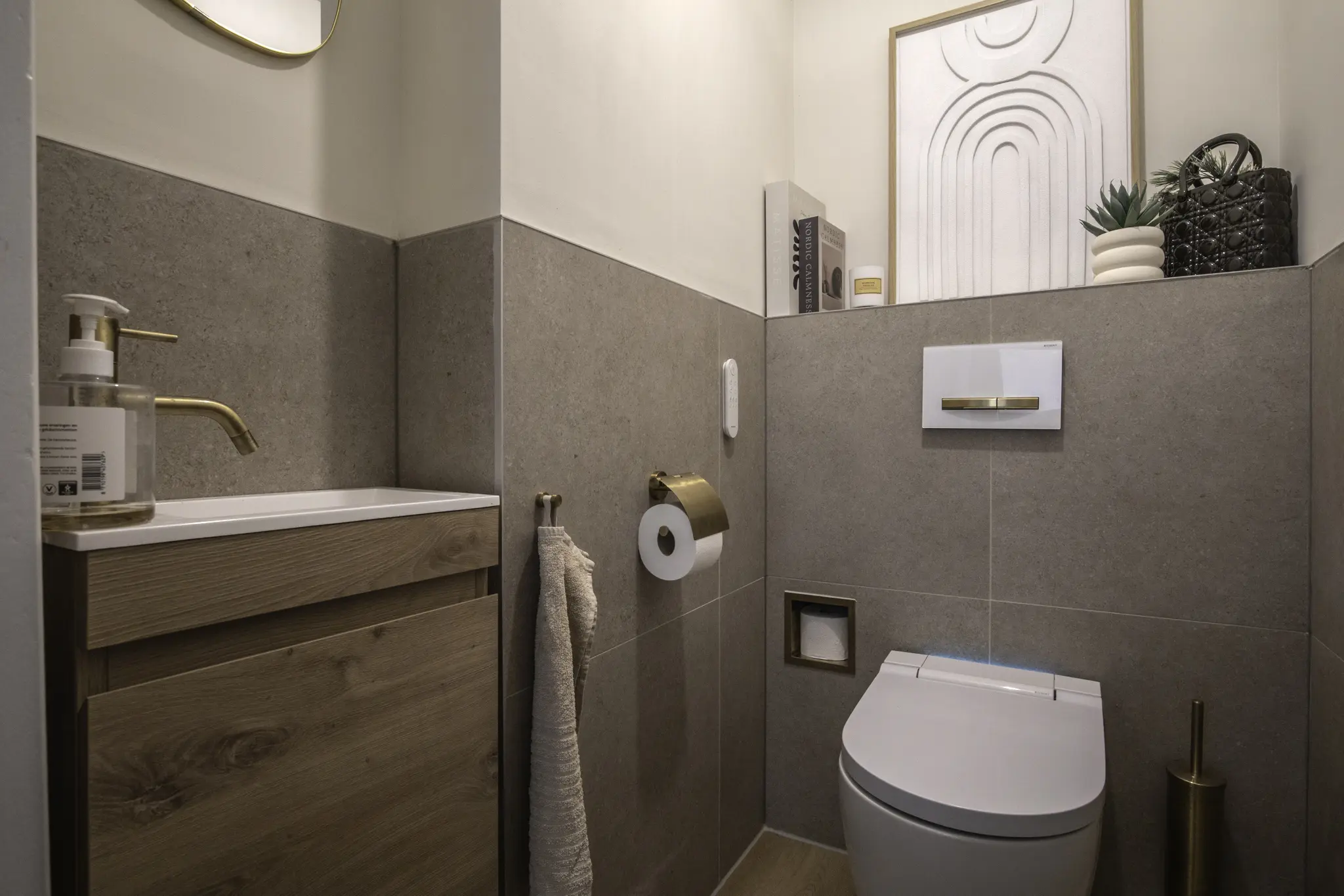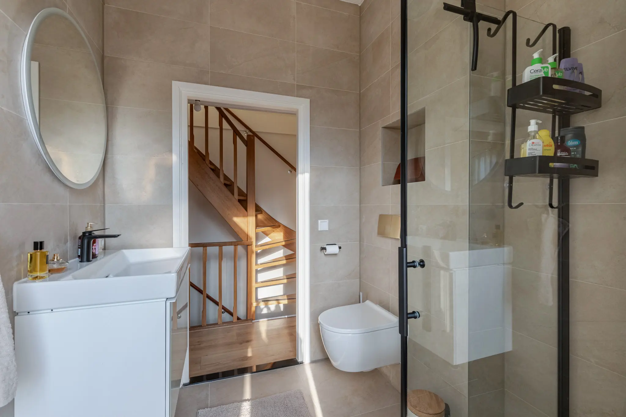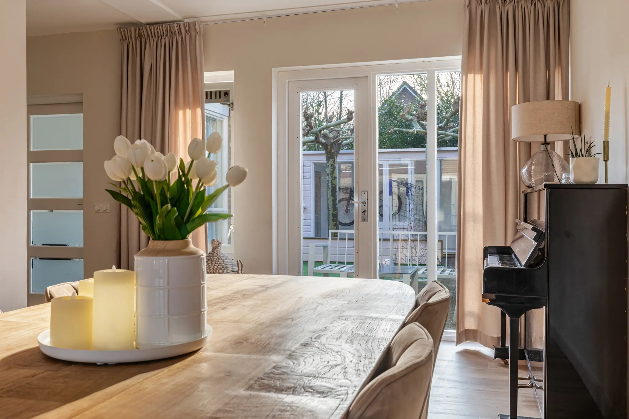 Daarnaast is de keuken voorzien van nieuwe openslaande deuren, die zorgen voor veel lichtinval en een directe verbinding met de tuin. Grenzend aan de keuken bevindt zich de bijkeuken met witgoedaansluitingen en een deur naar de tuin; een praktische en fijne extra ruimte. De gehele begane grond is verder uitgerust met vloerverwarming, wat in combinatie met de Tonzon luchtzakken (vloerisolatie, 2024) zorgt voor een aangenaam en energiezuinig wooncomfort.