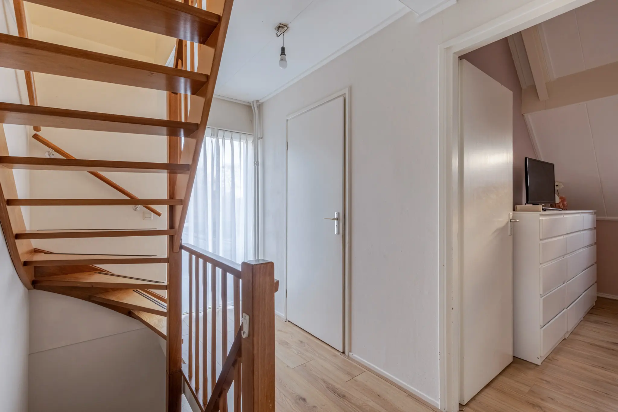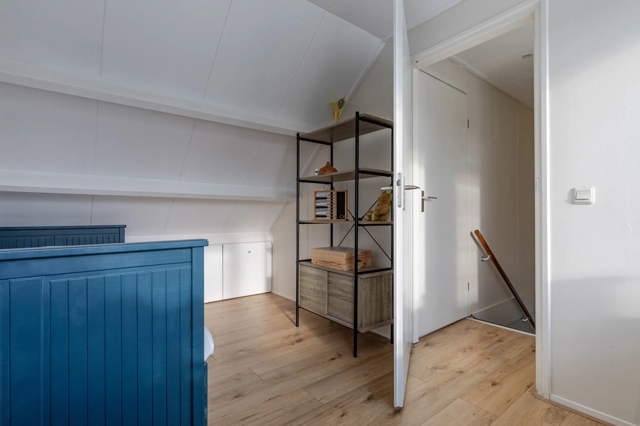 De tweede verdieping beschikt over een overloop met bergruimte en de c.v.-opstelling, evenals een vierde slaapkamer met daglicht. Achter de knieschotten is extra bergruimte aanwezig.