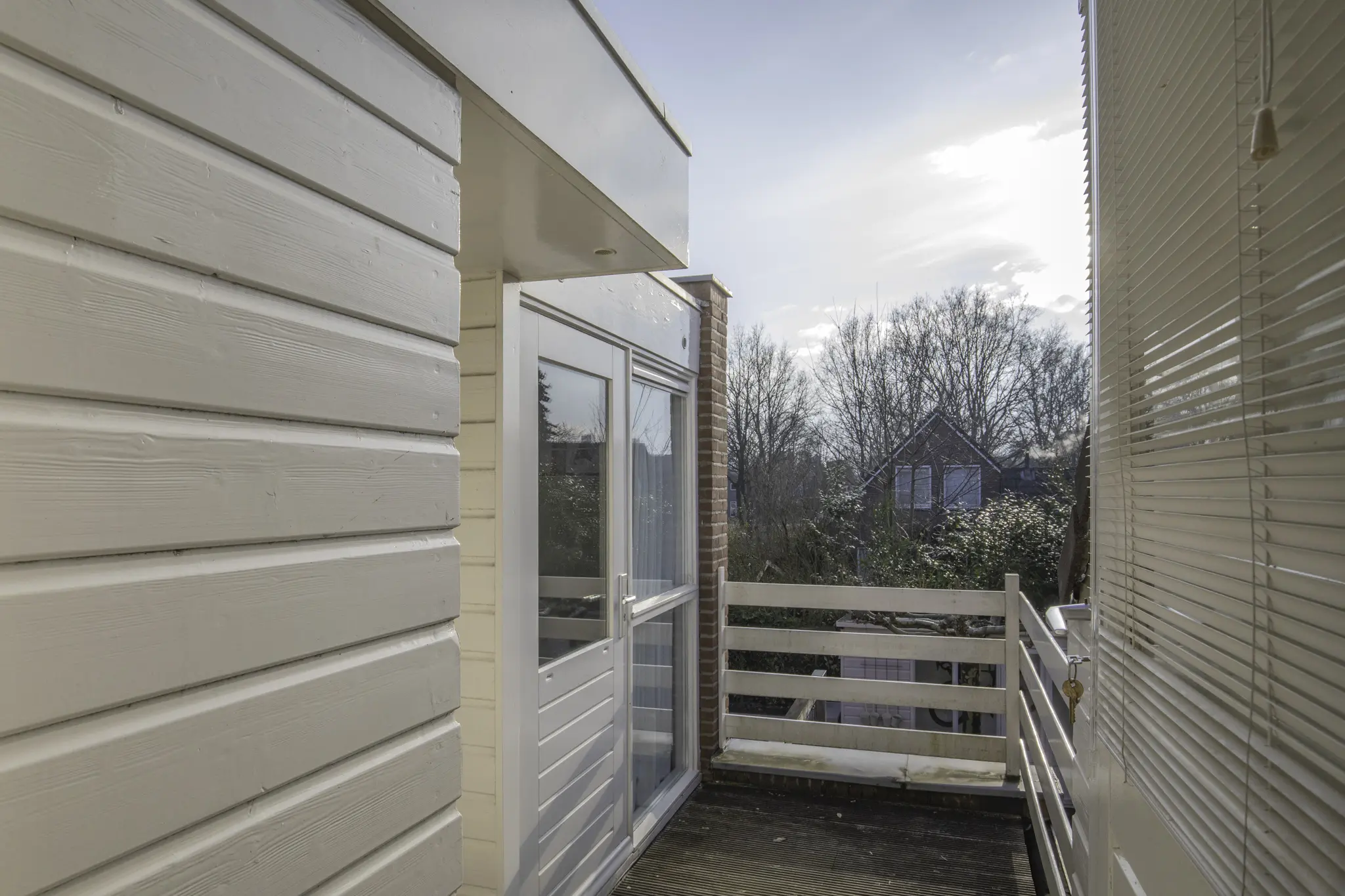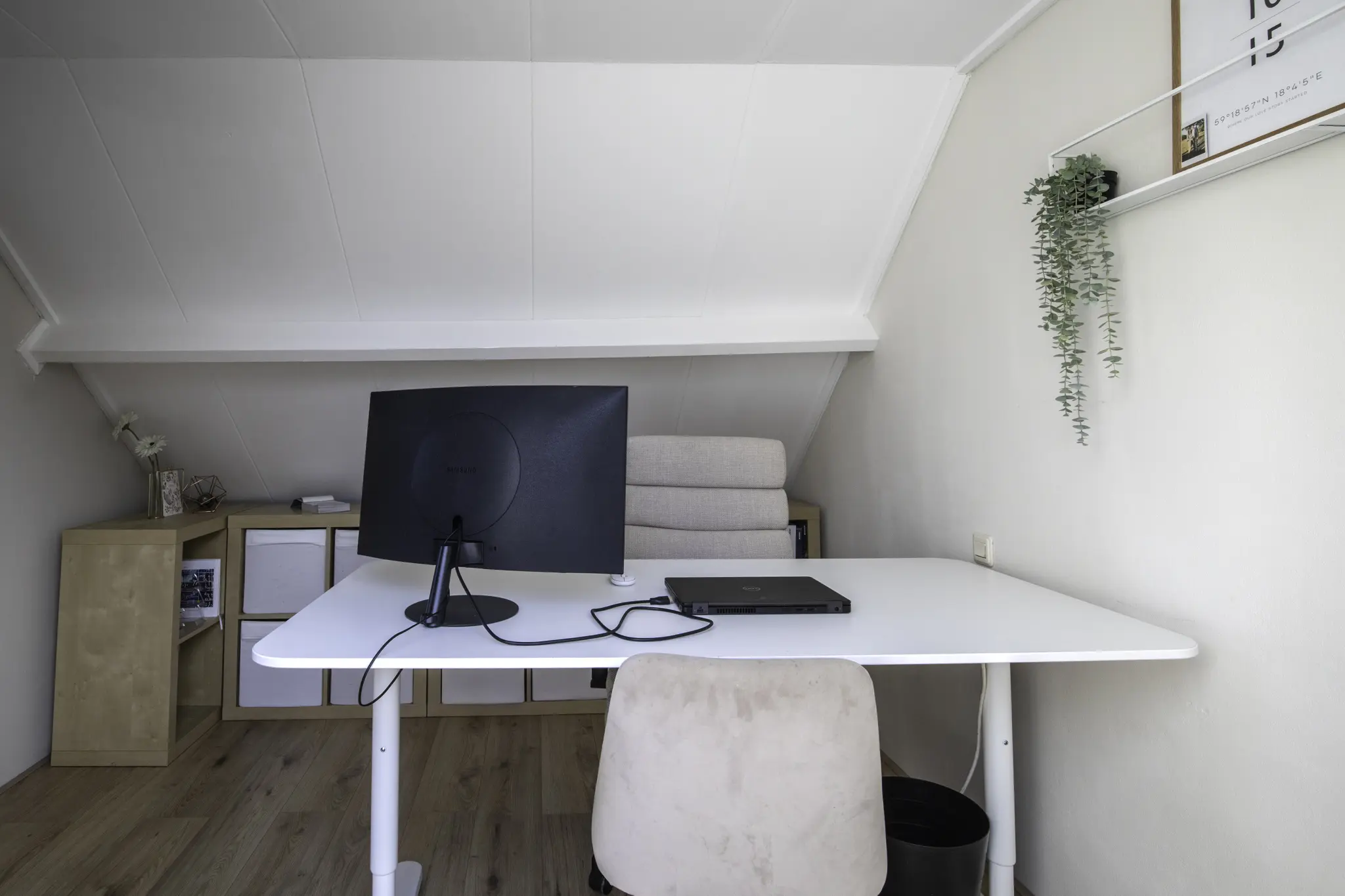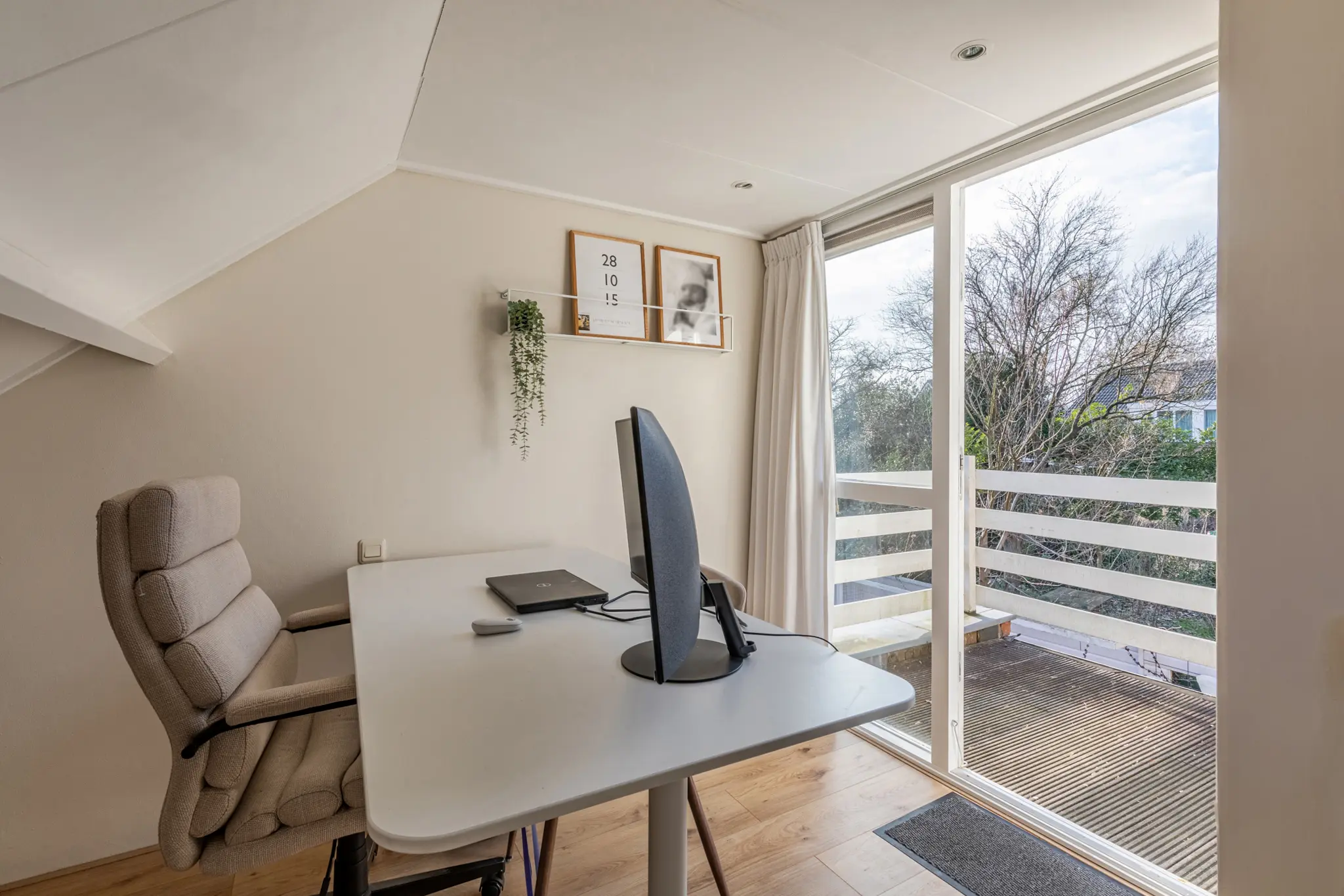 Via de overloop bereik je drie slaapkamers, allen van goed formaat. De badkamer is in 2025 volledig vernieuwd en modern uitgevoerd met een douche, wastafelmeubel en toilet. Vanuit de overloop is tevens het balkon bereikbaar. Via het balkon is het kantoor/werkkamer toegankelijk, ideaal voor thuiswerken of als speel- of hobbyruimte.