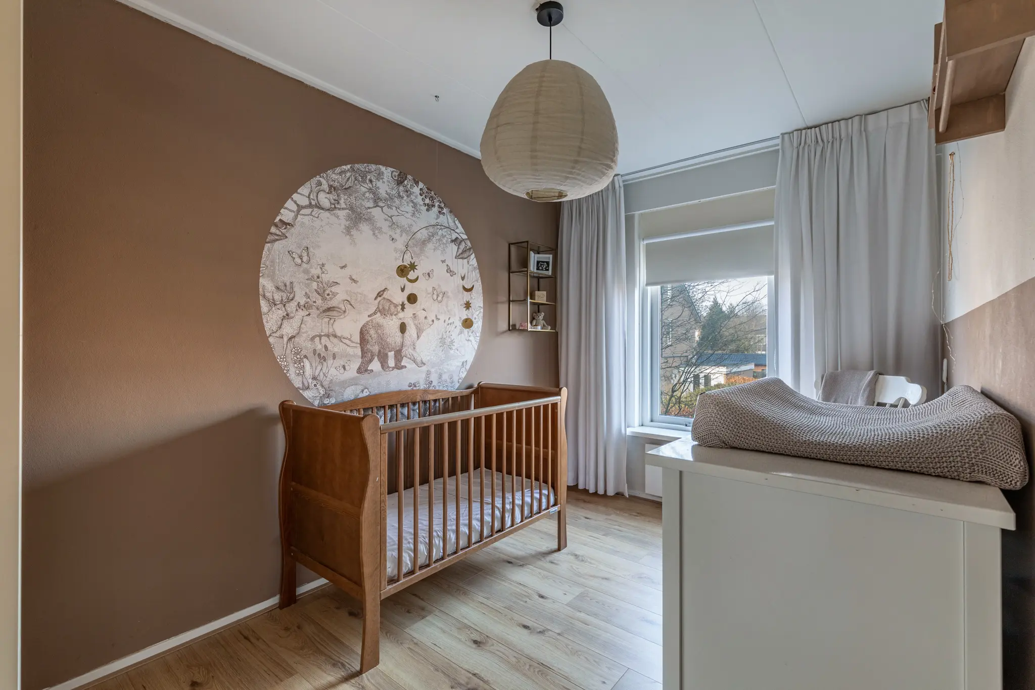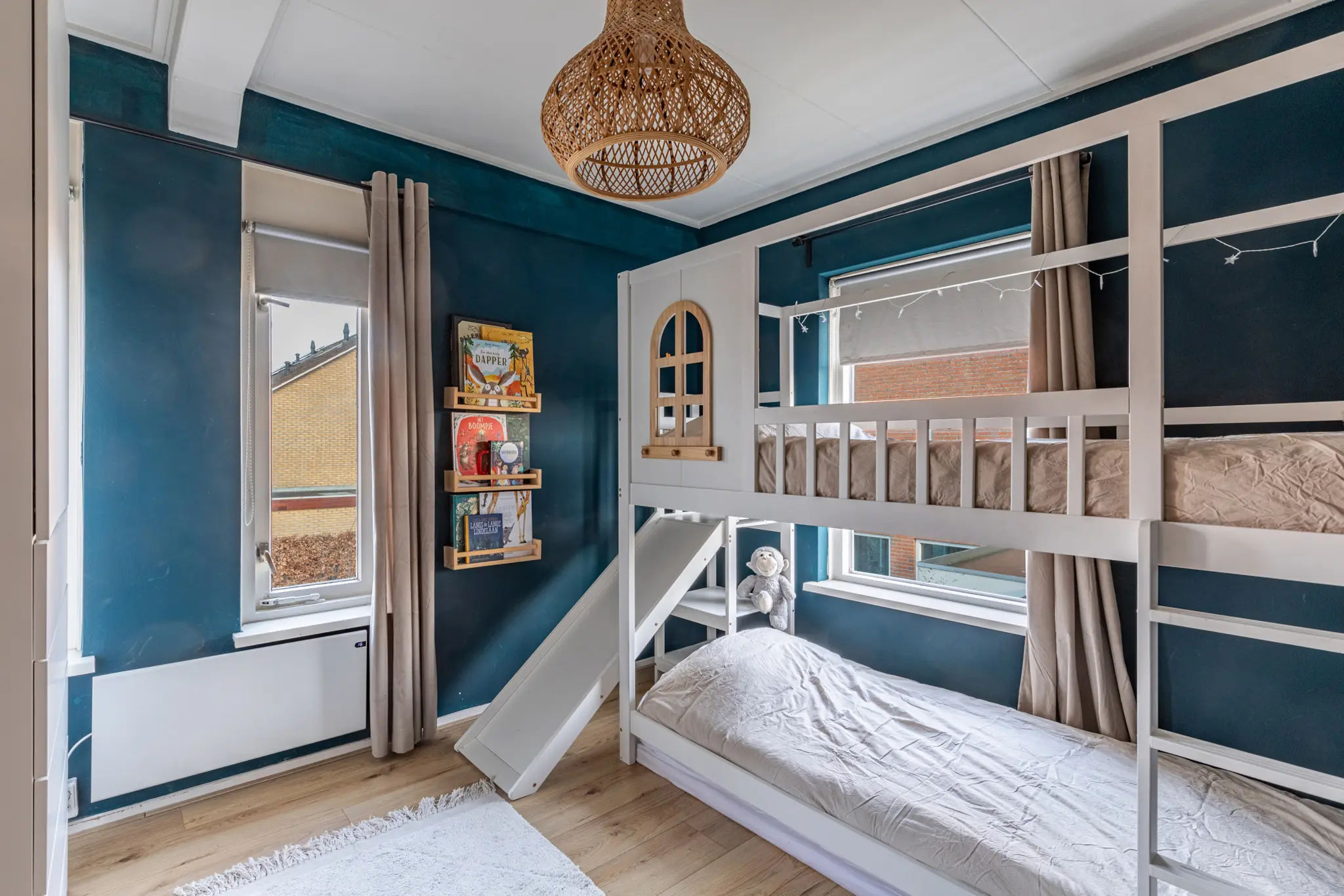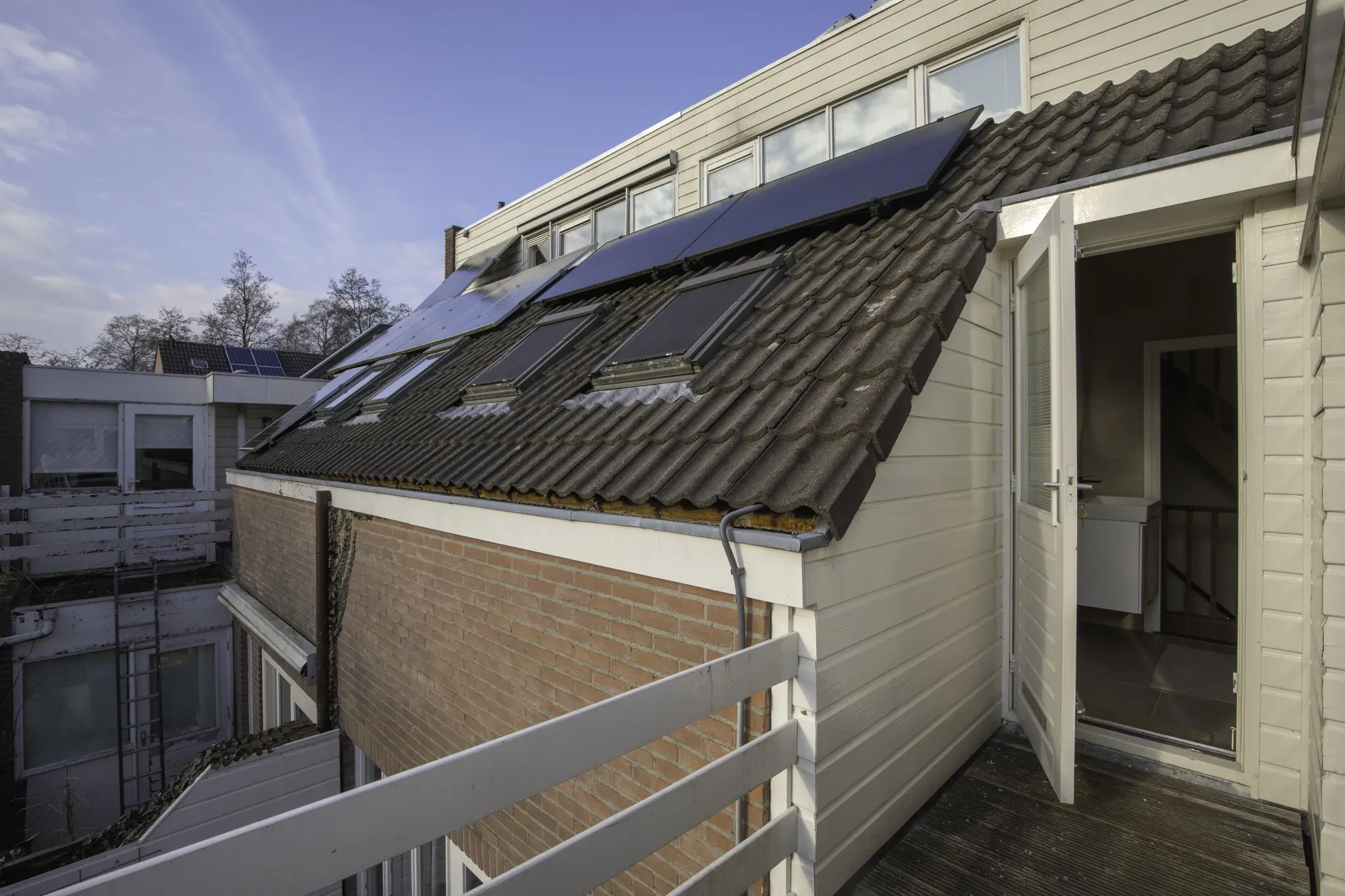 Via de overloop bereik je drie slaapkamers, allen van goed formaat. De badkamer is in 2025 volledig vernieuwd en modern uitgevoerd met een douche, wastafelmeubel en toilet. Vanuit de overloop is tevens het balkon bereikbaar. Via het balkon is het kantoor/werkkamer toegankelijk, ideaal voor thuiswerken of als speel- of hobbyruimte.