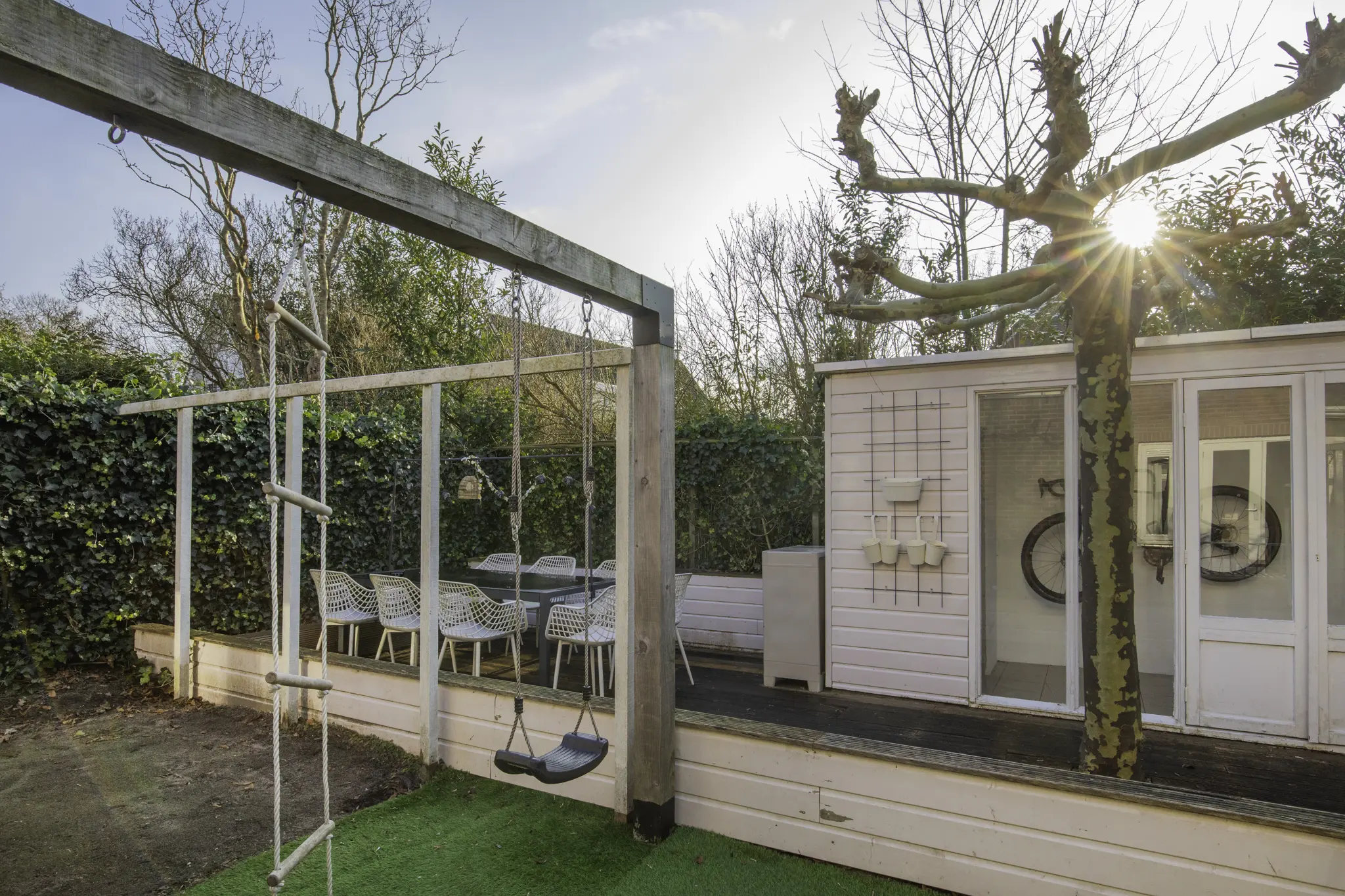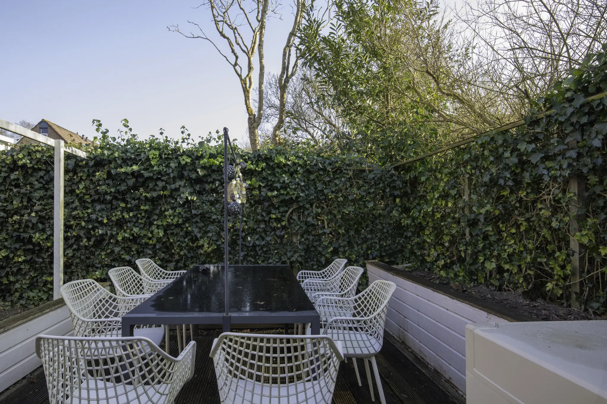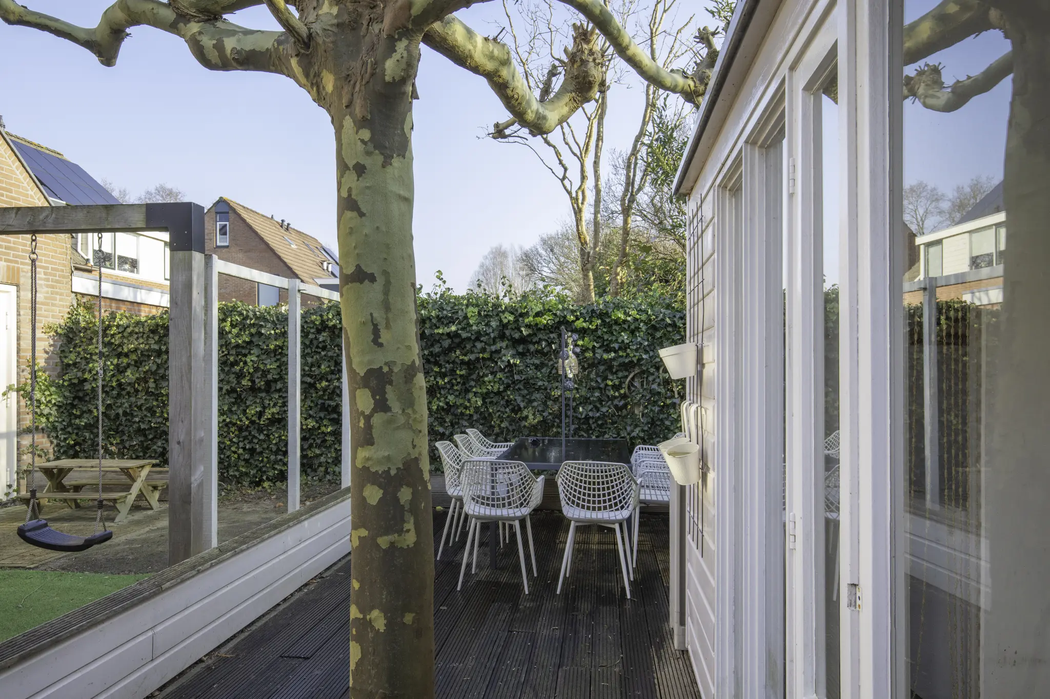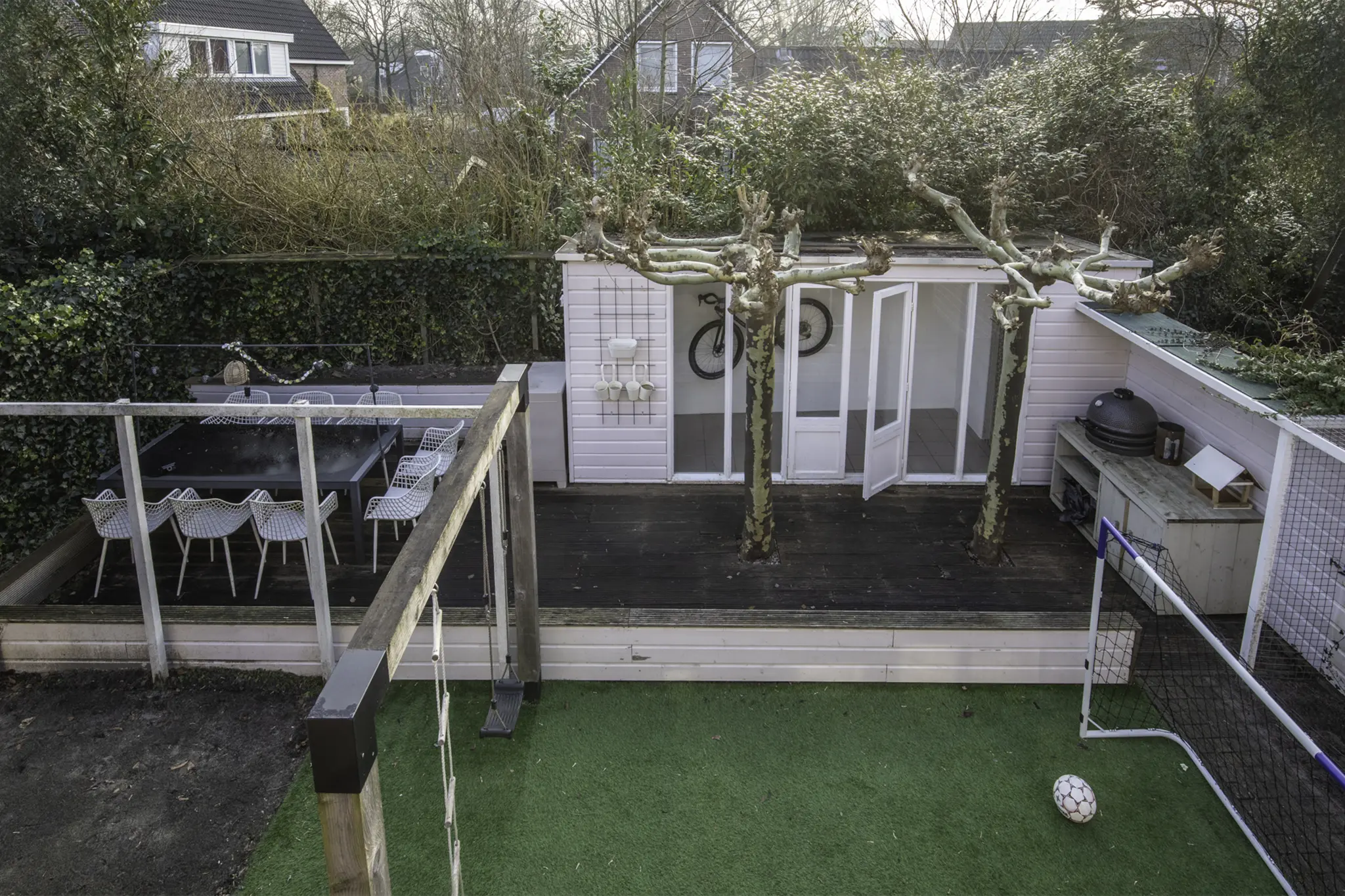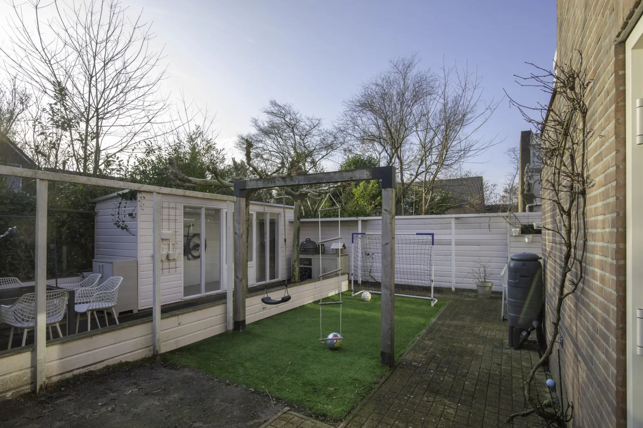 De verzorgde achtertuin op het zuiden is een heerlijke plek om te ontspannen. De tuin is fraai aangelegd en beschikt over meerdere terrassen, een overkapping en een tuinkamer. Aan de voorzijde van de woning is een ruime oprit met plaats voor meerdere auto’s.
