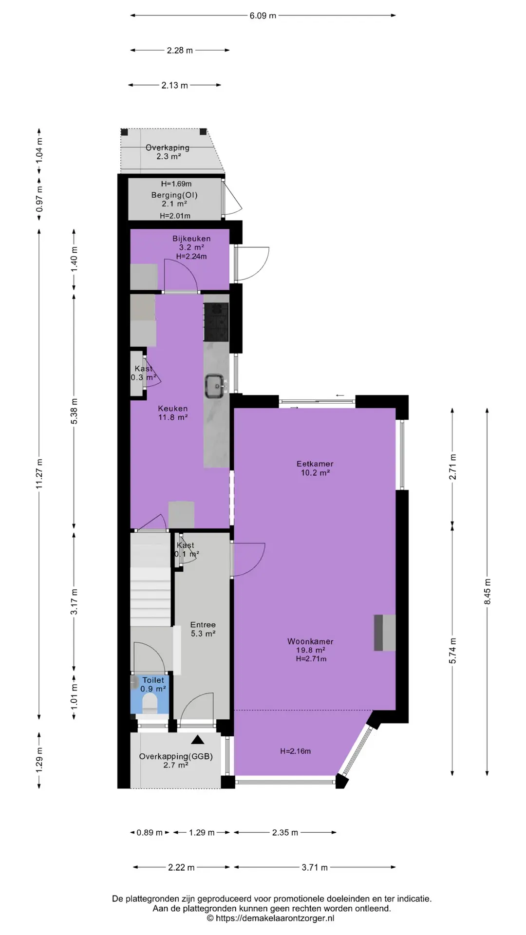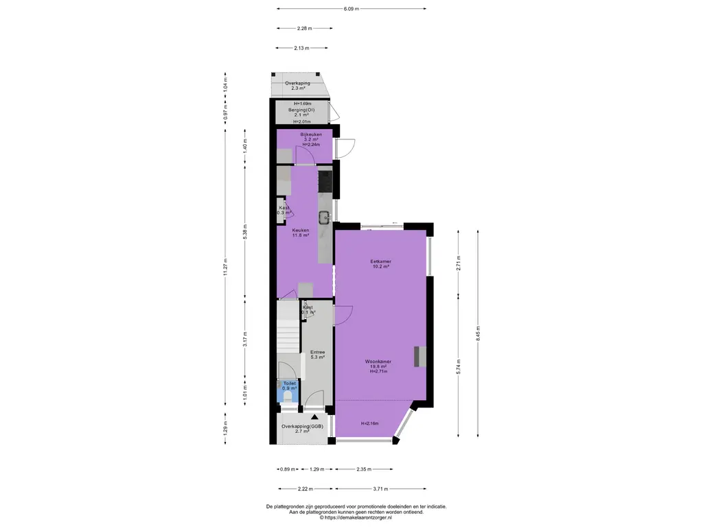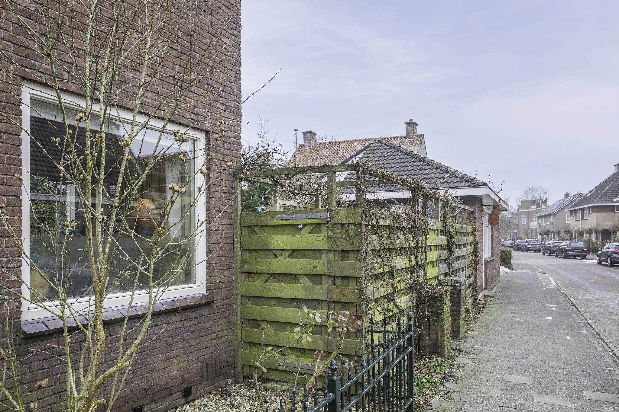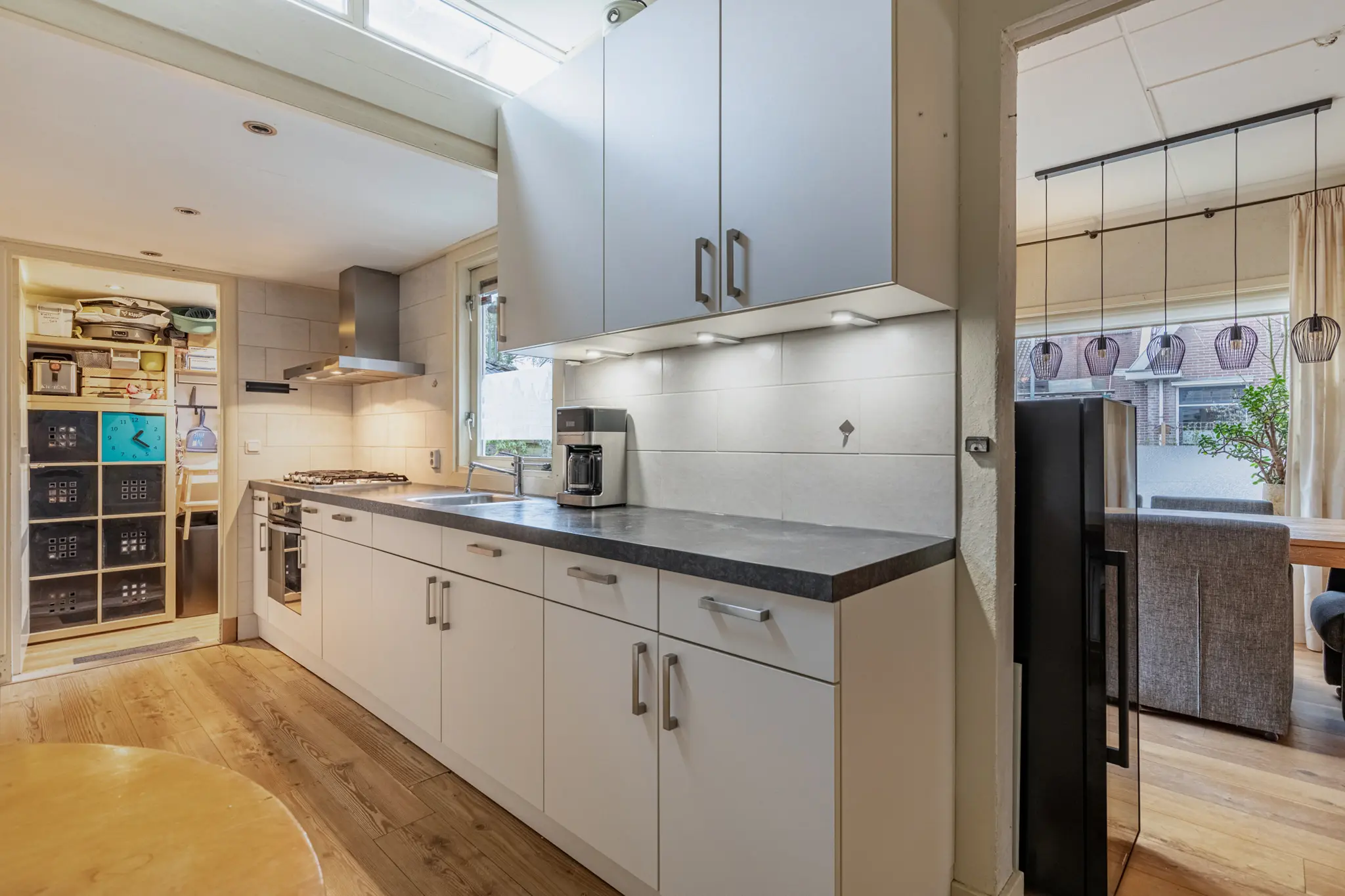 Via de entree komt u in de hal met trapopgang, toilet en meterkast. Vanuit de hal bereikt u de woonkamer. De lichte woonkamer bevindt zich aan de voorzijde en beschikt over grote raampartijen en een erker, wat zorgt voor een prettige lichtinval en een ruimtelijk gevoel. Aan de achterzijde ligt de eetkamer met schuifpui naar de tuin en toegang tot de (deels) gesloten keuken, centraal gesitueerd en met toegang tot de tuin. Aansluitend aan de keuken bevindt zich de toegang tot de kelder en een praktische bijkeuken/achter-entree.