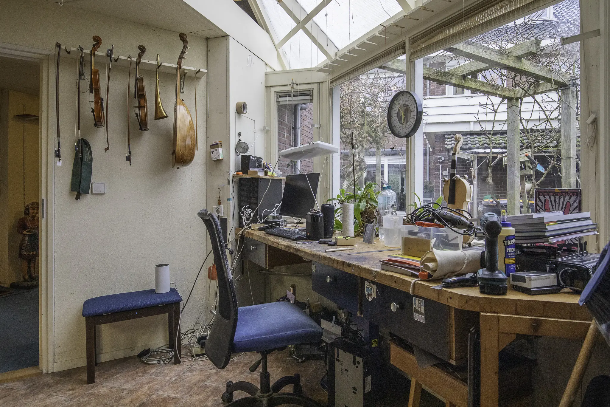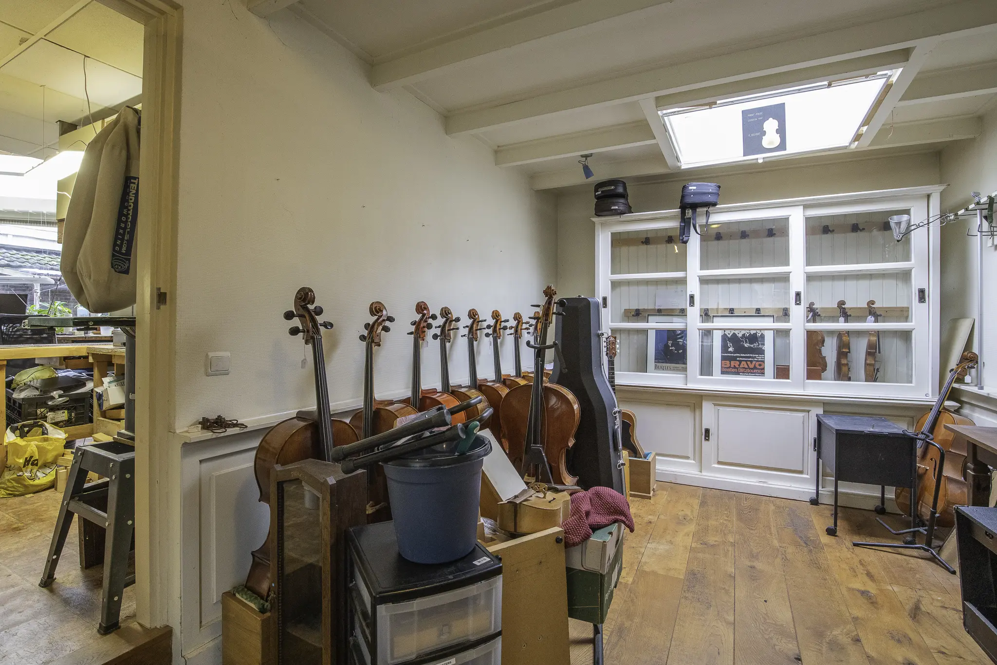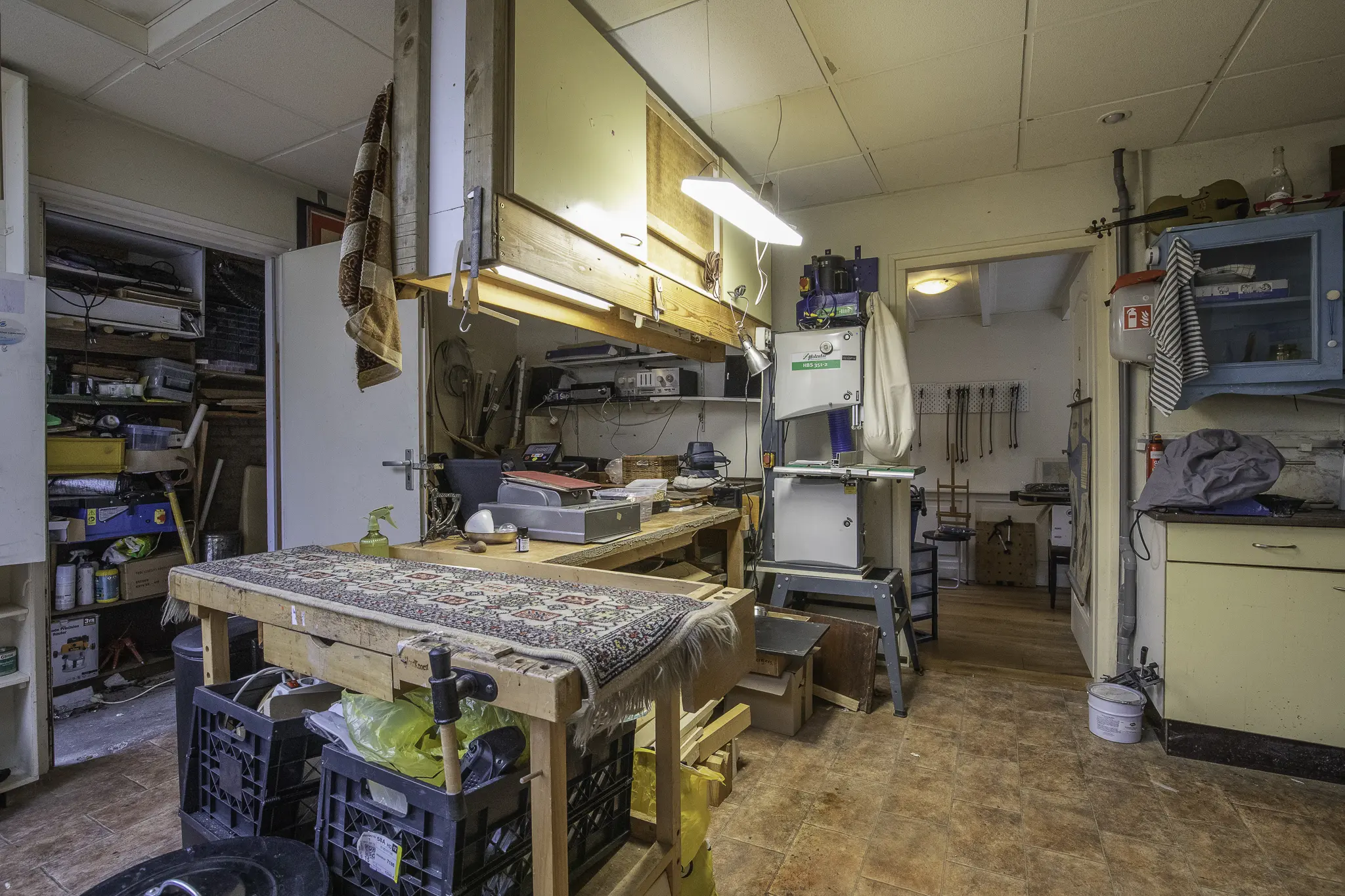 Het voormalige dubbele garagegebouw is verbouwd tot atelier en vormt een volwaardige extra ruimte met meerdere kamers en een centrale werkruimte. Ook is er een eigen cv-ketel en een bergzolder (te bereiken middels vlizotrap). Perfect voor: