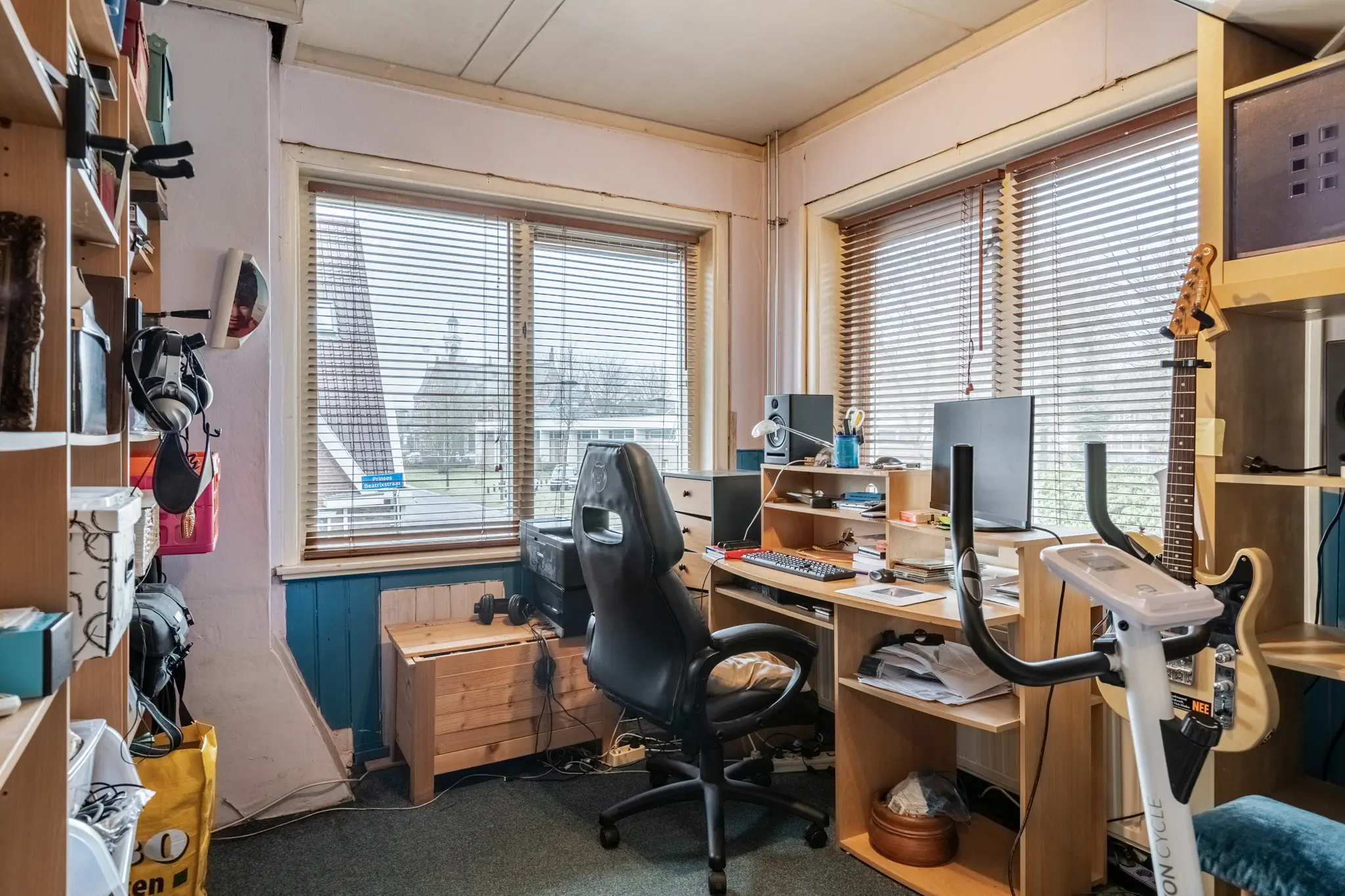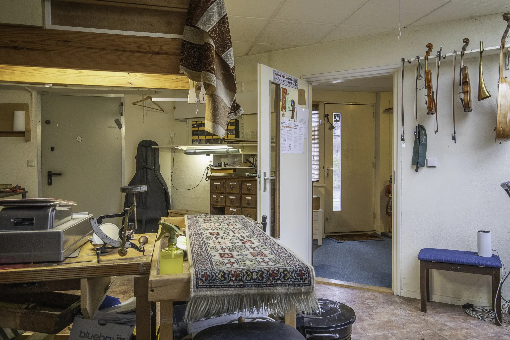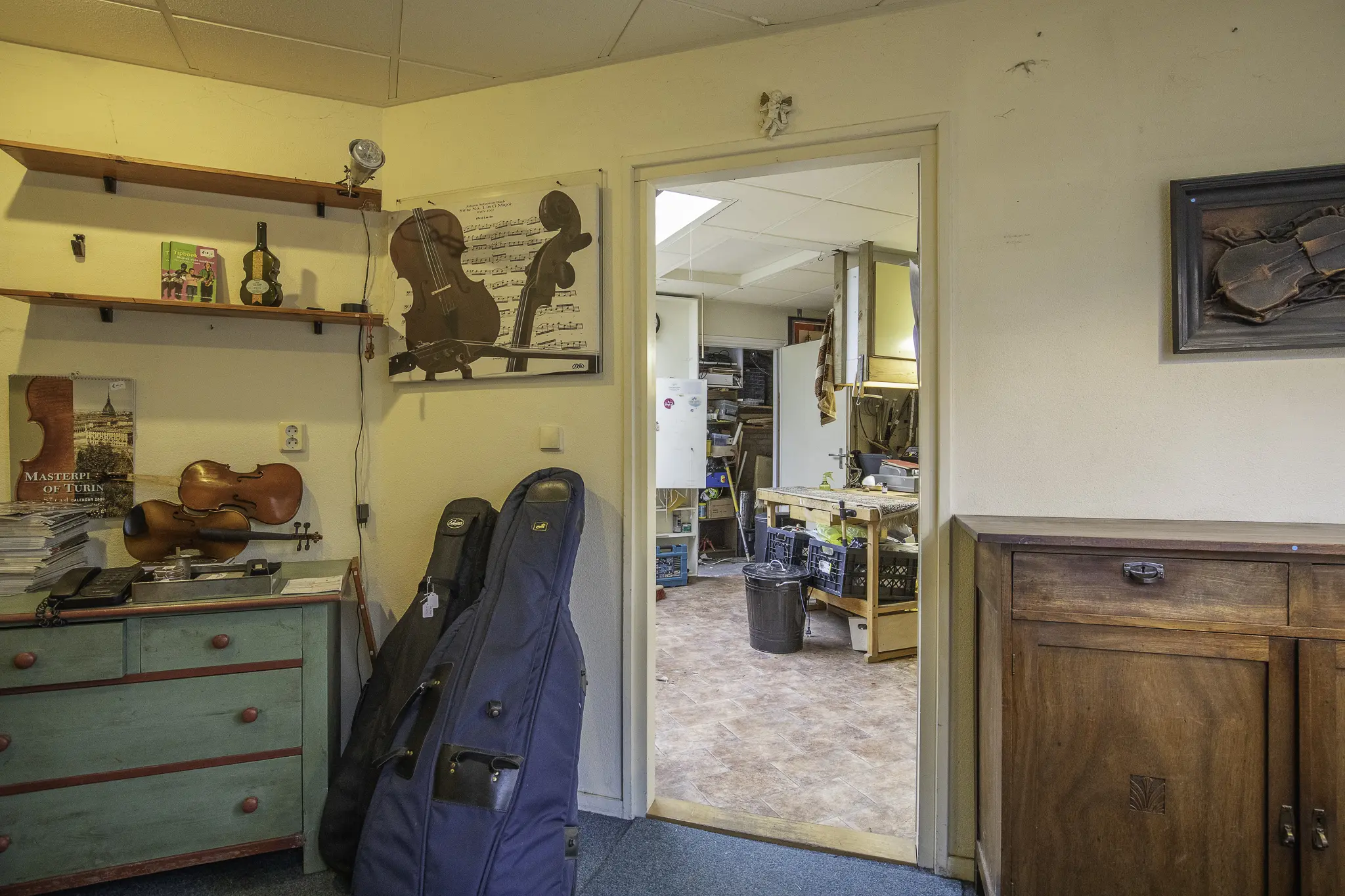 Het voormalige dubbele garagegebouw is verbouwd tot atelier en vormt een volwaardige extra ruimte met meerdere kamers en een centrale werkruimte. Ook is er een eigen cv-ketel en een bergzolder (te bereiken middels vlizotrap). Perfect voor: