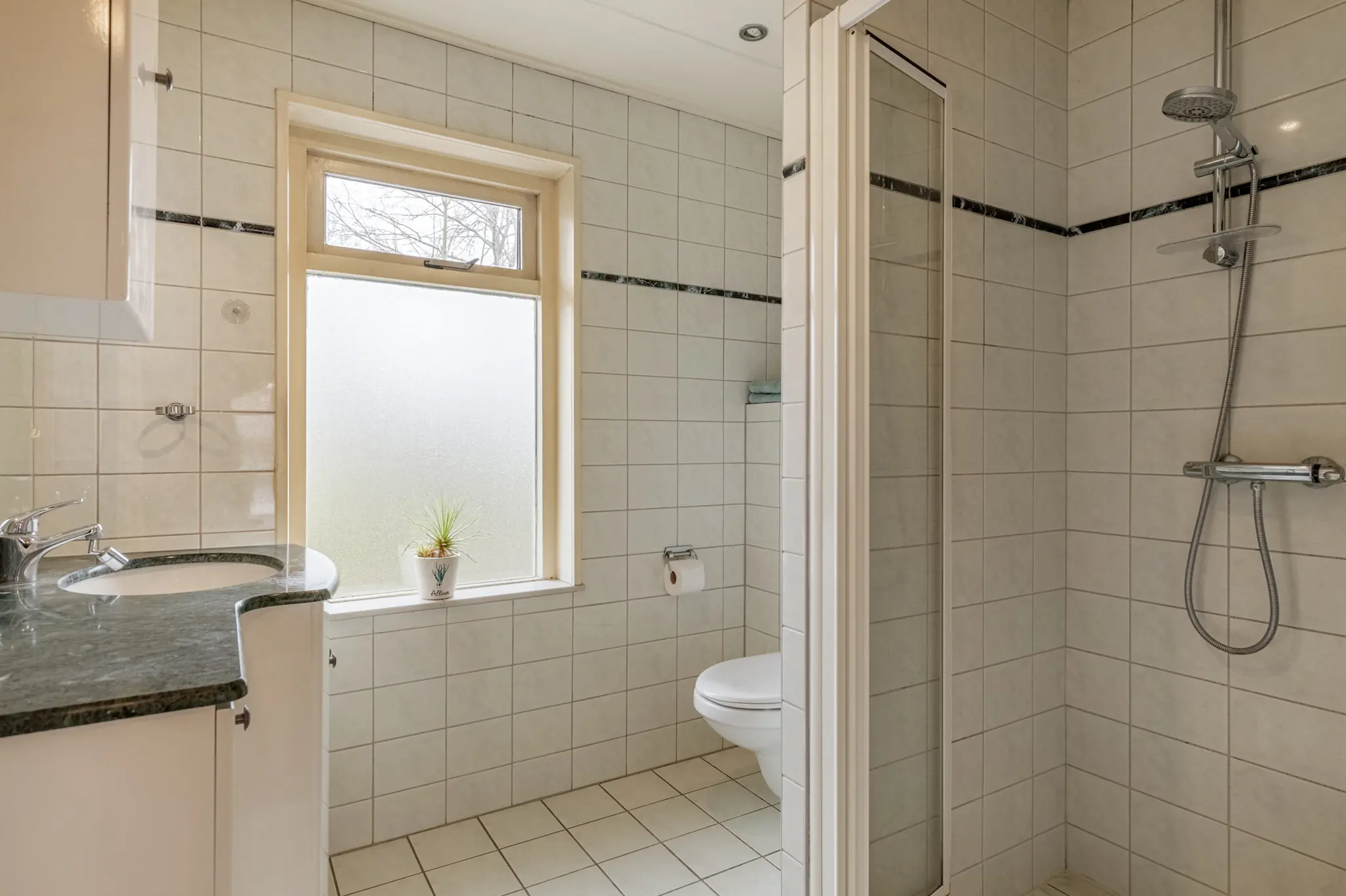 - Badkamer voorzien van douche, wastafel, toilet en designradiator.